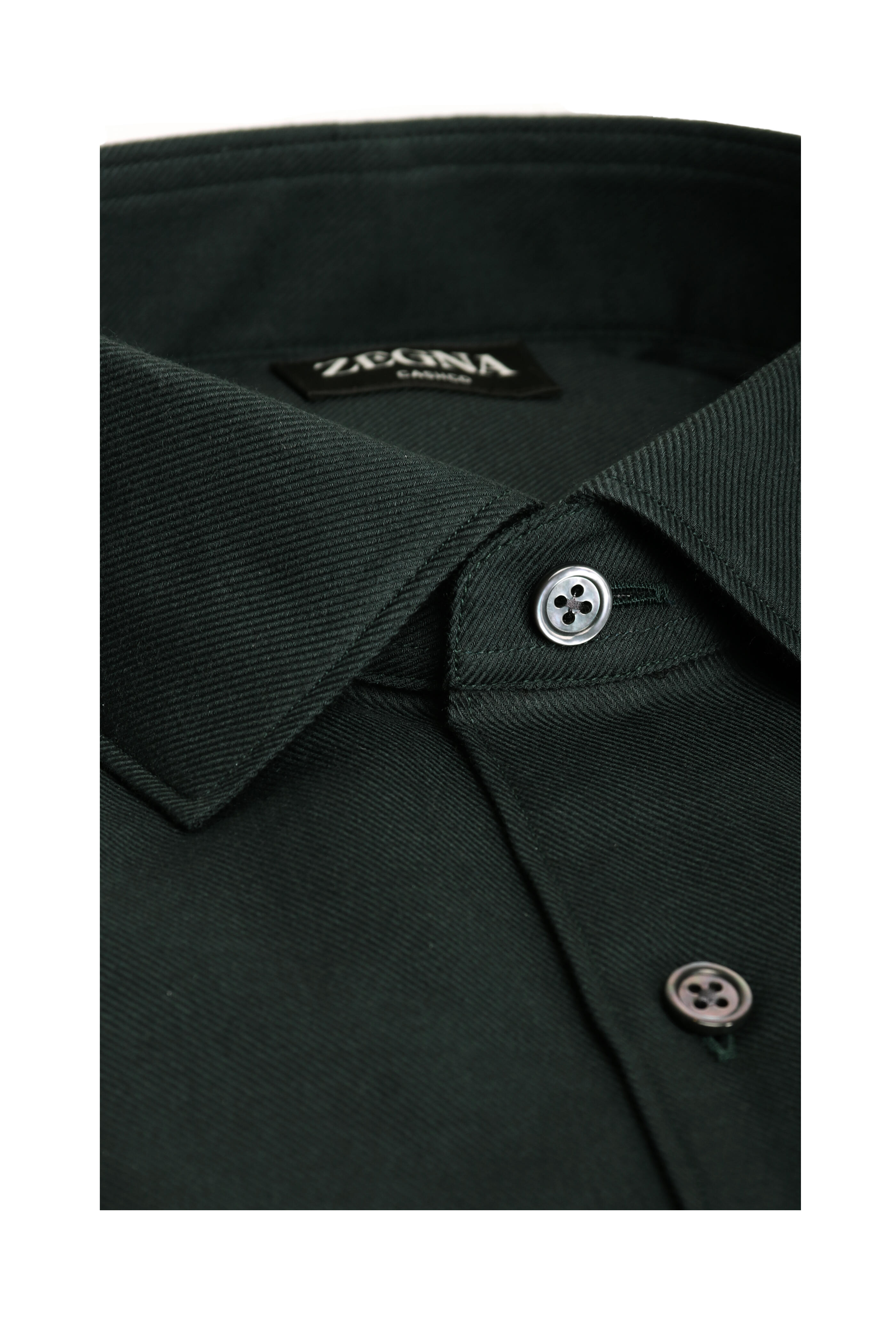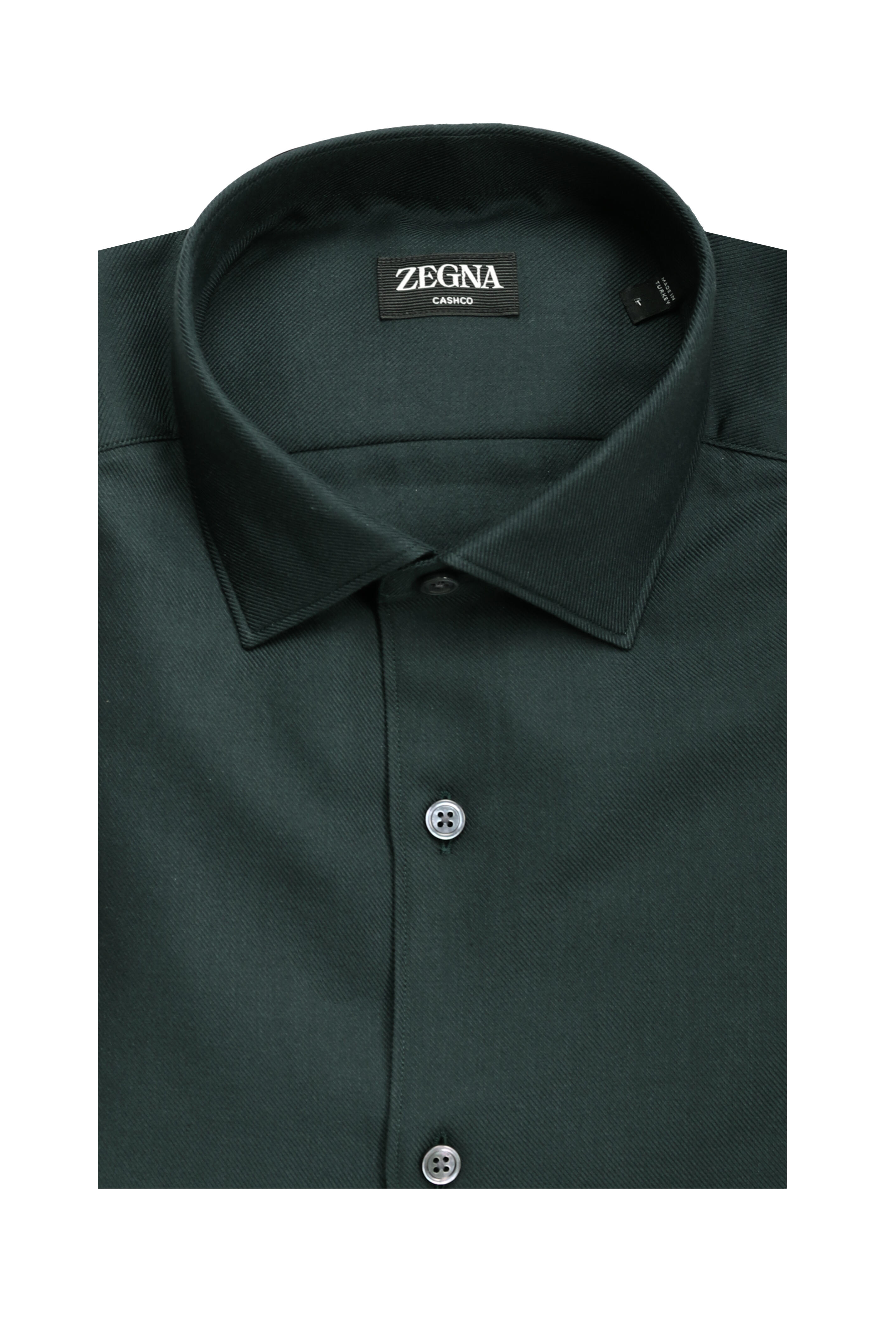 Spread collar. French front button placket. Single button barrel cuffs. Made in Italy. 85% cotton, 15% cashmere. Dry clean.