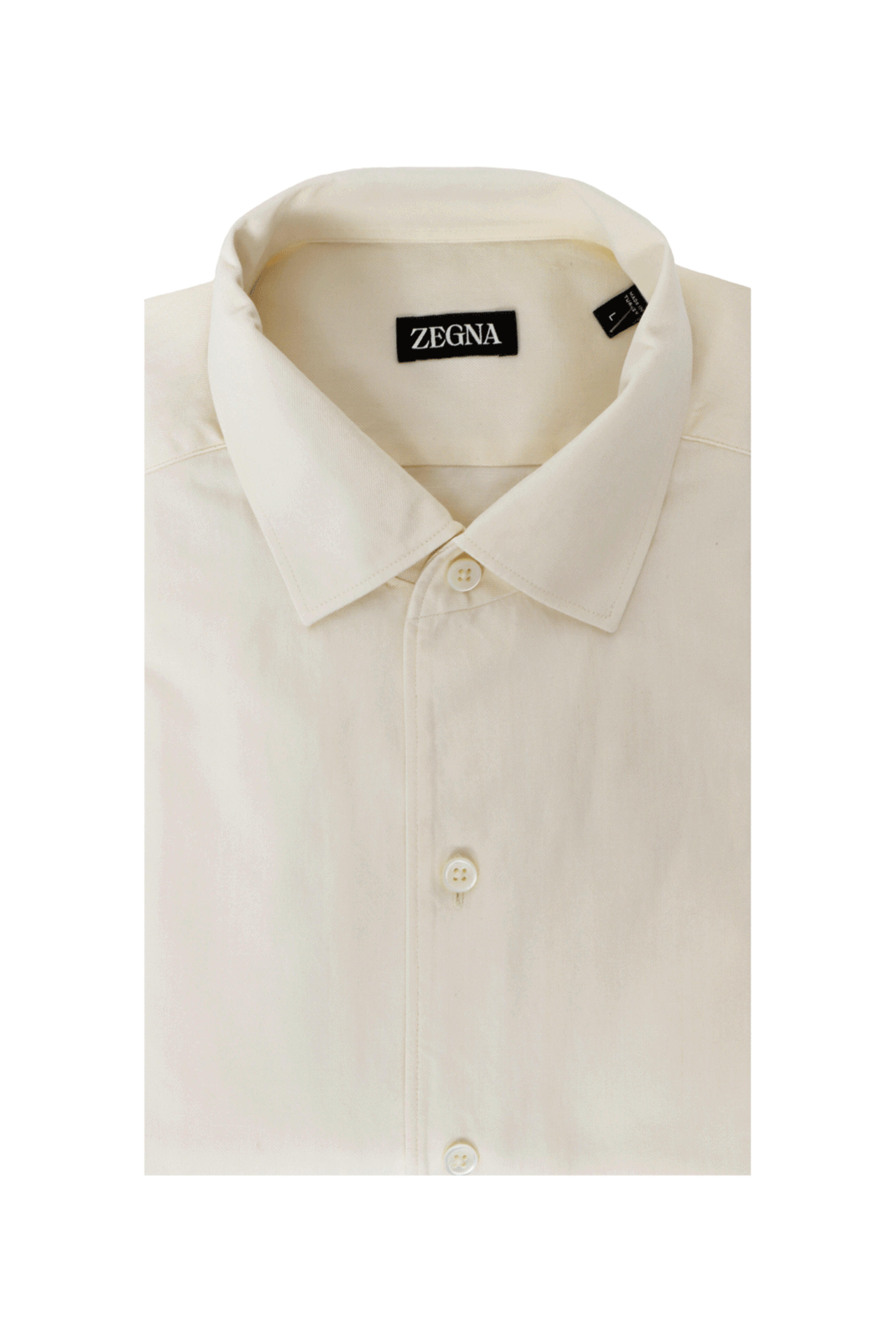 Zegna Beige Sportshirt. Point collar. Button down front closure. Long sleeves. Barrel mitered cuffs. Curved hem. Made in Turkey . 76% cotton, 24% linen.