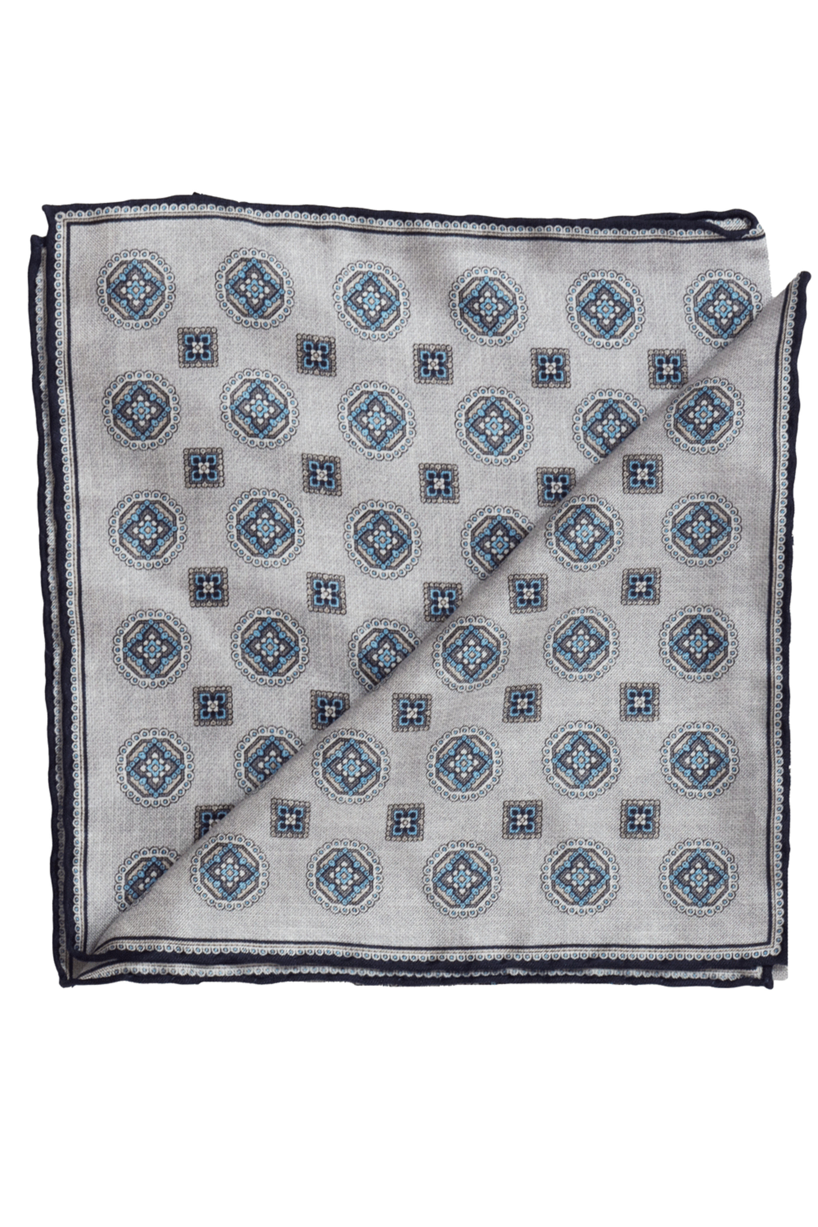 Light Grey and Navy Motif Pocket Square