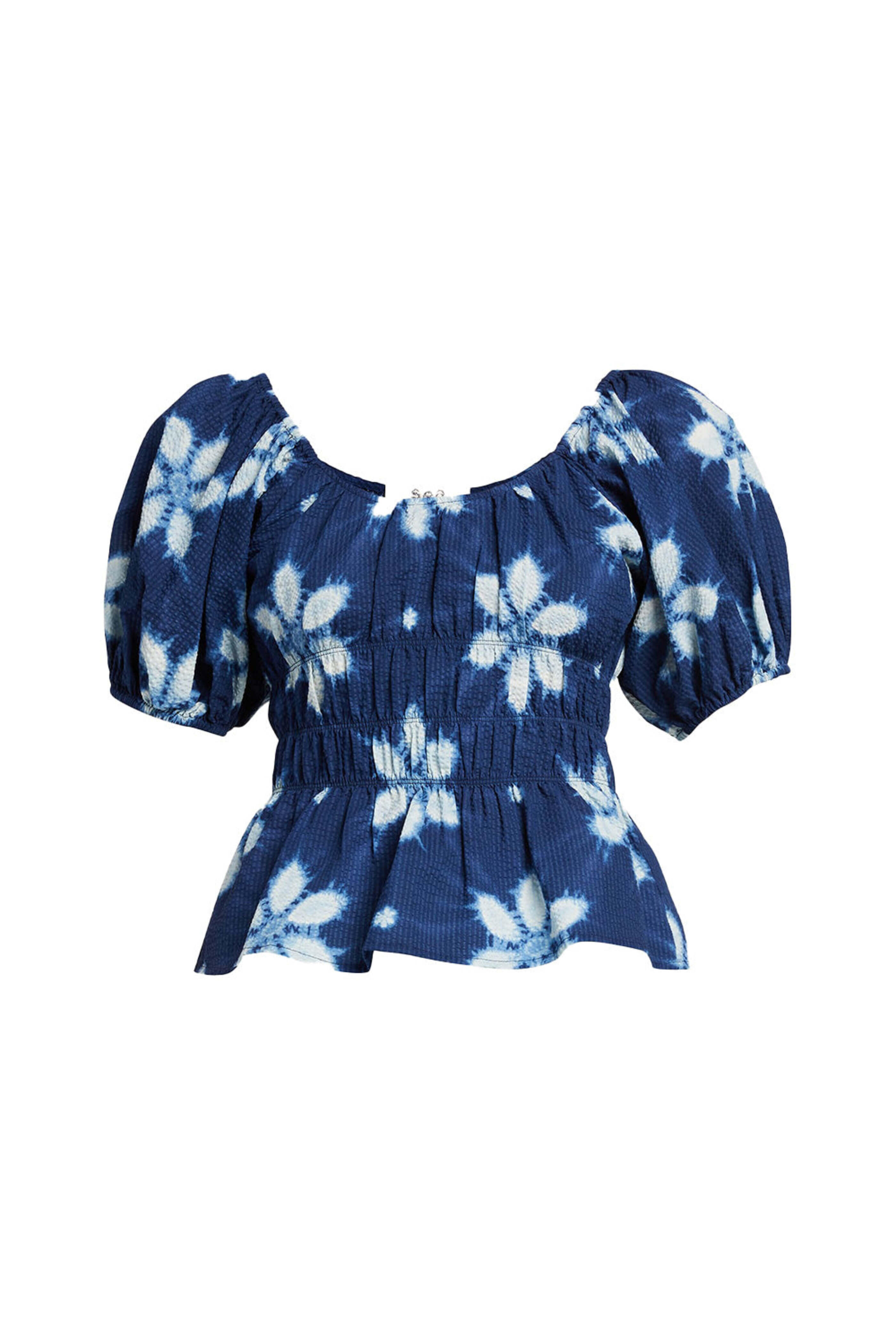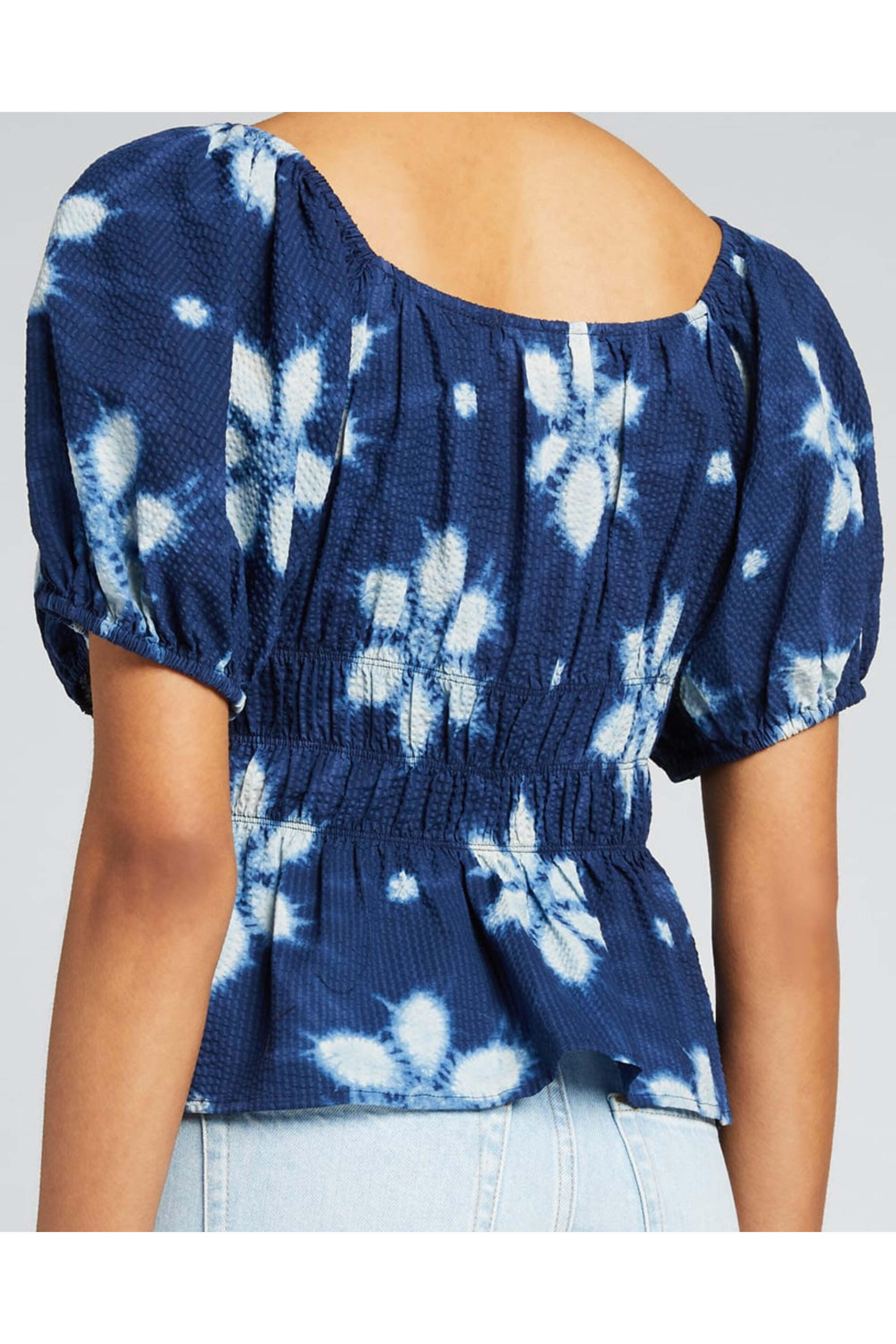 - Sea Navy Isla Puff Print Sleeve Top