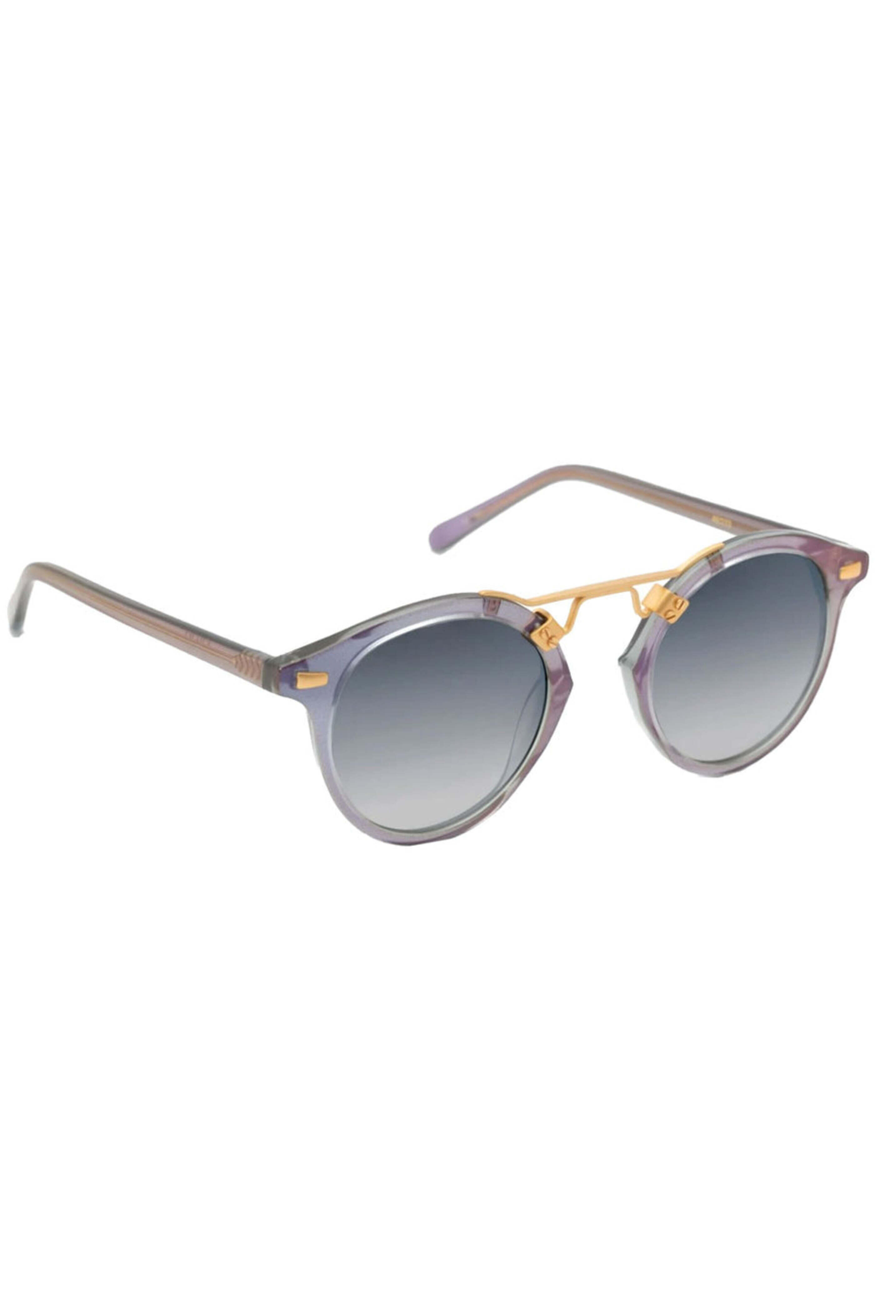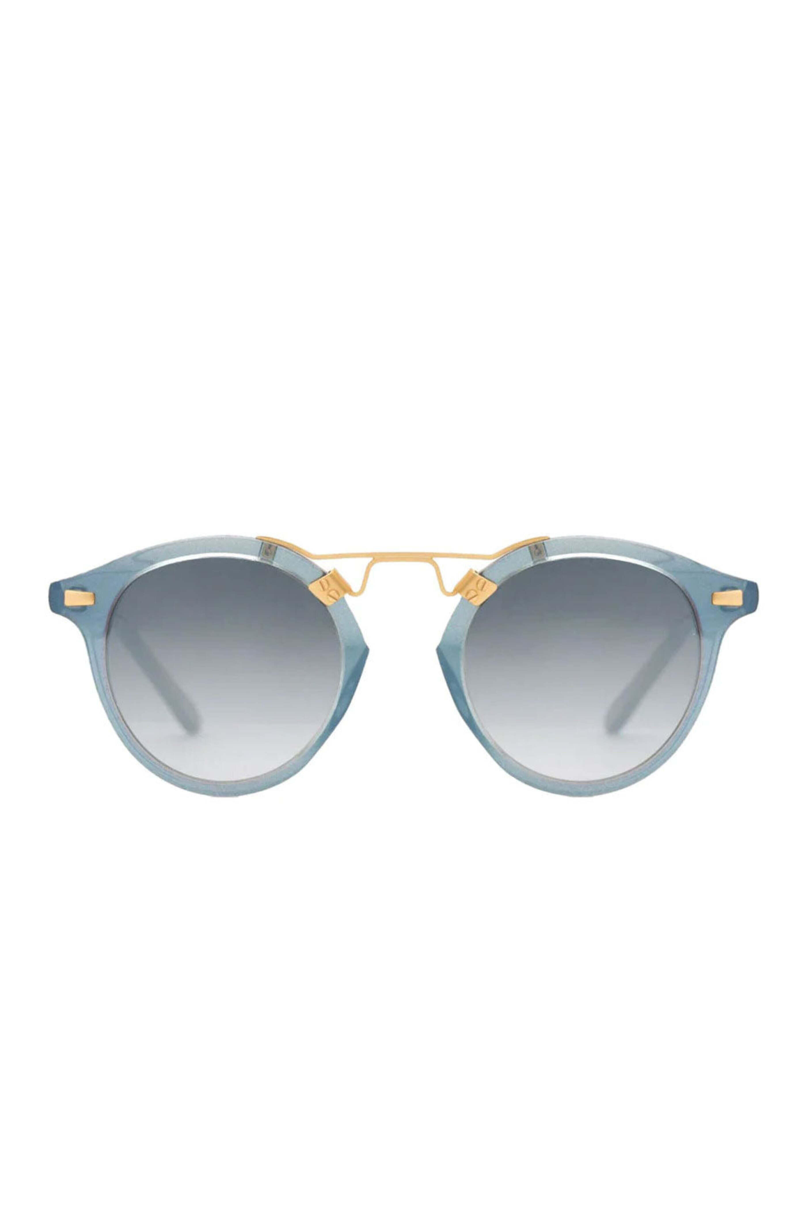 KREWE St. Louis Sunglasses in Opal. Silver gradient mirrored lens. 24K gold plated hardware. Handcrafted acetate frames. Size: 46-23-145. 100% UVA/UVB protection.