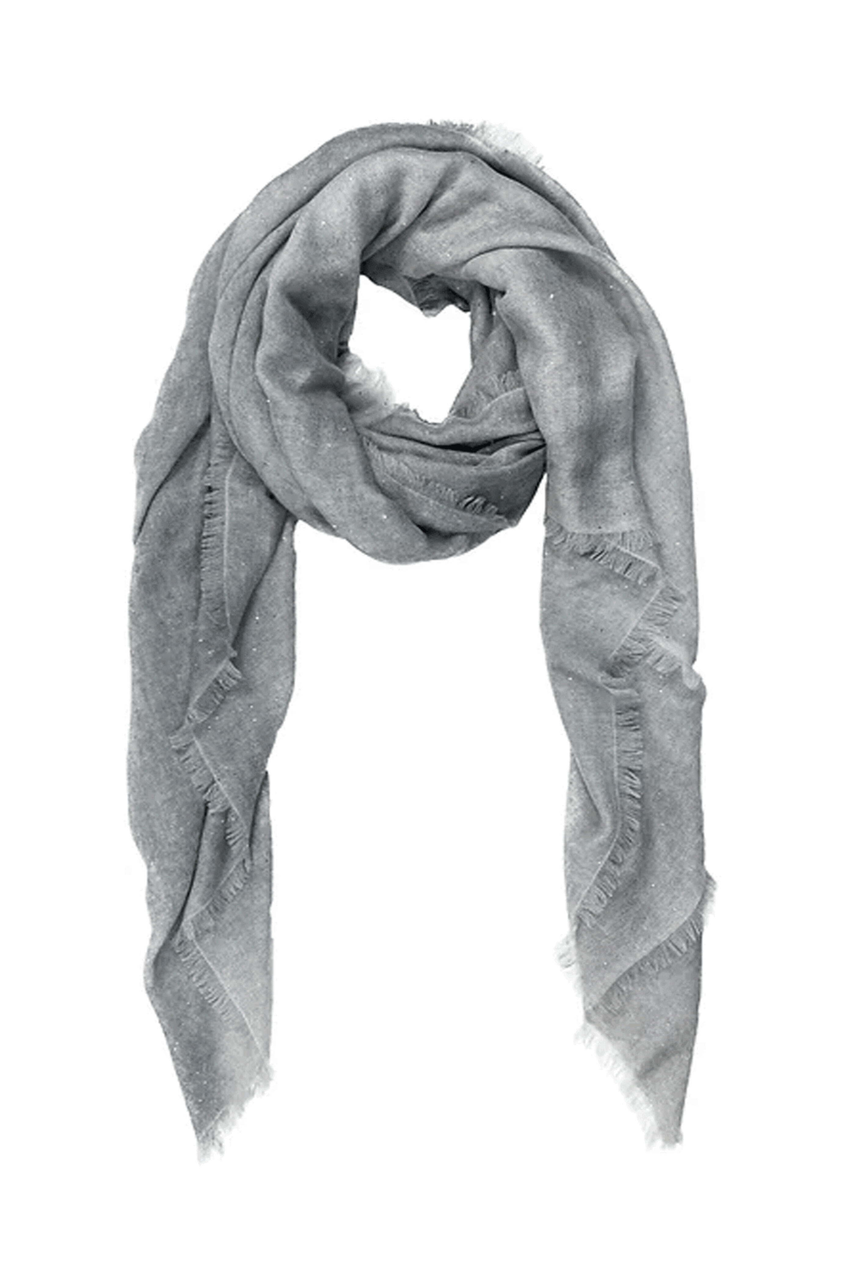 Ama Pure Stola Stole in Starlight Perla. Frayed Edges. Size 39.4 x 78.7. Made in Italy. 100% pure cashmere.