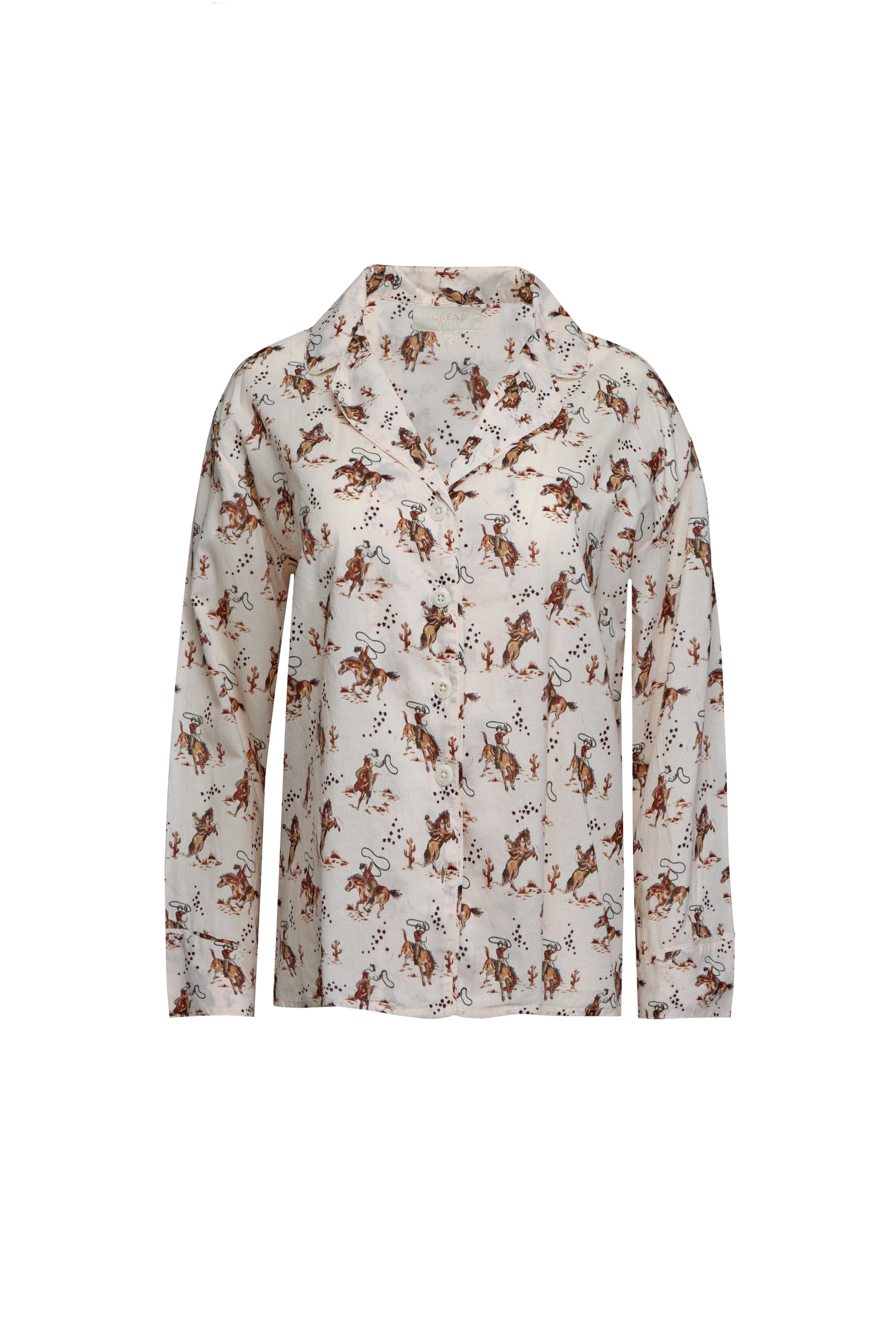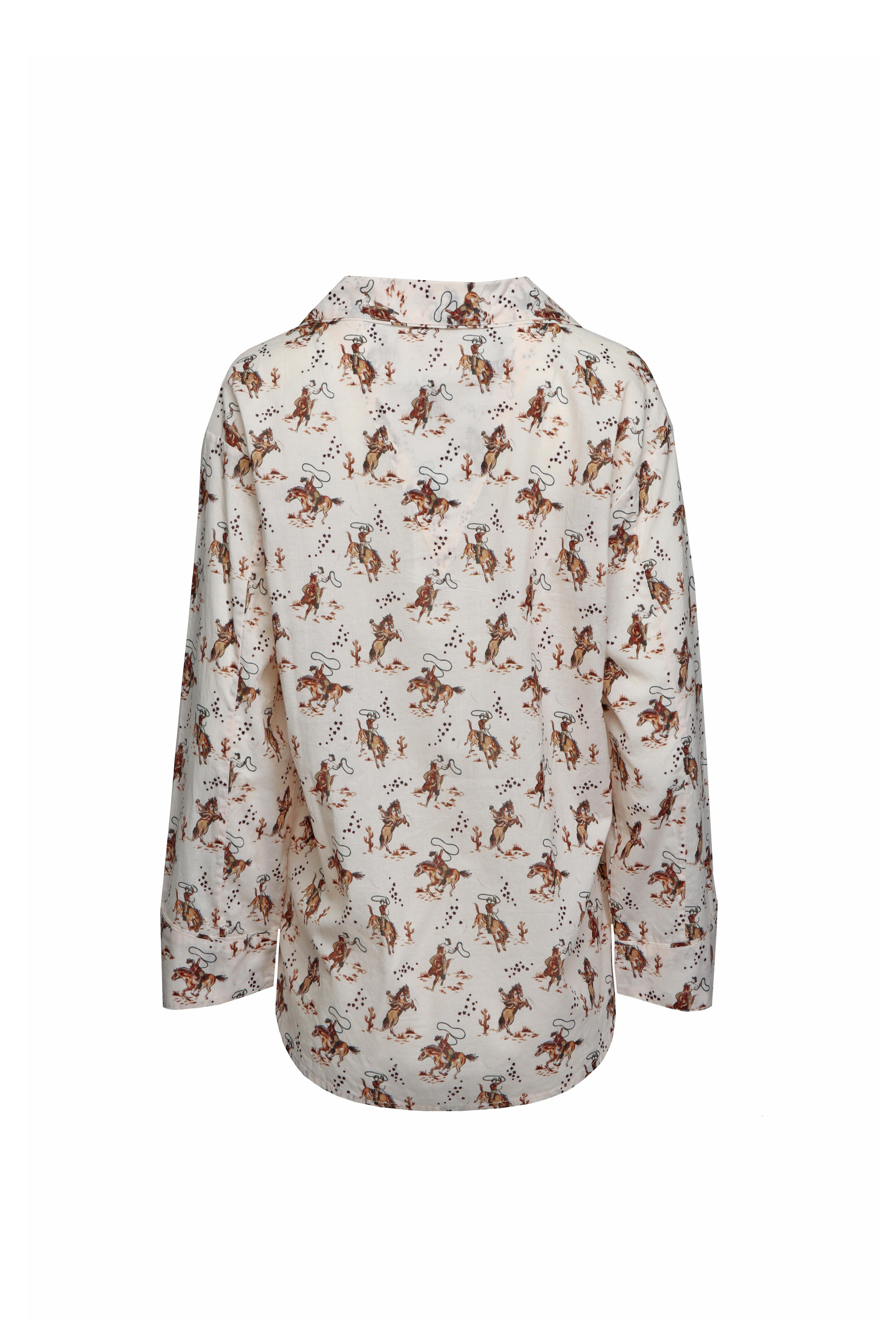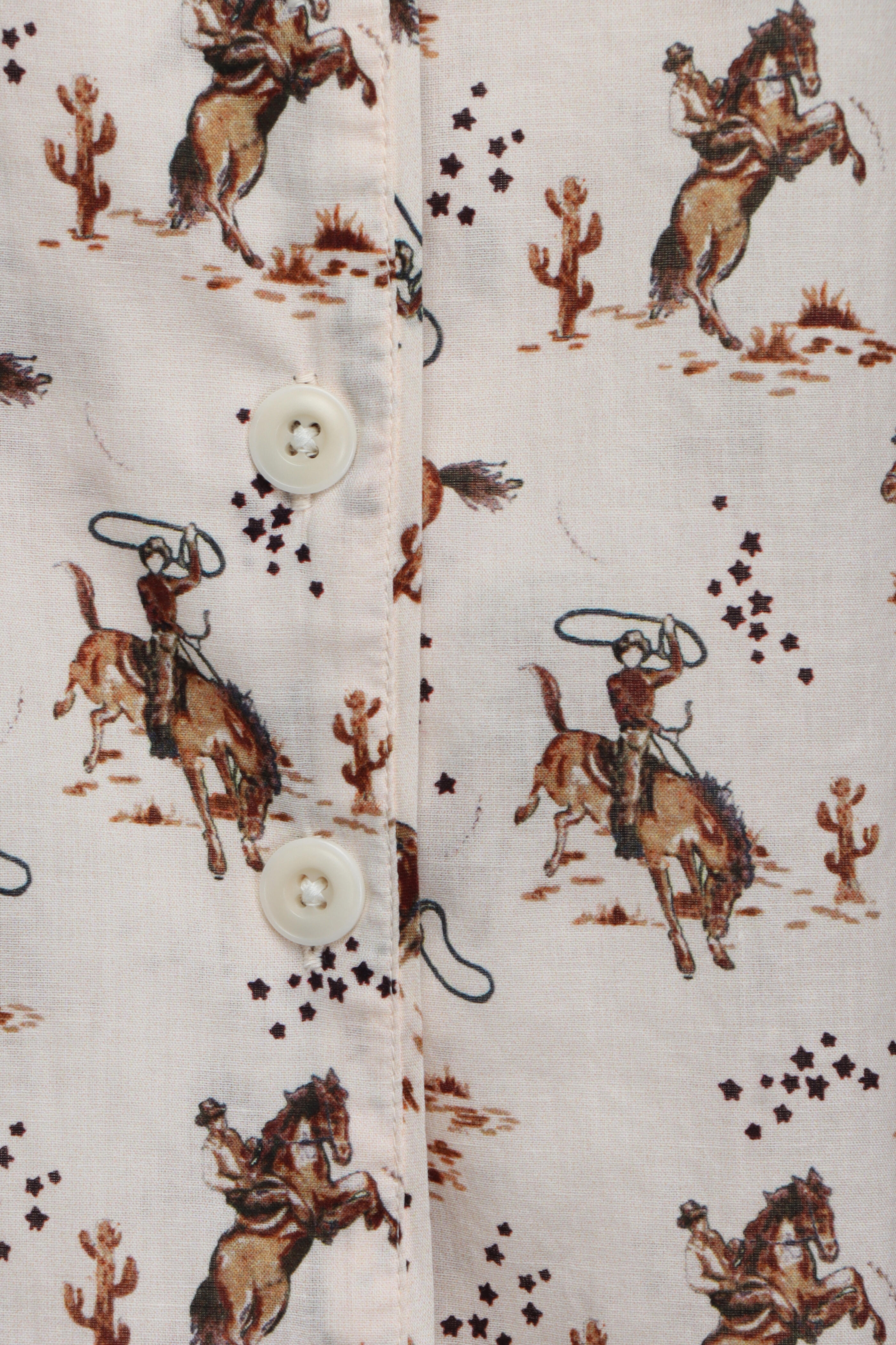 Notch lapel. Drop shoulders. Bracelet length sleeves. Button front closure. Boxy fit. Straight hem. Imported. Bust 47” (Size 1). Sleeve 20.5” (Size 1). Length 25.5” (Size 1). 100% cotton. Machine washable.