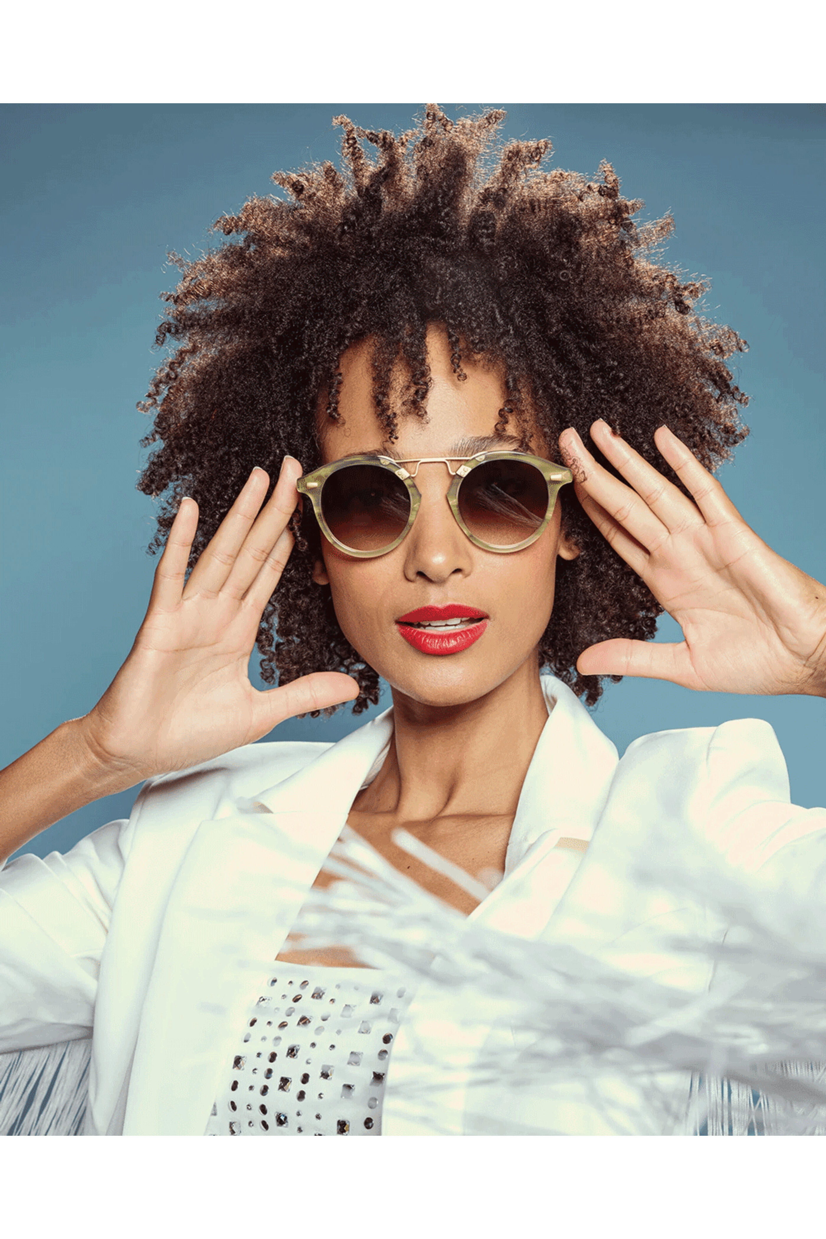 Krewe STL II Sunglasses in Selene. Custom, amber gradient lenses. Handcrafted, acetate frame features a glossy finish. 18k gold-plated stainless steel hardware. Riveted 5 barrel hinges. Adjustable temple wire allows for a customized fit. Anti-reflective and scratch-resistant coatings. Fit: 132mm. Eye: 48mm. Temple: 145mm. Bridge: 25mm. 100% UVA and UVB protection.