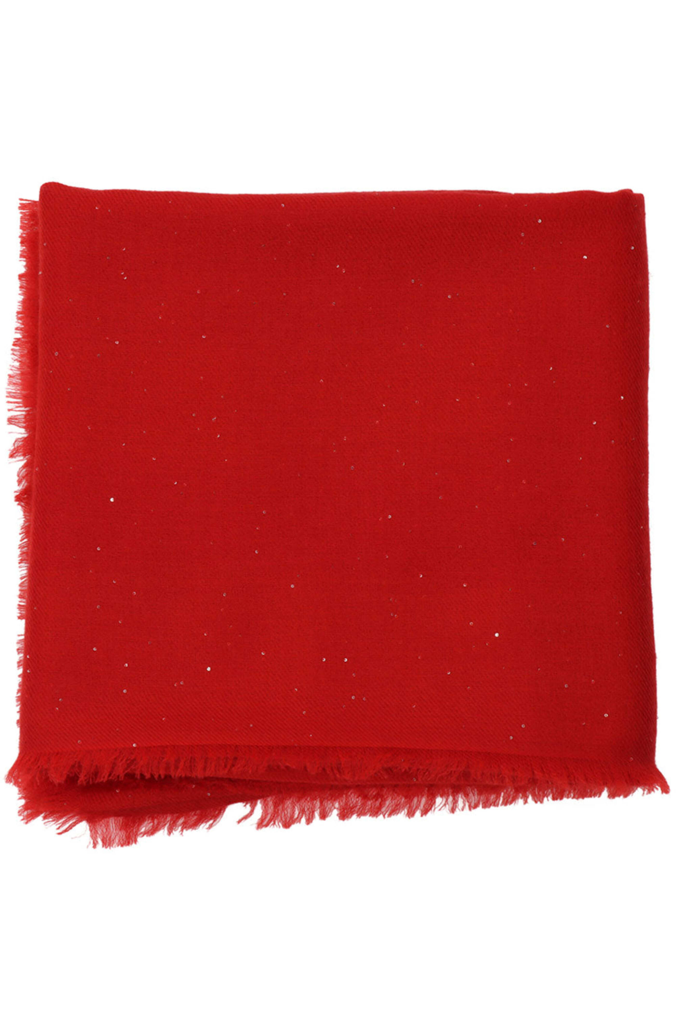 Ama Pure Red Starlight Cashmere Stole . Artisanal dying technique . Each piece is one of a kind . Mini sequin detailing . Made in Italy . 100% Pure Cashmere . Use Wool Program with delicate cycles or Dry Clean .