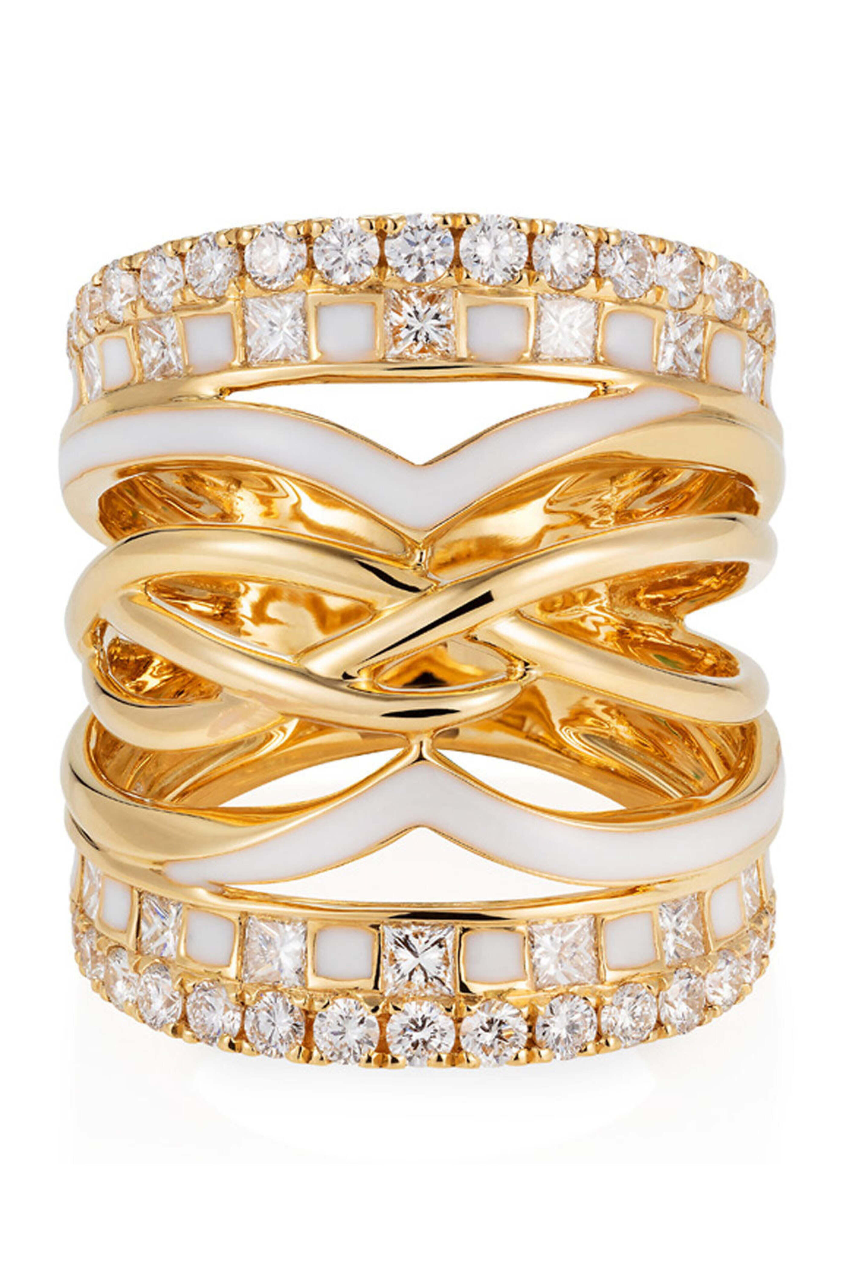 Sarah Ho London Suki Yellow Gold White Enamel Ring. 18k yellow gold. White enamel. 1.73 ct. diamonds. Suki Collection.