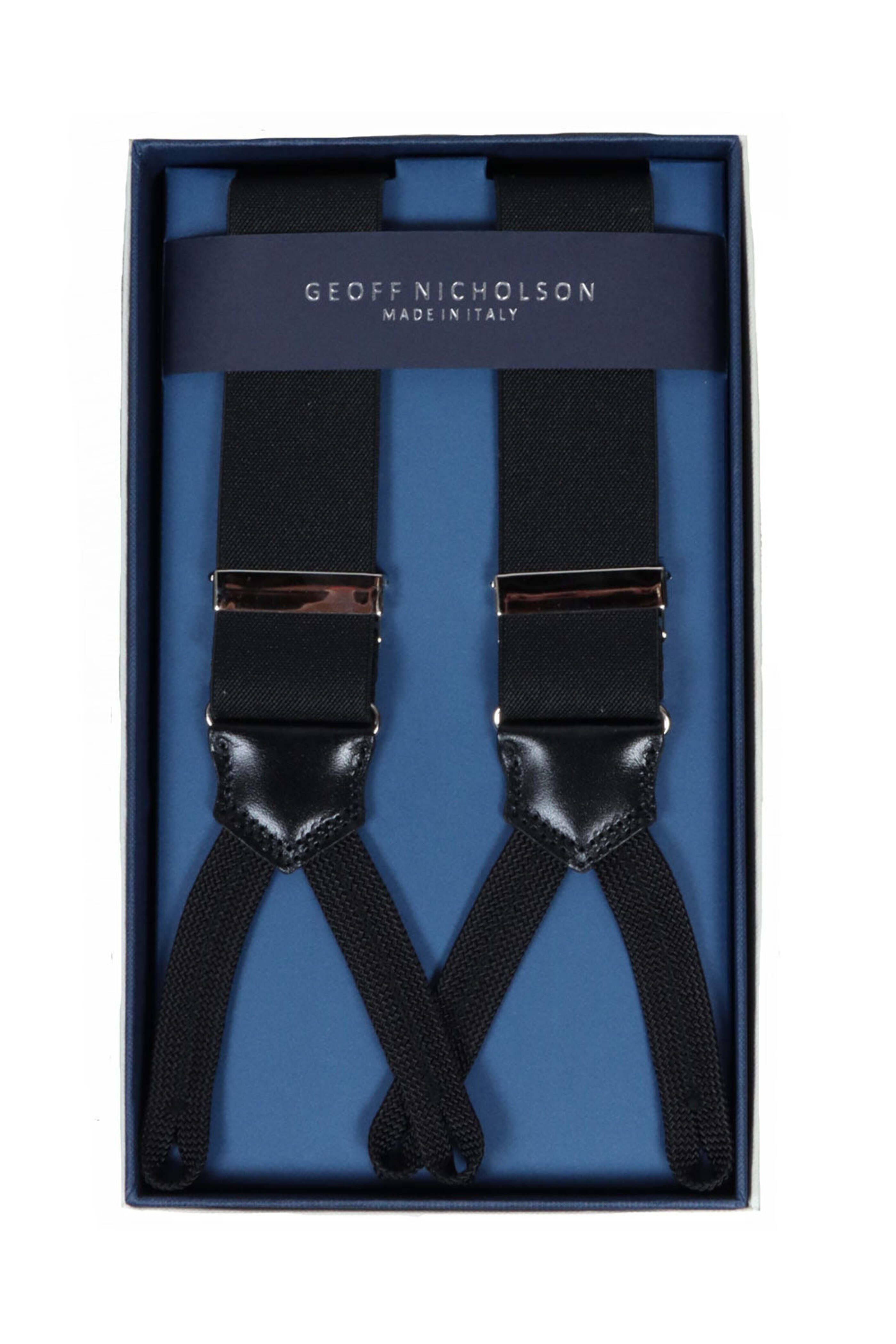 Geoff Nicholson. Y back style. Adjustable braces. One size. Made in Italy.