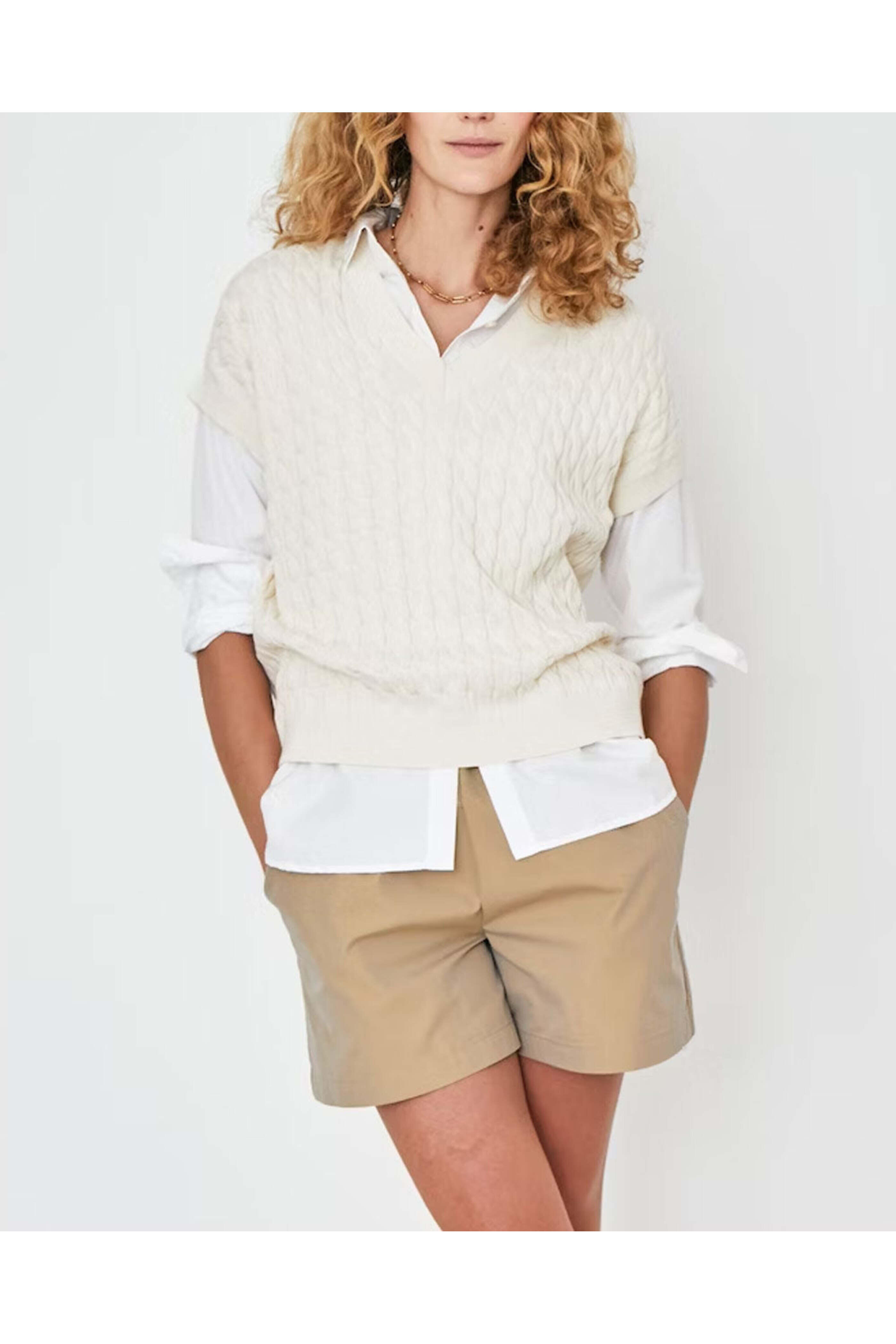 Kule Cream Juno Top . V neck . Short sleeve. Drop Shoulder. Relaxed fit . 100% cotton .