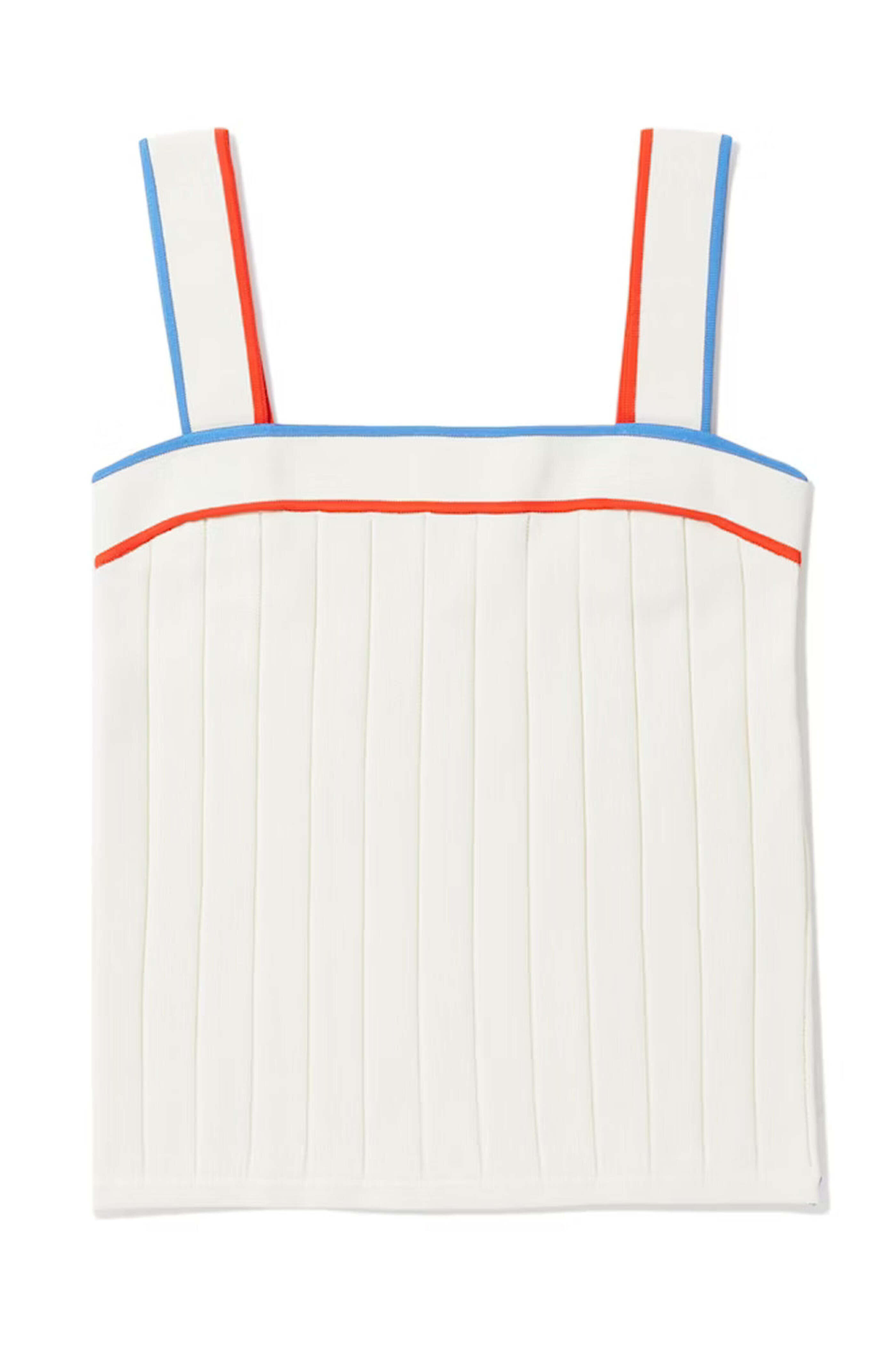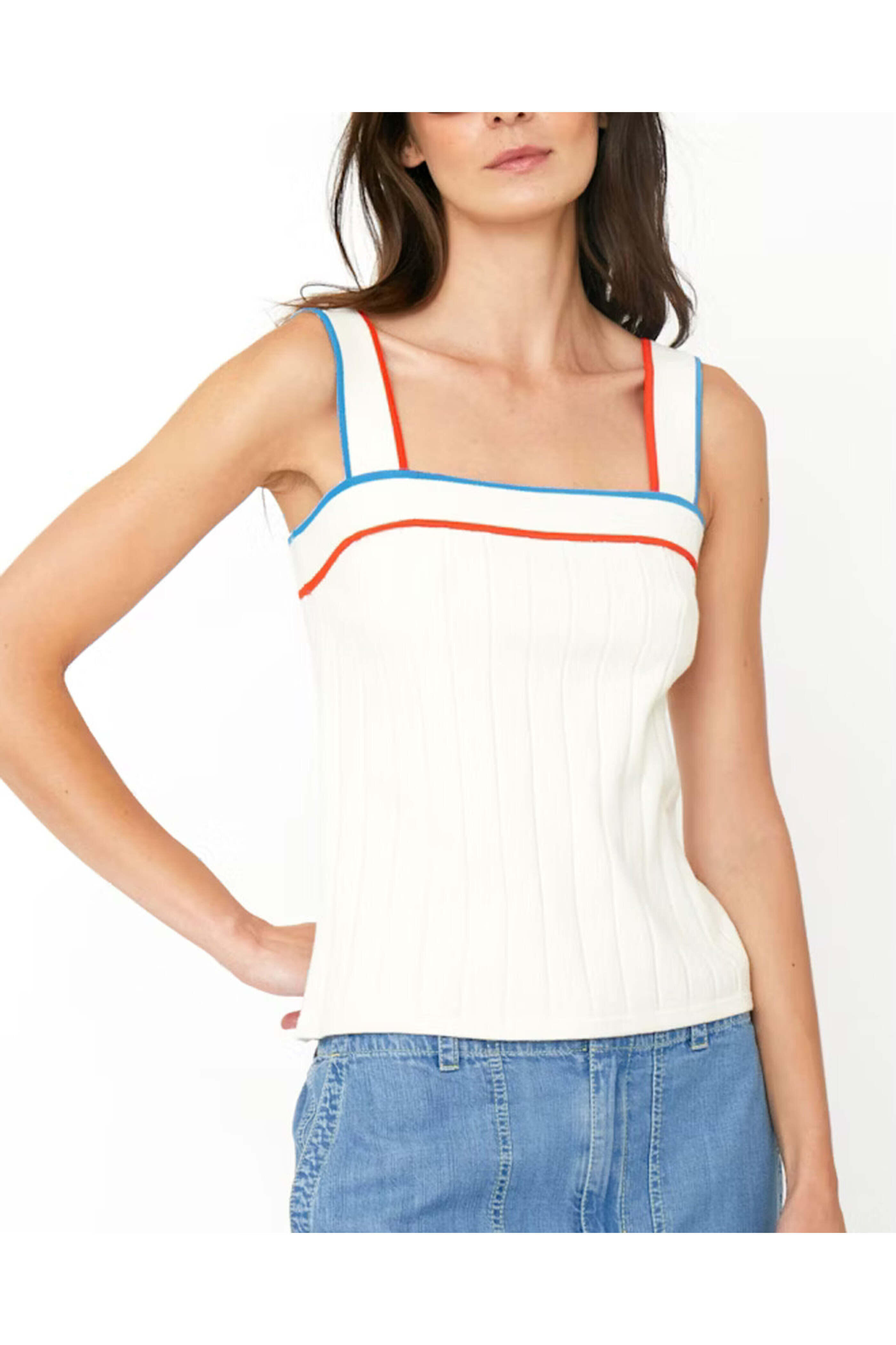 Kule The Loulou Tank in Cream. Square neck. Square back. Sleeveless; adjustable straps. Relaxed fit. Straight hem. Knit fabrication. 79% cotton, 12% spandex, 9% rayon.