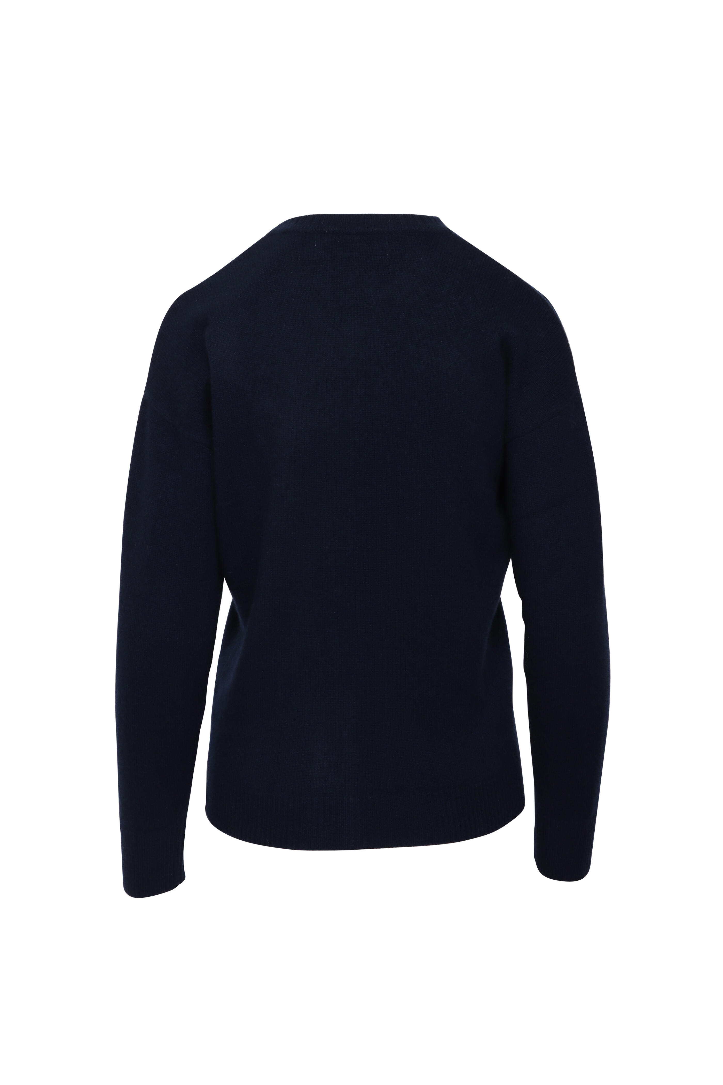 Crewneck. Drop shoulders. Long sleeves. Relaxed fit. Ribbed neck, cuffs, and hem. Imported. 100% cashmere. Dry clean.