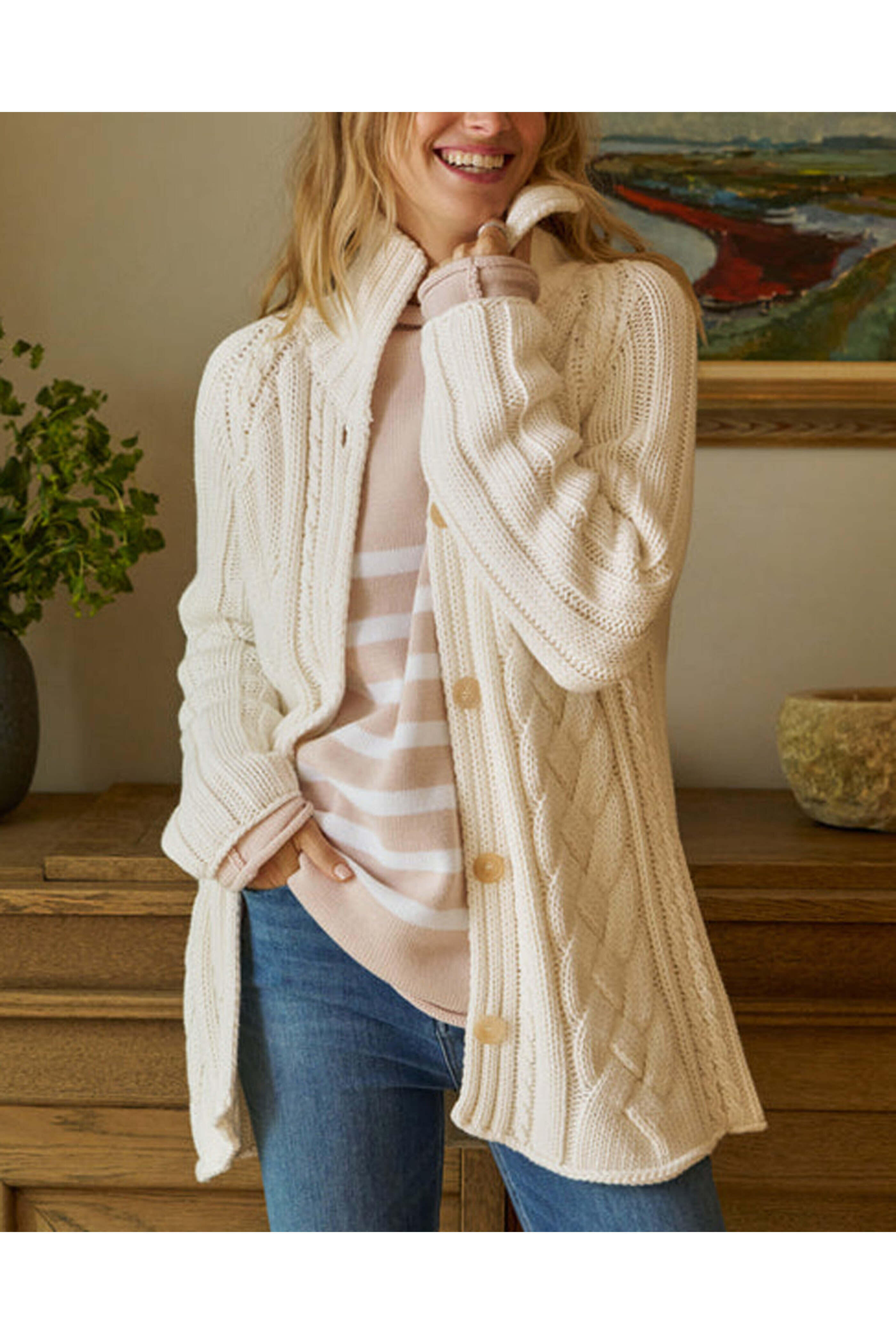 - Frank & Eileen Ivory Cotswolds Cableknit Cardigan