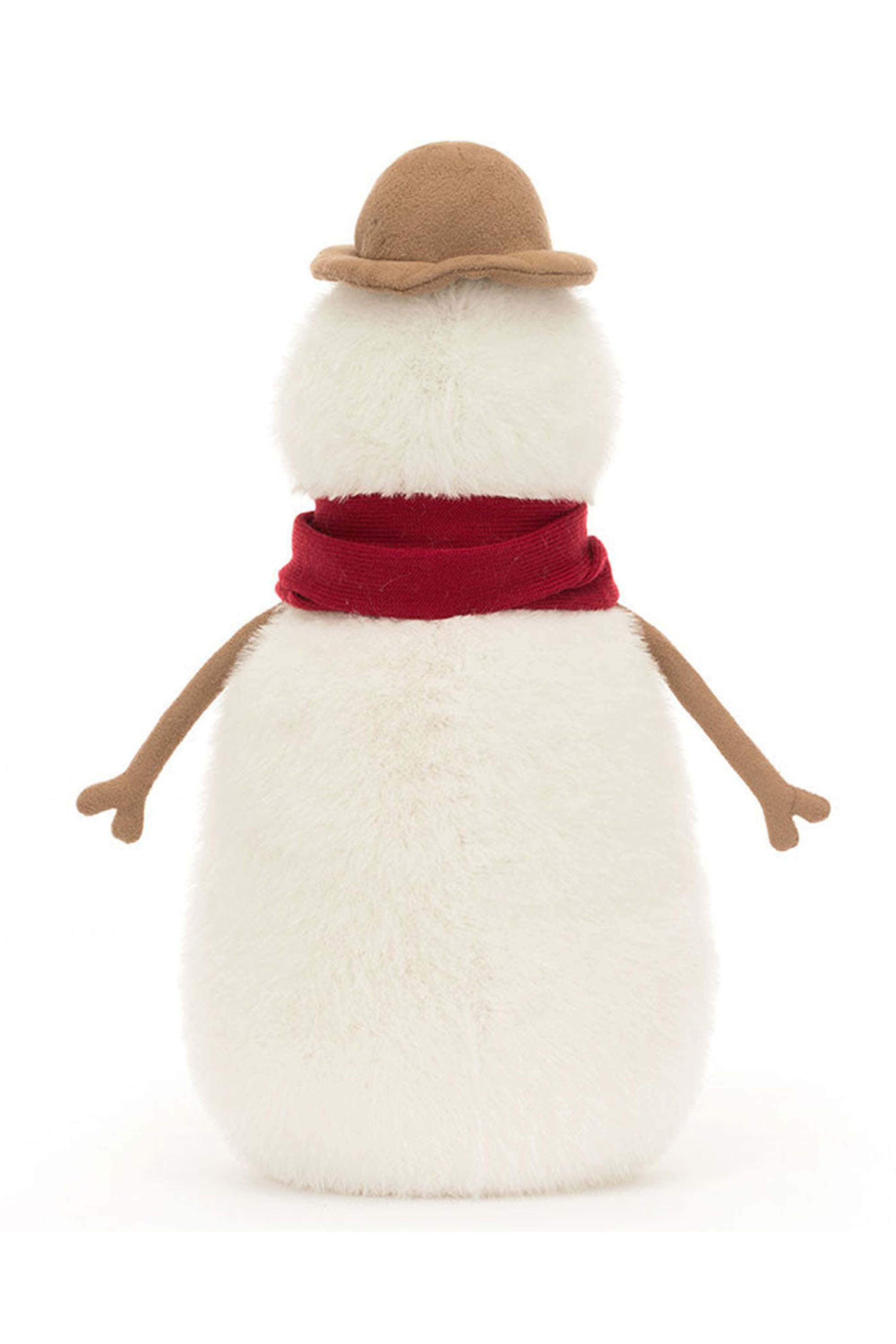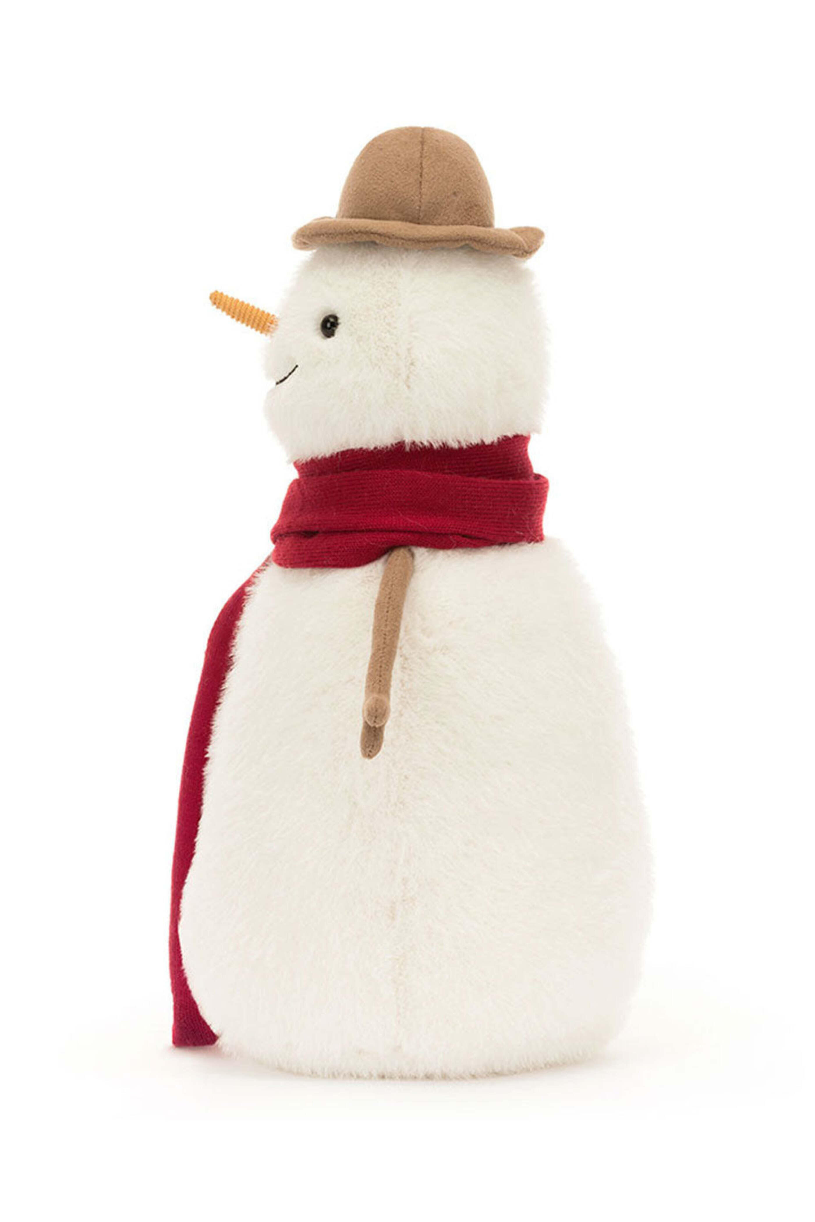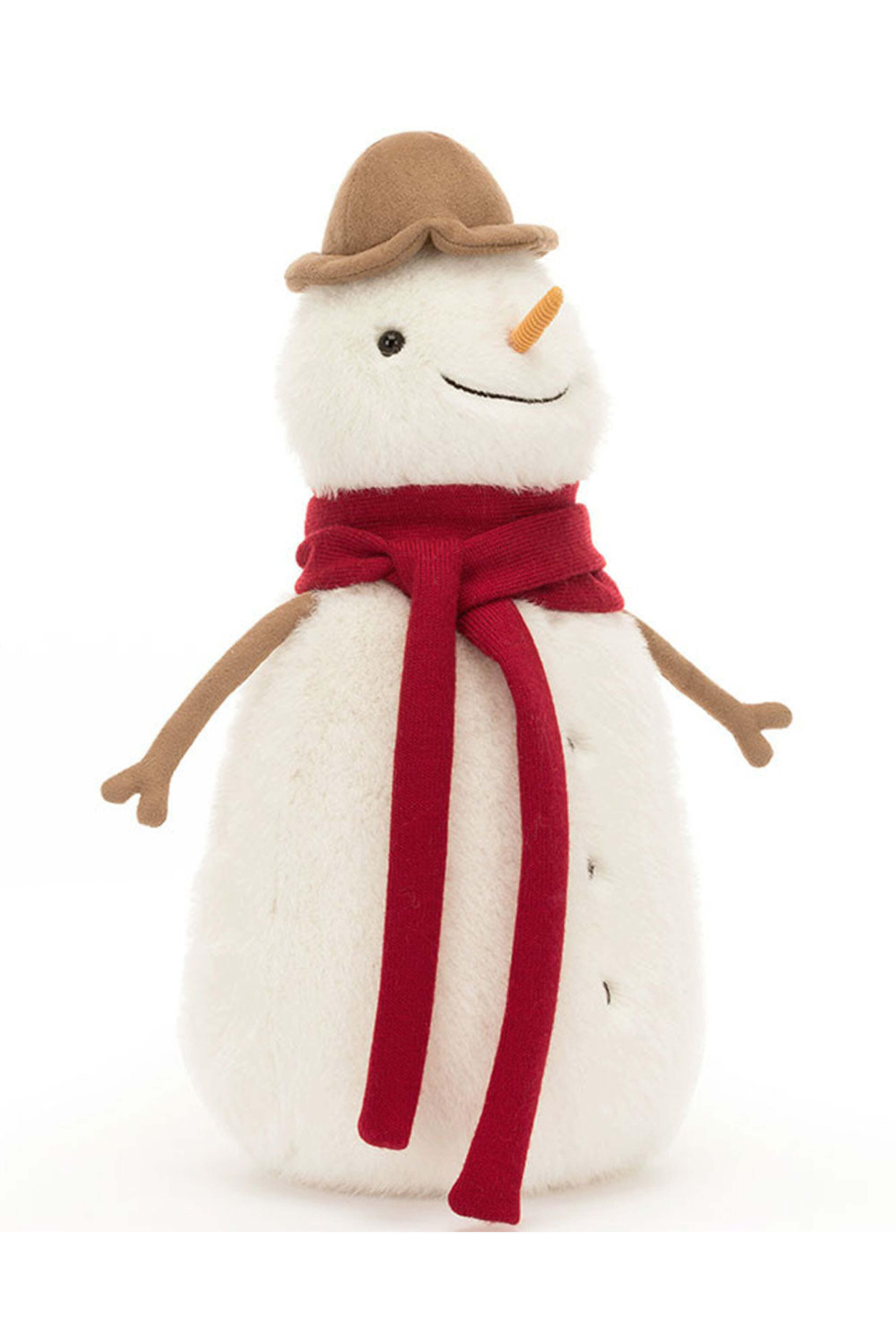 Jellycat Jesse Snowman . Hard Eye . Dimensions: 11.8in x 5.5in x 5.5in . Sitting Height: 11in . Main Materials: Polyester . Inner Filling: Polyester Fibers, PE Beans .