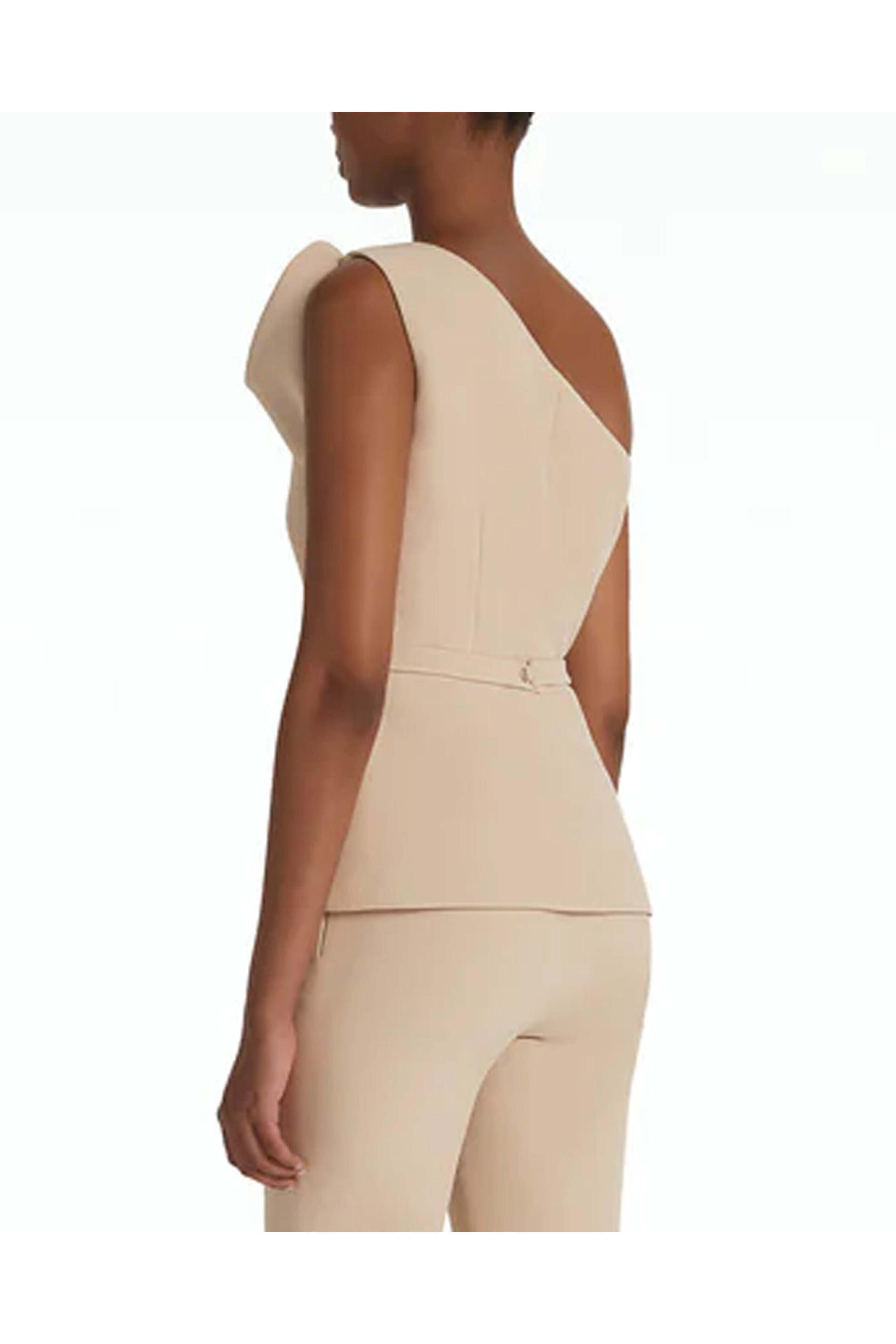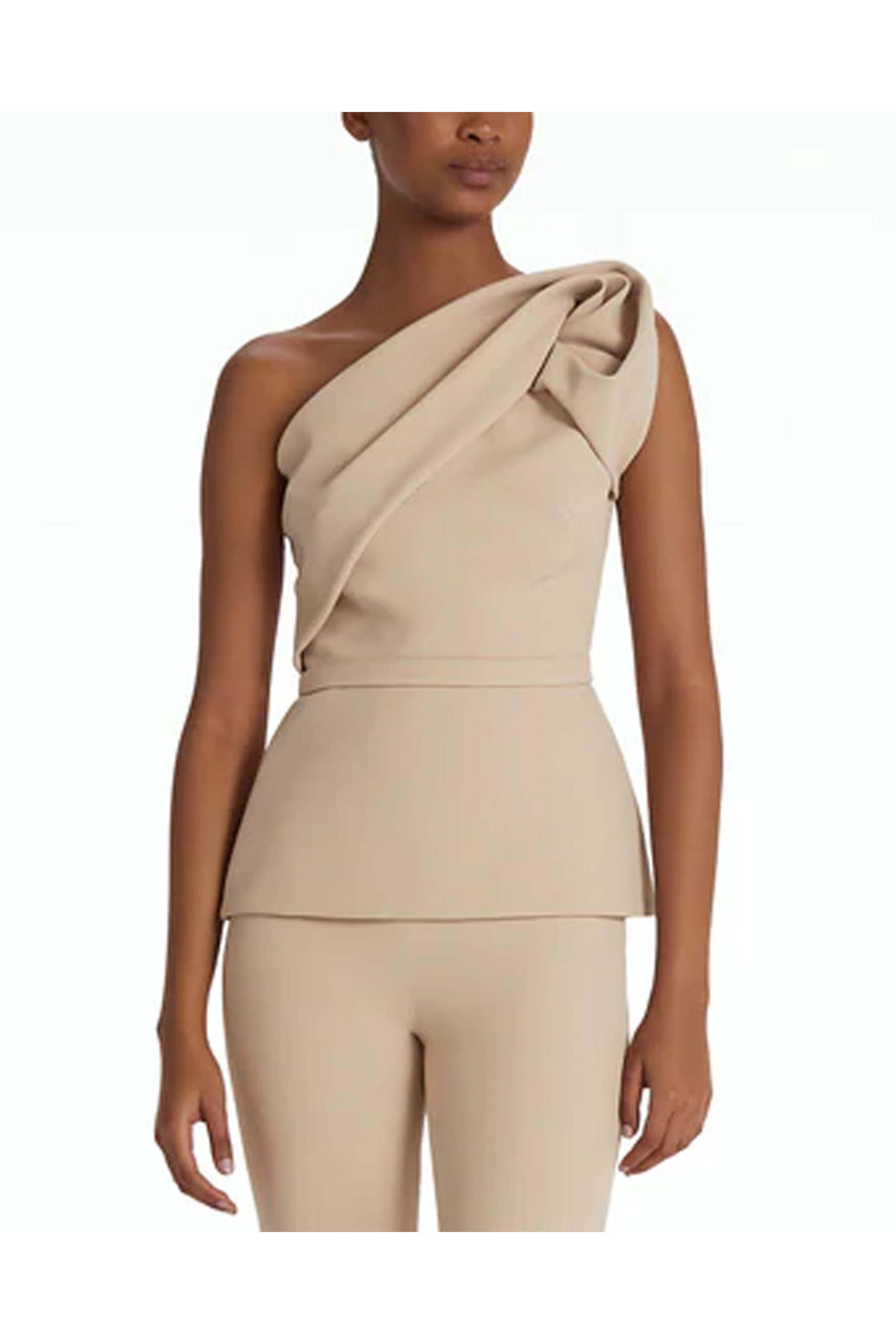 Safiyaa Stone Single Shoulder Jaida Top. Single shoulder neckline. Twist detail at left shoulder. Sleeveless. Removable belt; self-fabrication. Concealed back zip closure. Slim fit. Peplum silhouette. 92% polyester, 8% elastane.