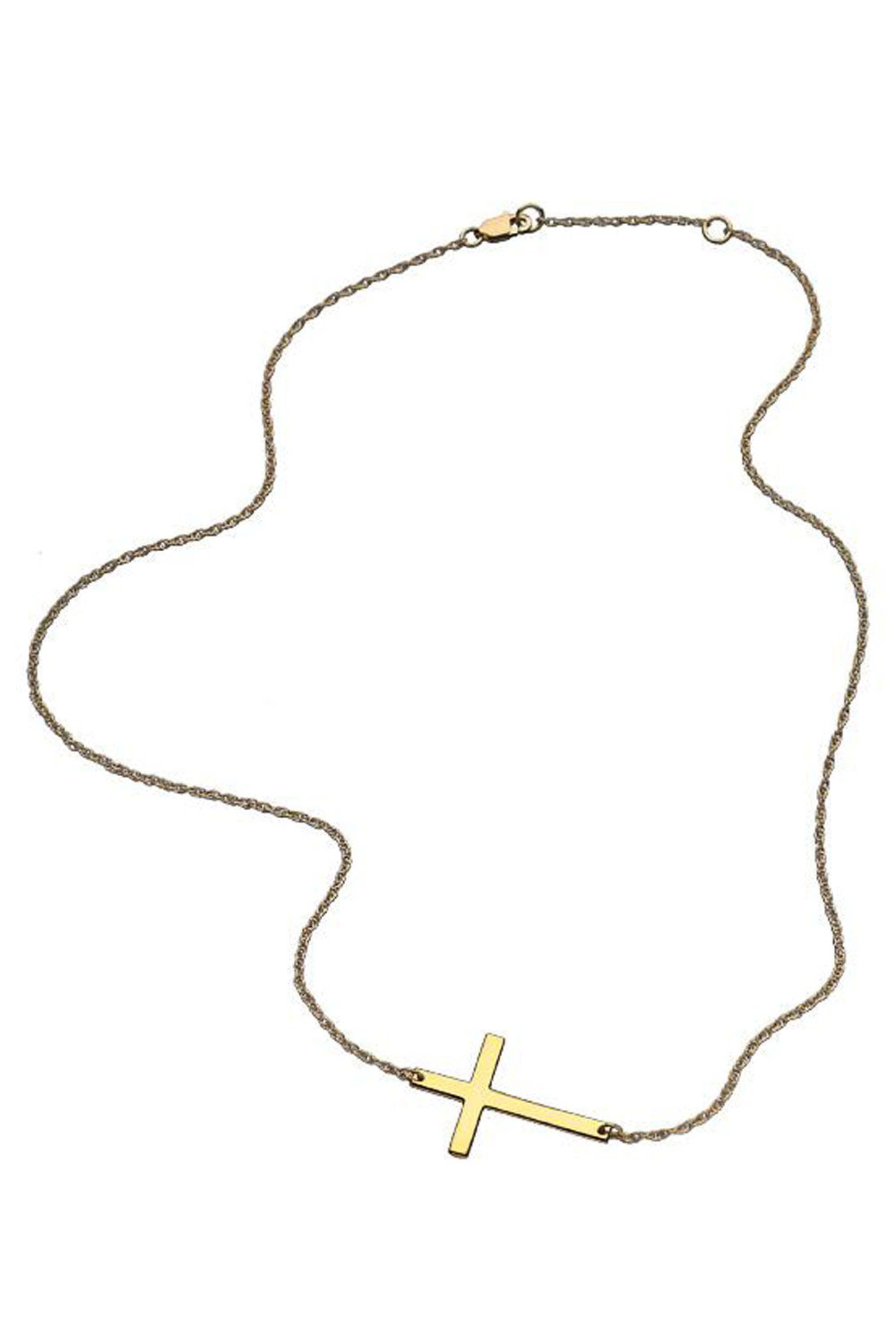 Jennifer Zeuner Theresa Cross Pendant Necklace. 14k gold vermeil. 15-16" chain length. 1" cross. Lobster clasp closure.