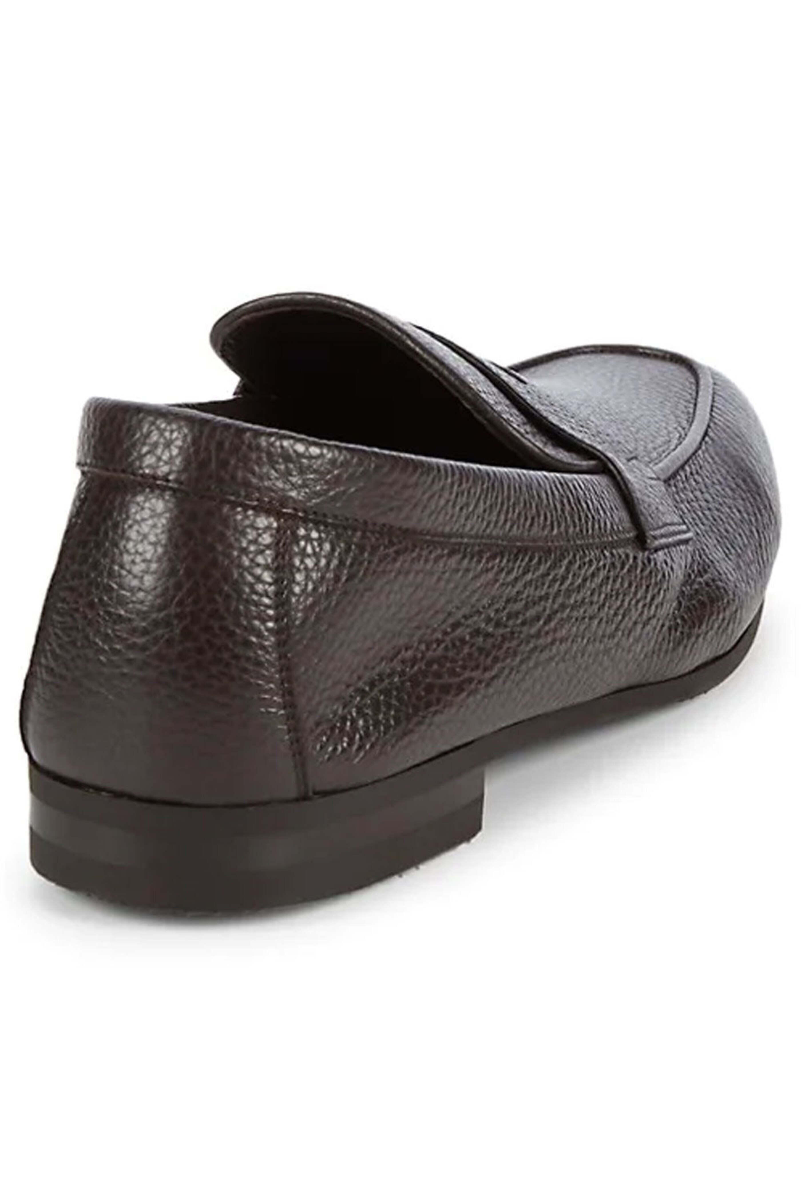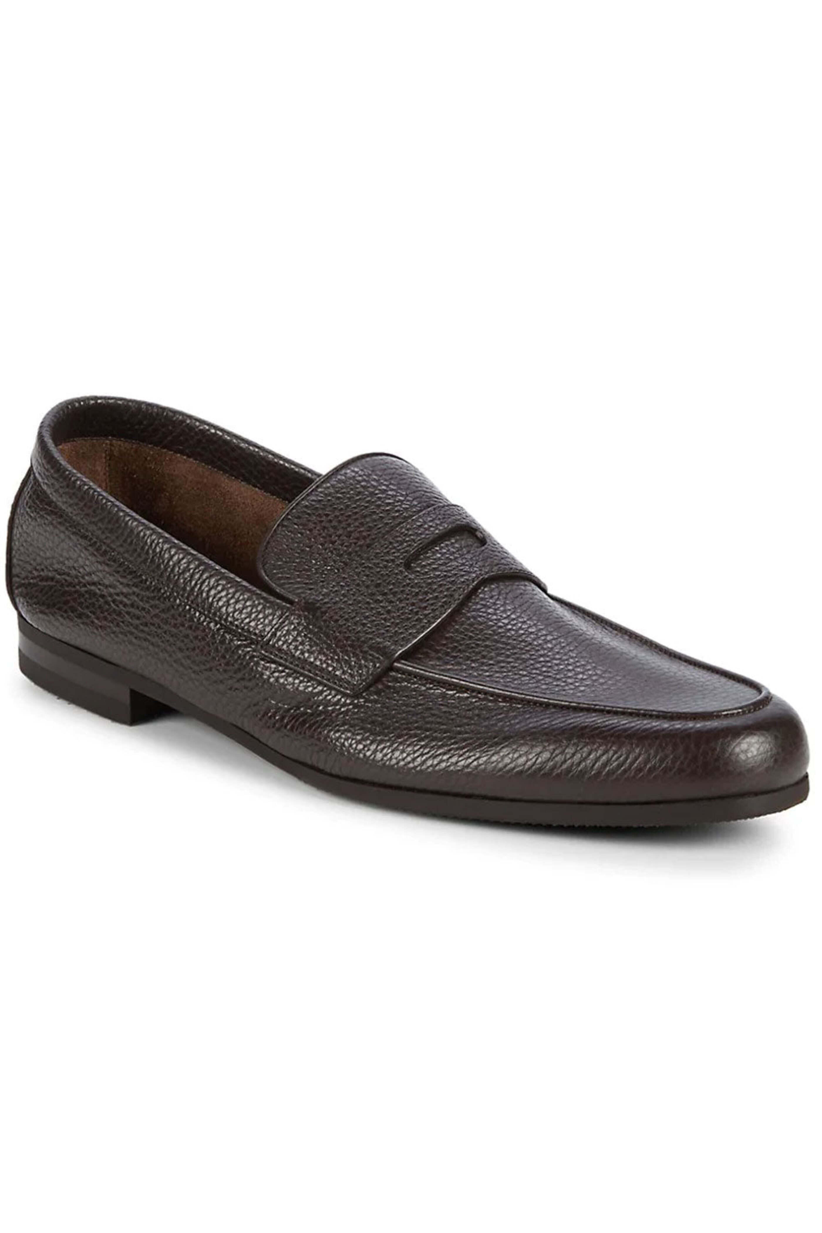 John Lobb Thorne Loafer in Dark Brown. Apron toe. Slip on. Low stacked heel. Leather upper and lining. Padded insole. Rubber sole. Made in Italy . All sizes listed are in US measurements .