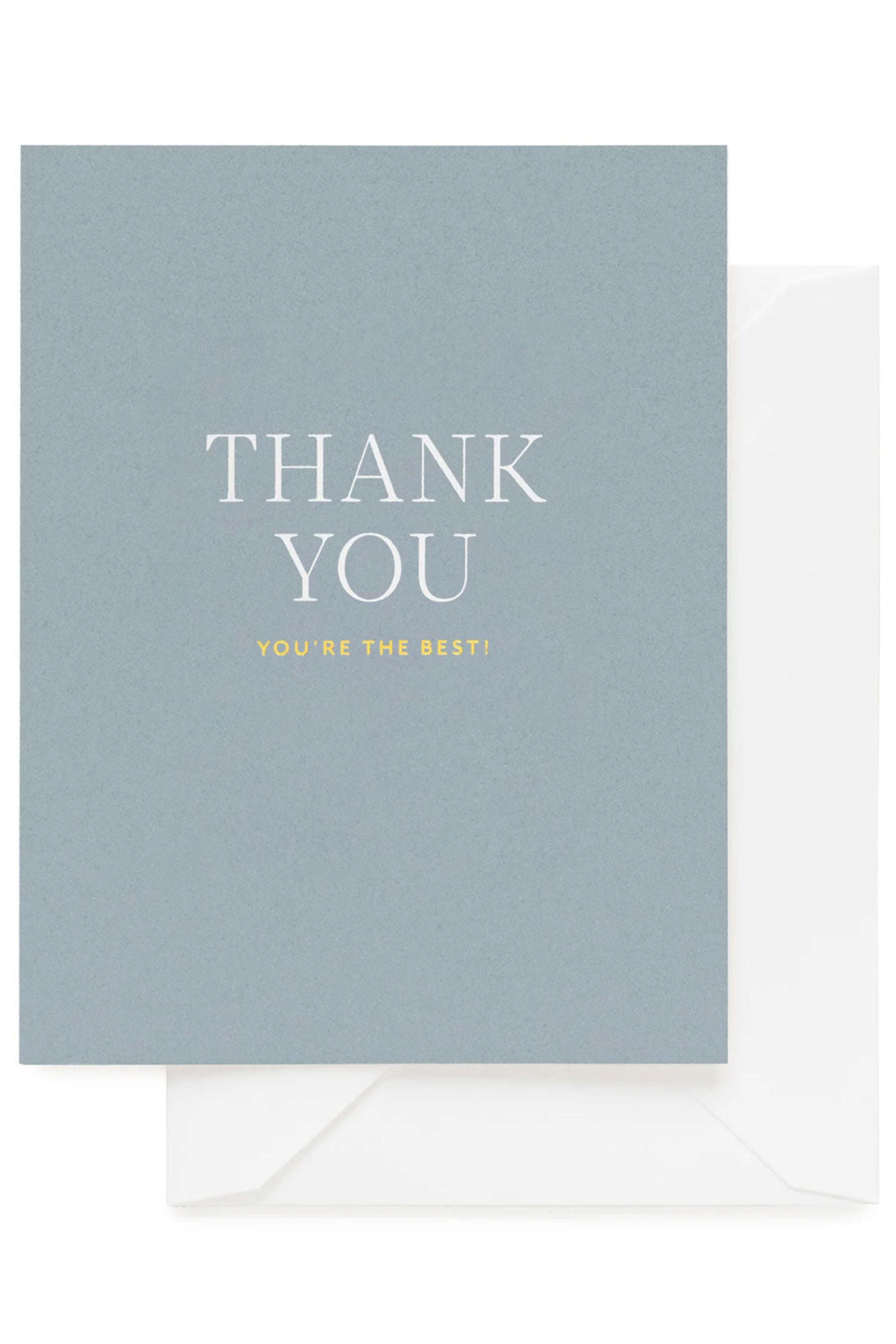 Sugar Paper Youre The Best. Folded Card. Foil Printed. Blank interior. Slate Blue Paper. White + Gold Foil. Crisp White Envelope. 4.25 x 5.5. Hand printed in LA.