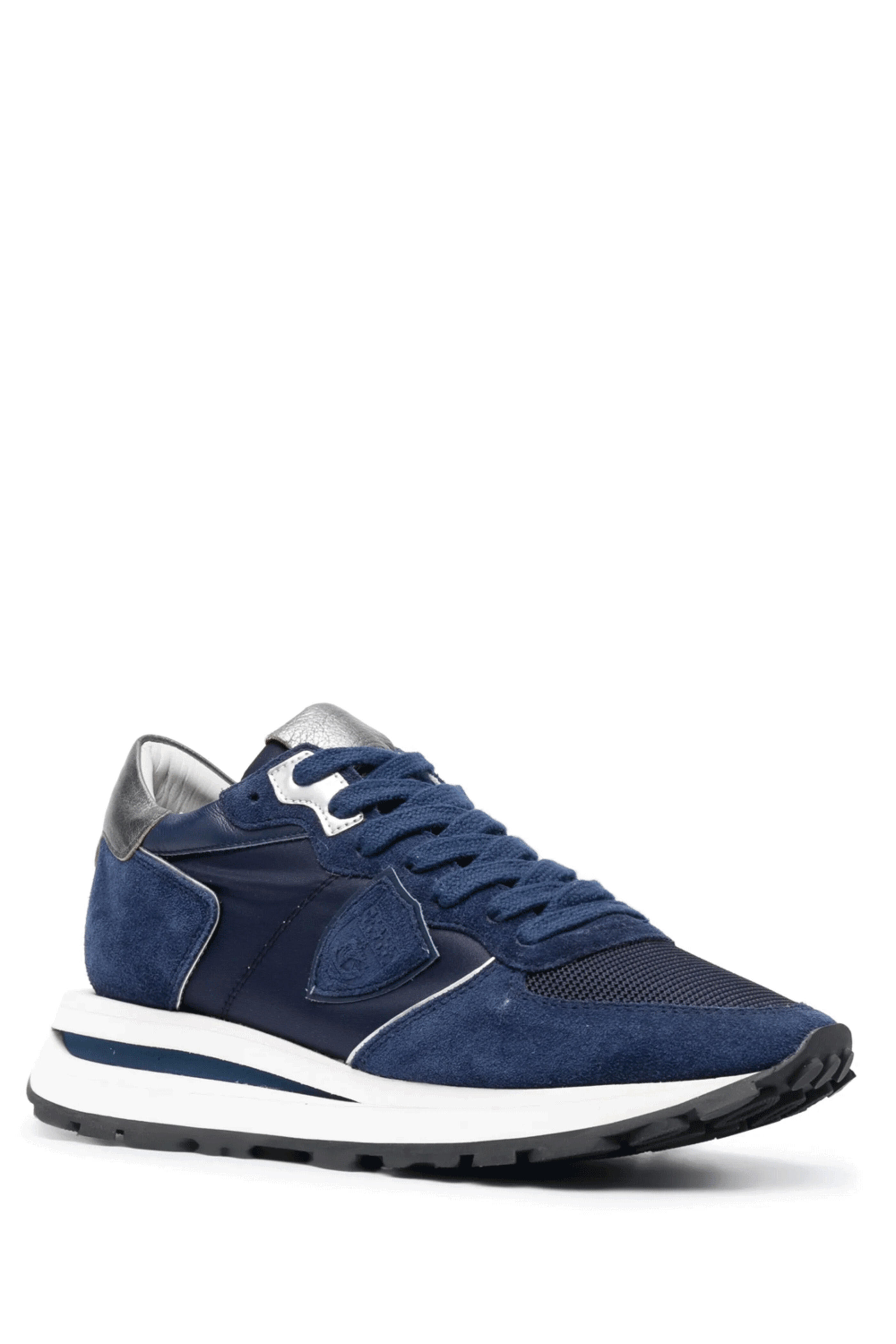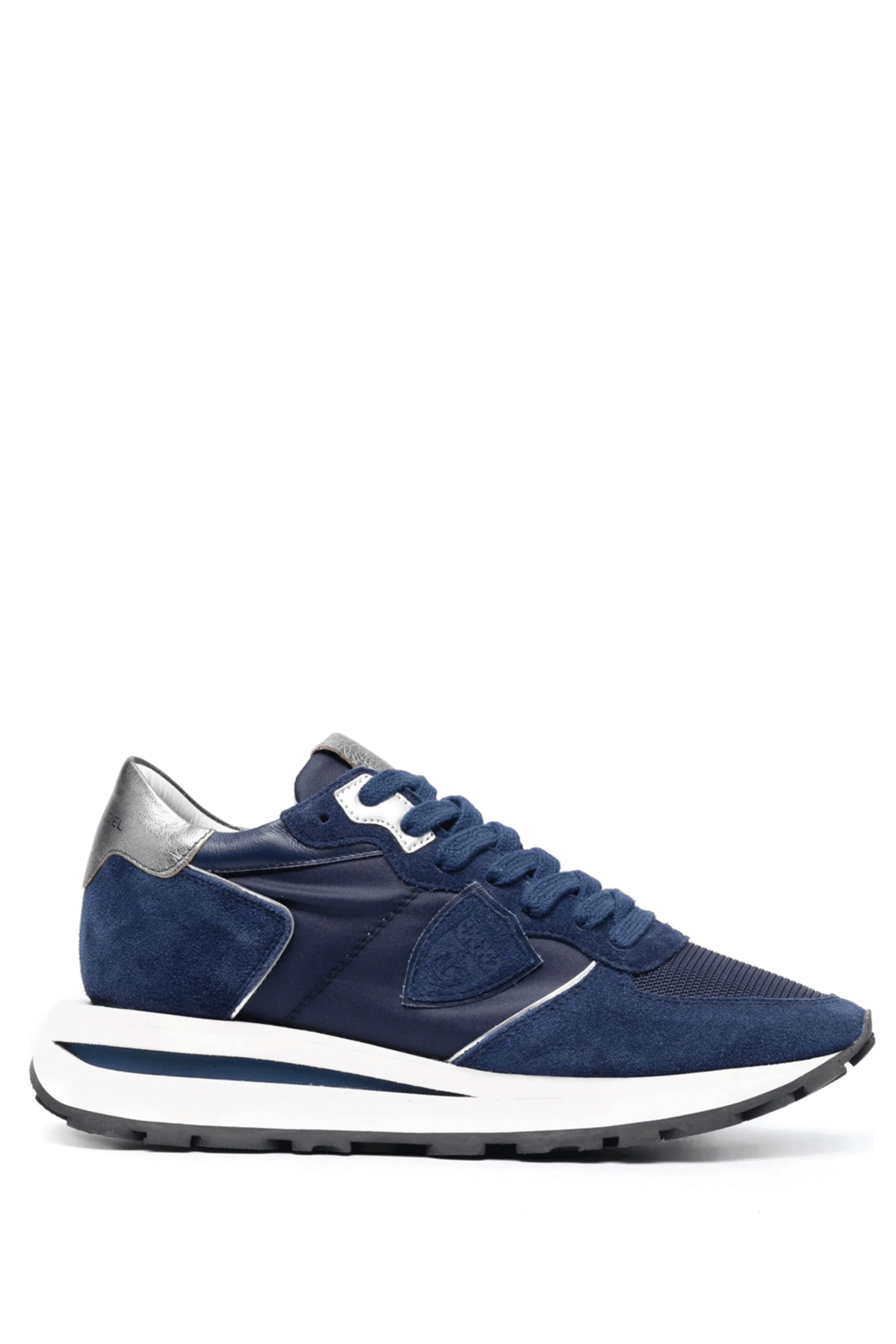 Fabric and suede outer. Almond toe. Front lace-up fastening. Logo patch at the tongue. Applique logo. Contrasting branded heel counter. Branded footbed. Terry cloth fabric lining. Memory foam insole. Contrasting 3-D insert under heel. Rubber sole. Made in Italy. Heel height 2.16. Sole height 1.77.