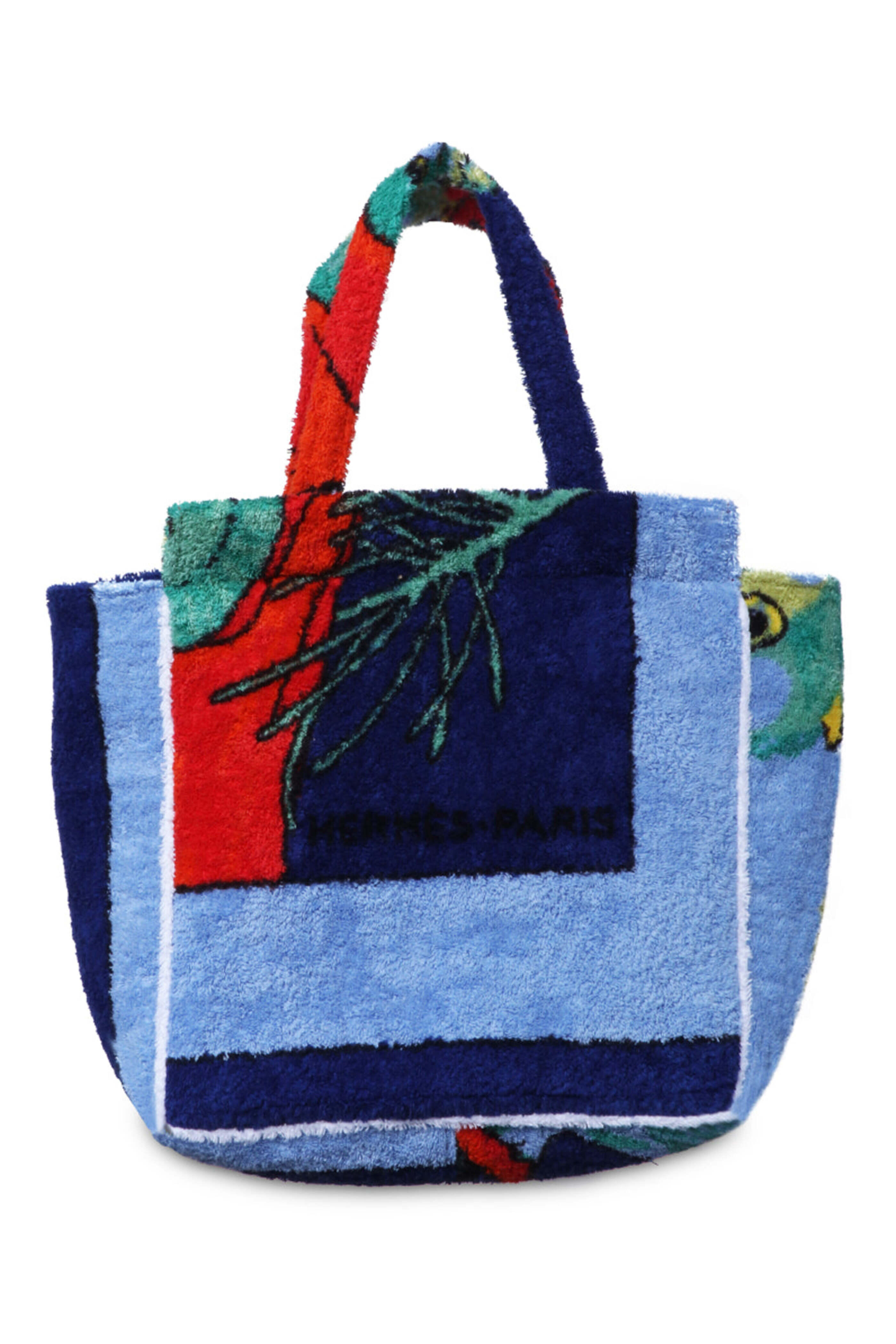 LilyEve Terry Cloth Cabana Tote in Light Blue or Navy Colorblock. Double top handles. Open top. Interior zip closure. Authentic Hermes toweling fabrication. 5â H x 18â W x 6â D. PLEASE CALL TO VERIFY AVAILABILITY FOR THE COLOR YOU ARE INTERESTED IN | CALL US AT 855.479.9539. 100% terry.