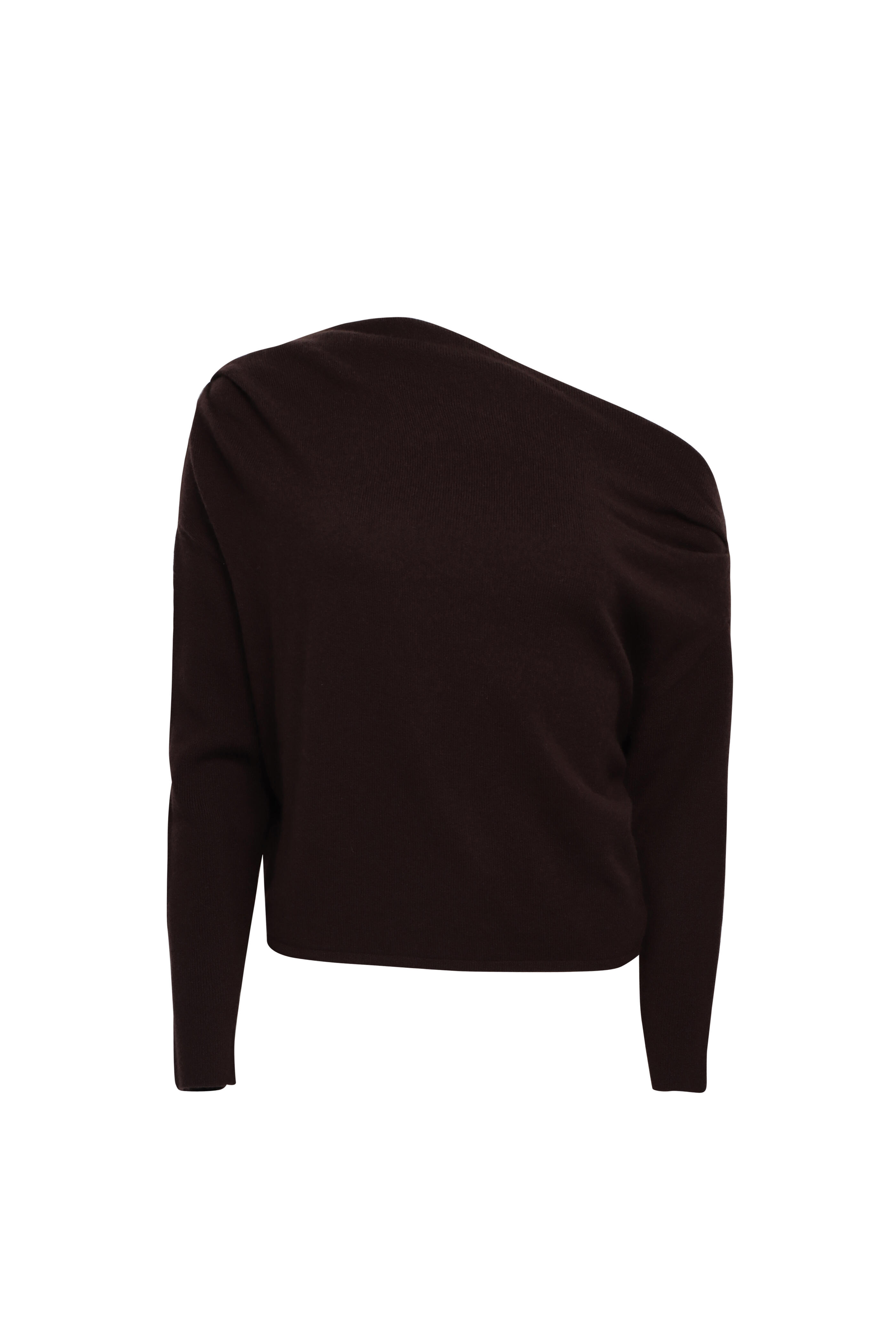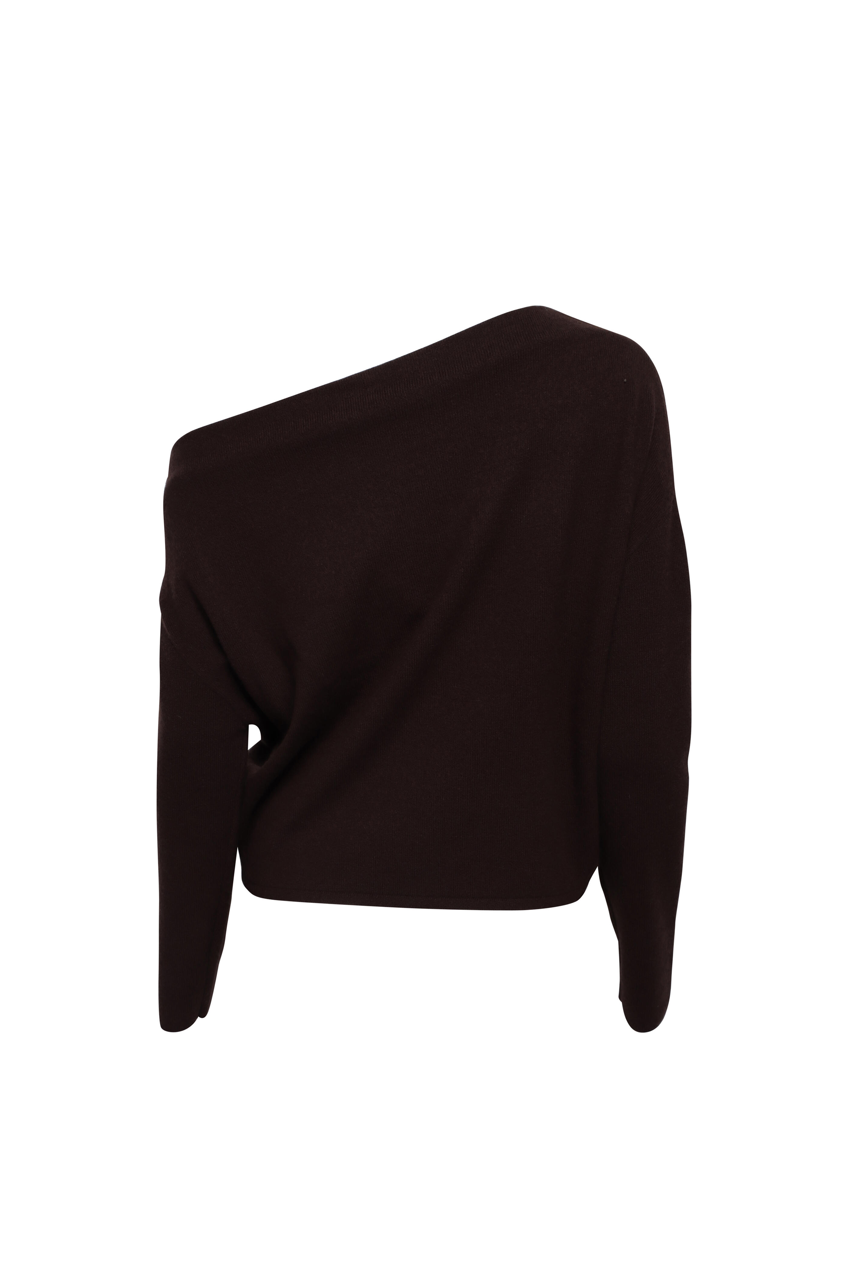 Asymmetrical off the shoulder neckline. Drop shoulders. Long sleeves. Relaxed fit. Knit fabrication. Imported. 90% wool, 10% cashmere. Dry clean.