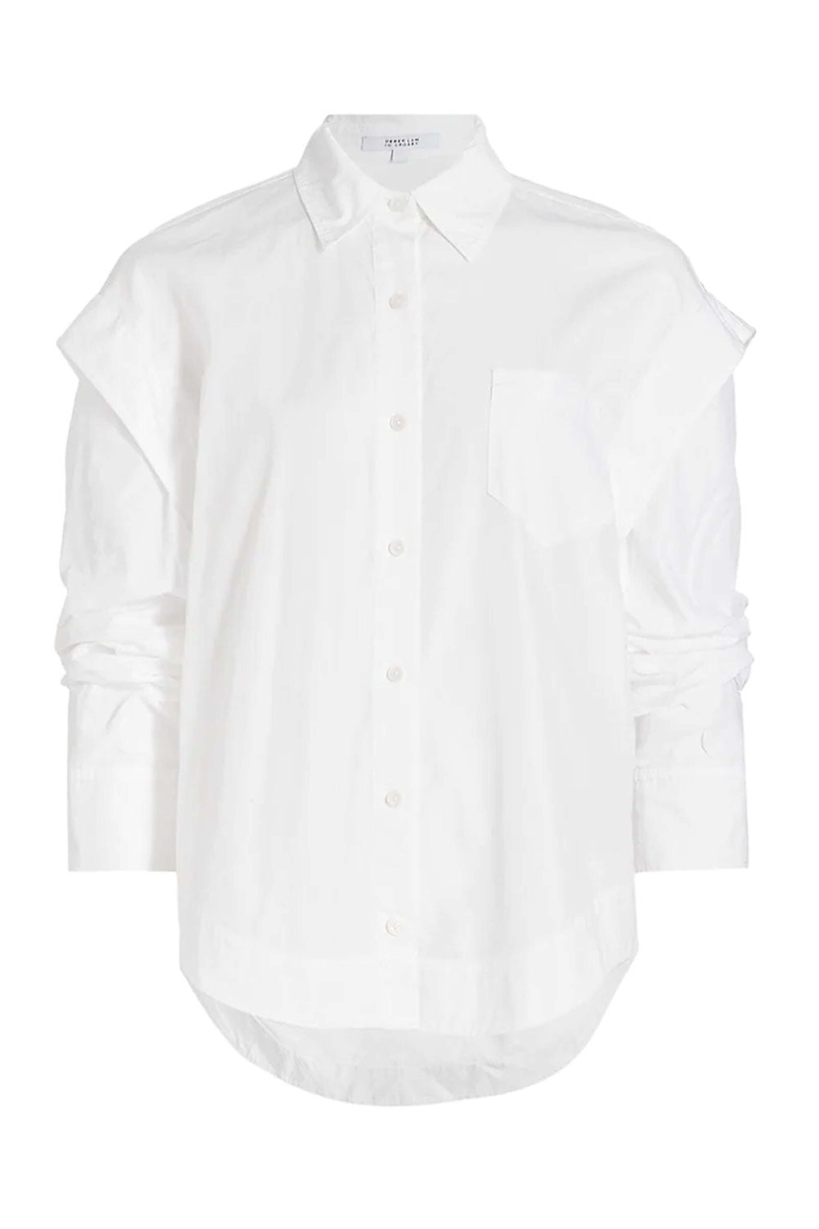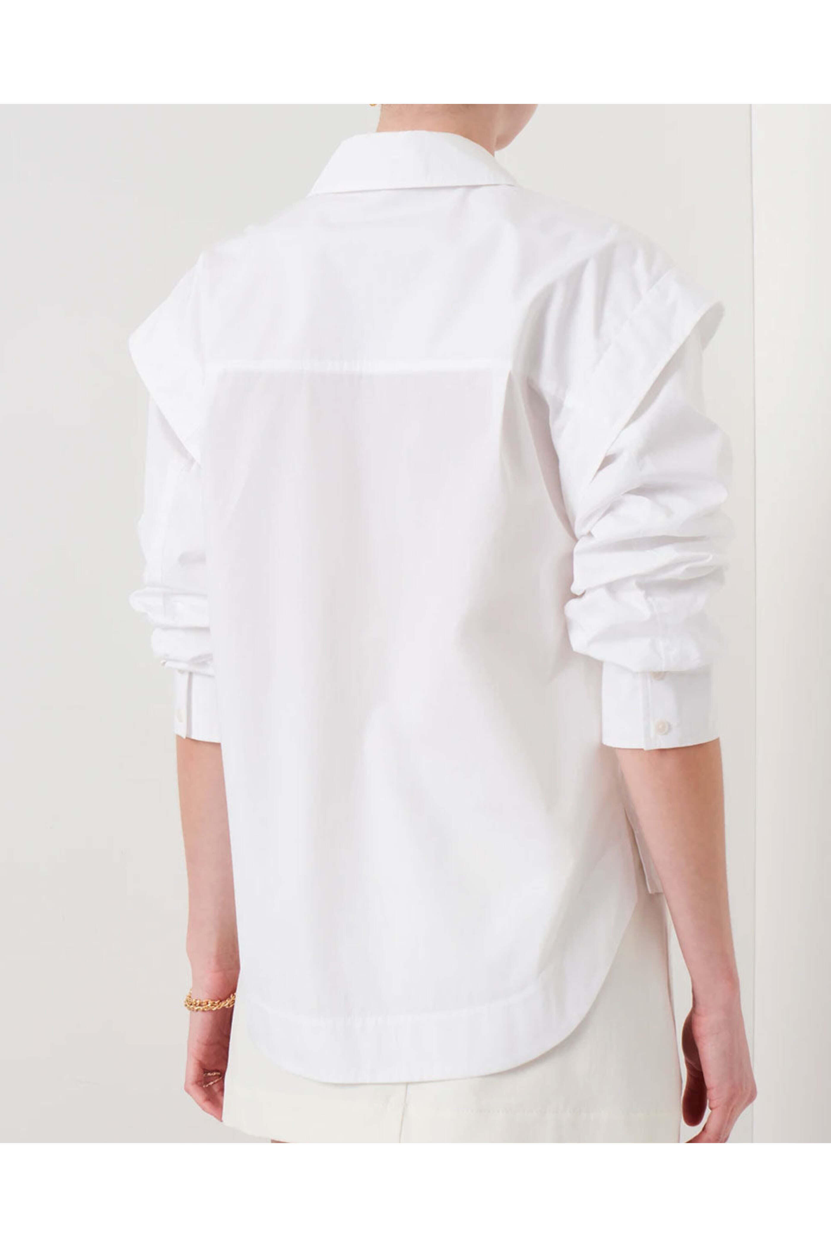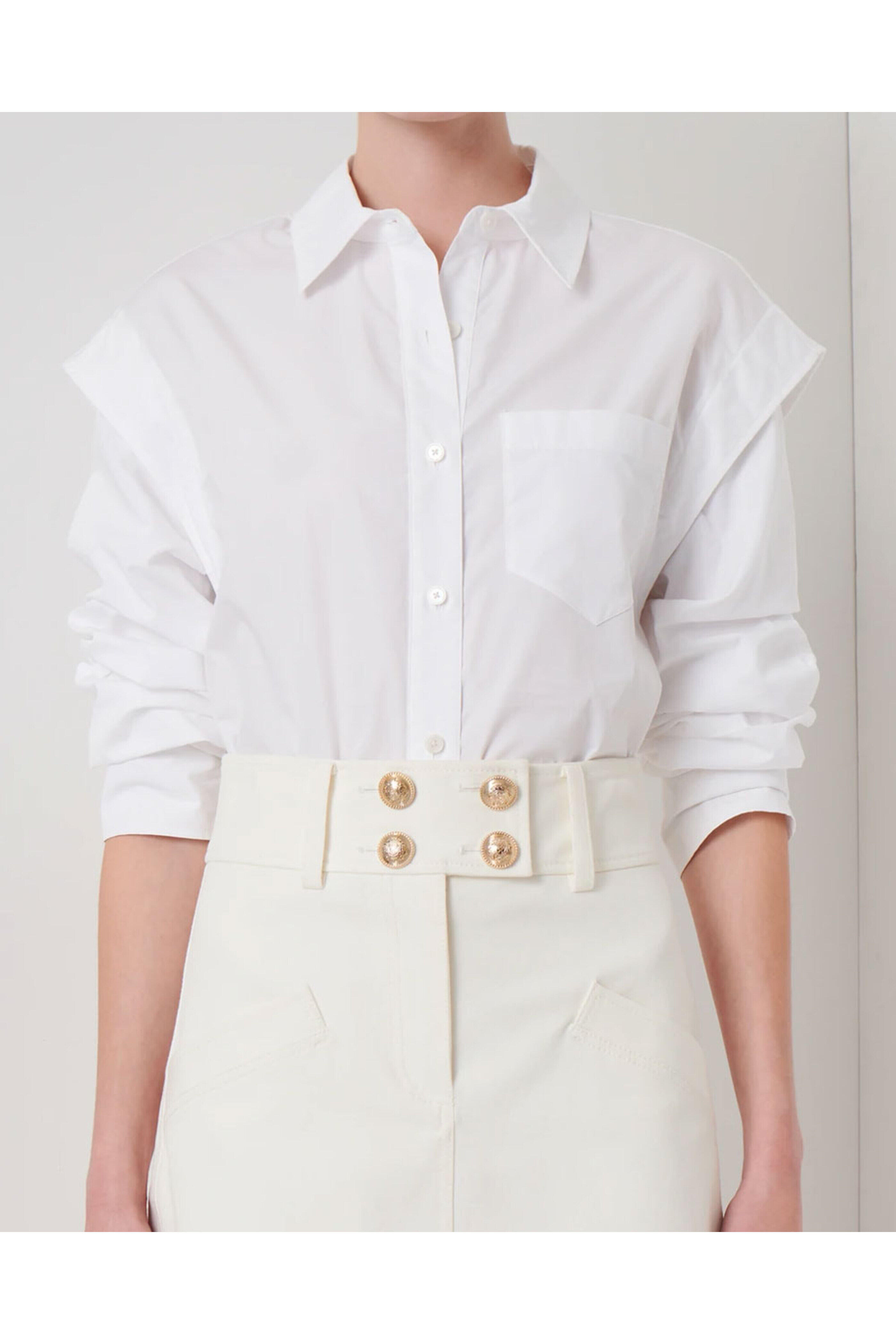 - Derek Lam 10 Crosby White Marley Ruched Sleeve Shirt