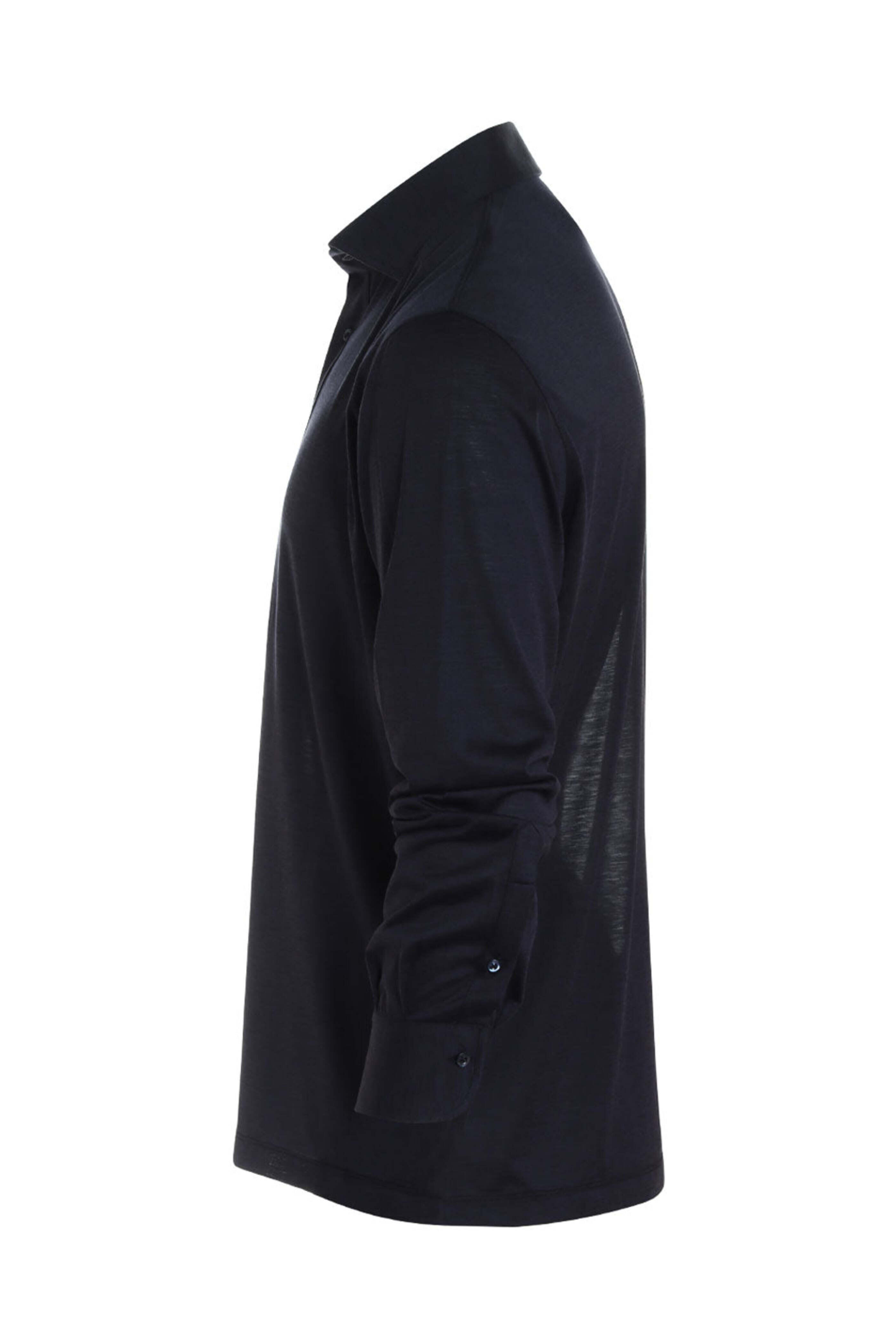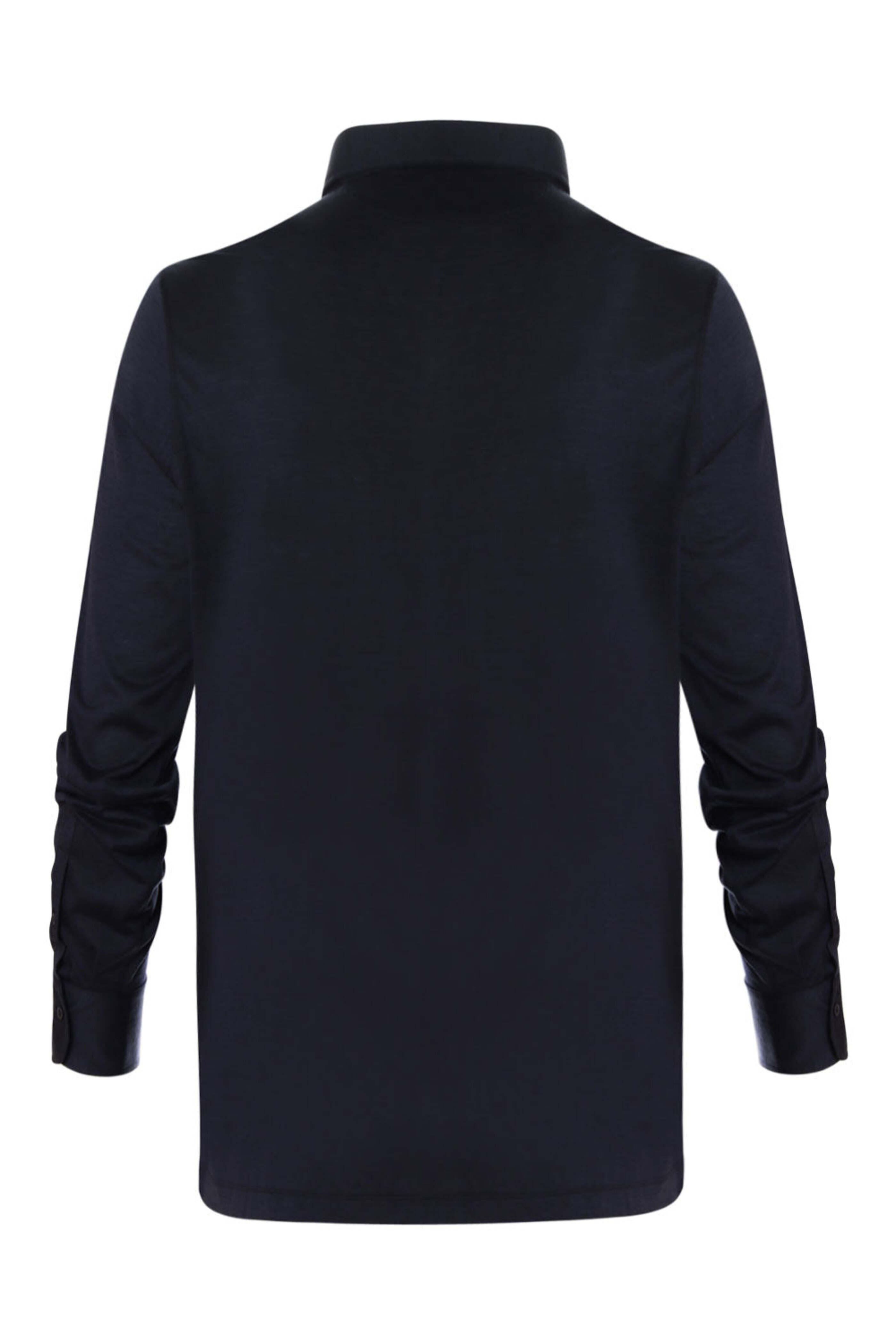Navy Silk Blend Long Sleeve Polo