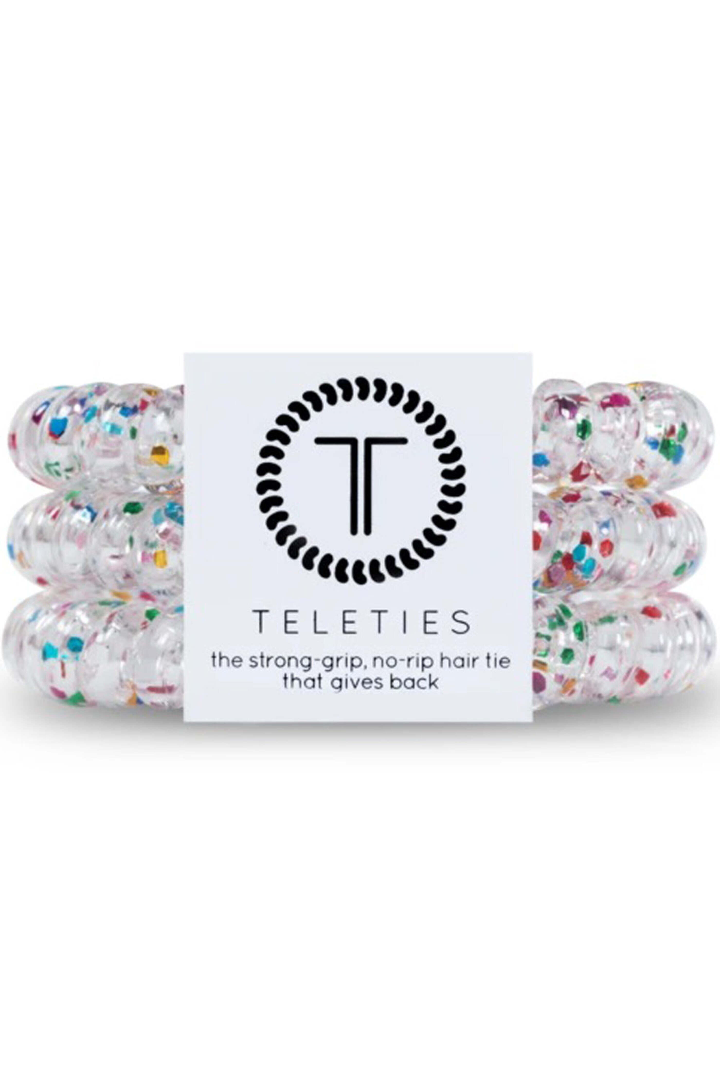 - Teleties Party People Small Spiral Hair Ties 3-Pack Spiral hair tie 4.5cm W x .5 cm Thick Water resistant Pack of three