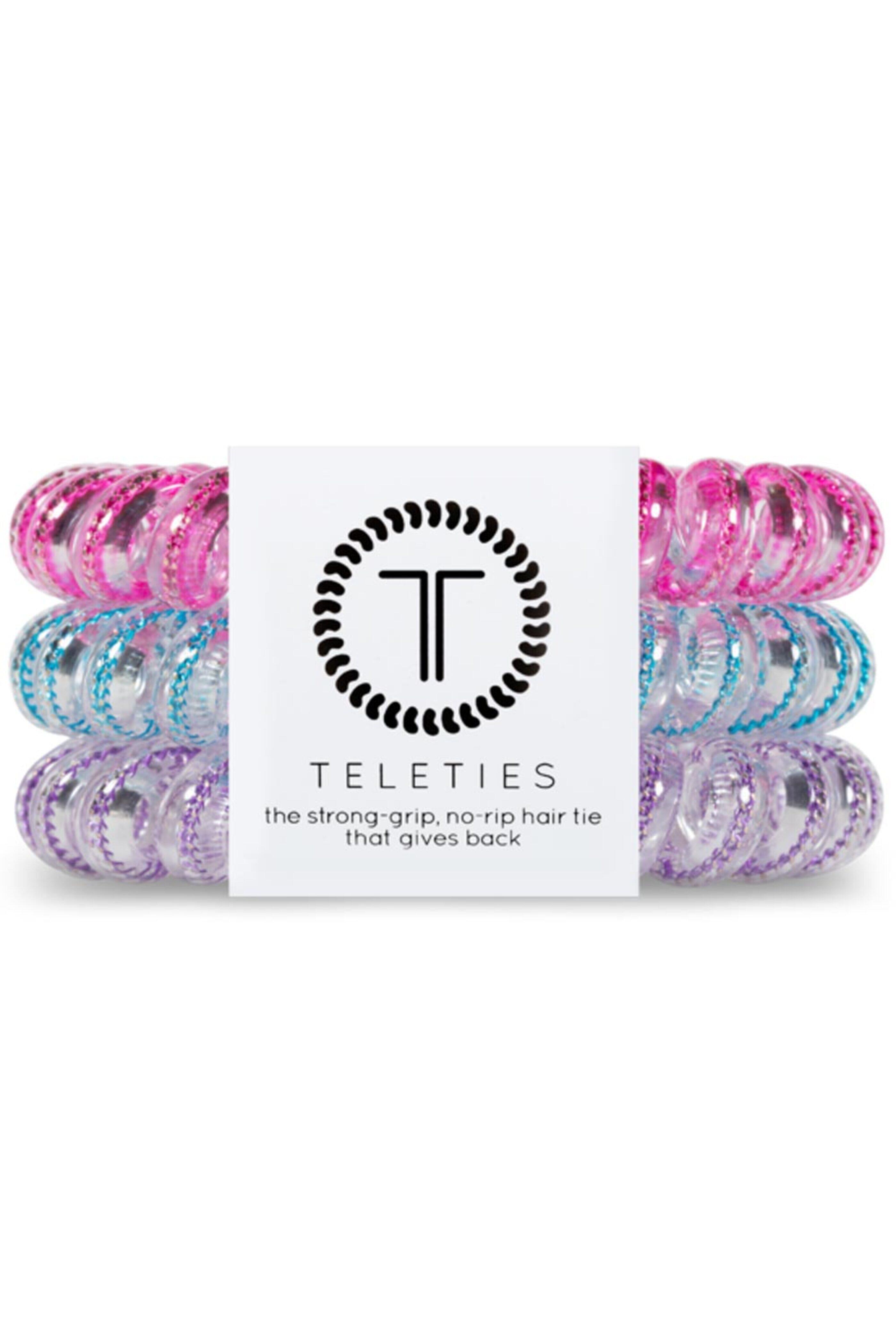 - Teleties Bling It On Small Spiral Hair Ties 3-Pack Spiral hair tie 4.5cm W x .5 cm Thick Water resistant Pack of three