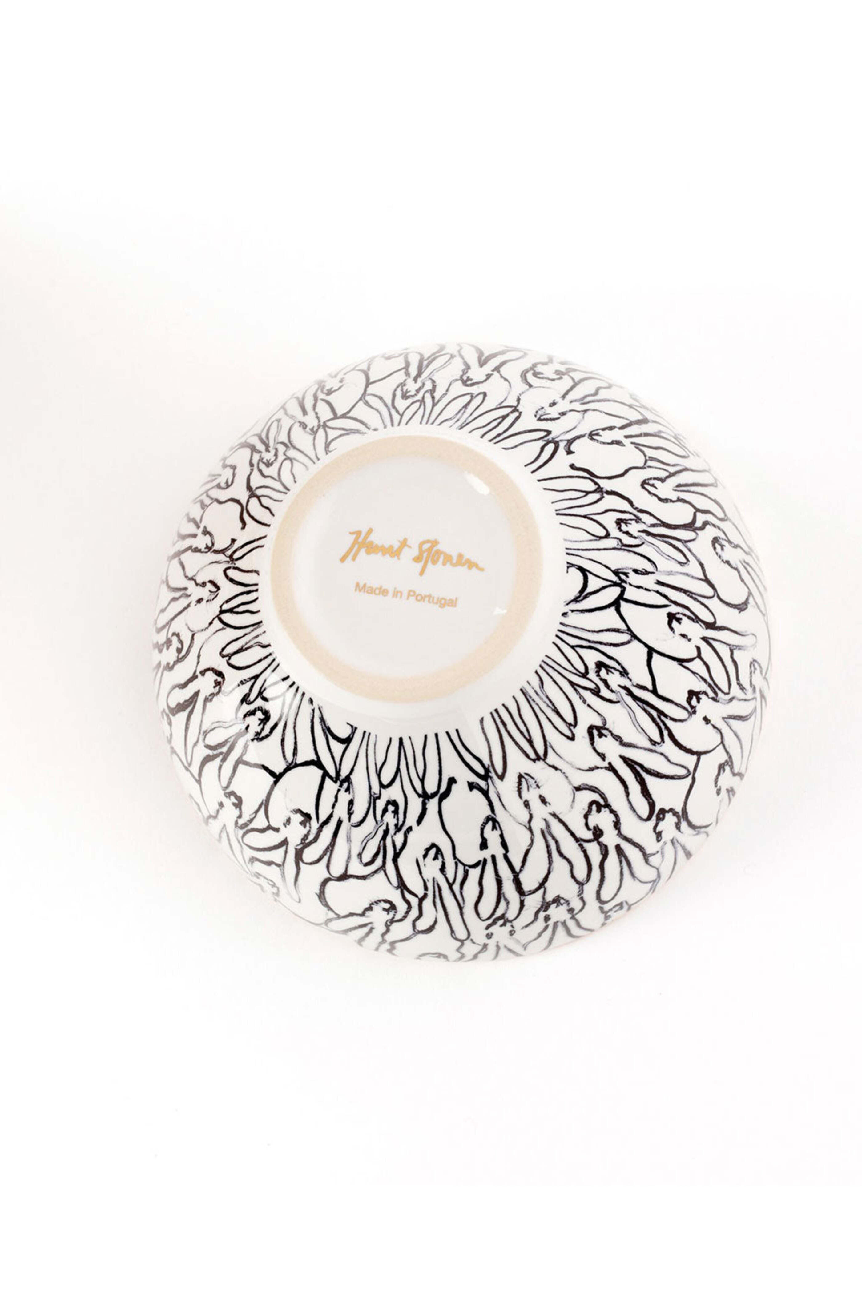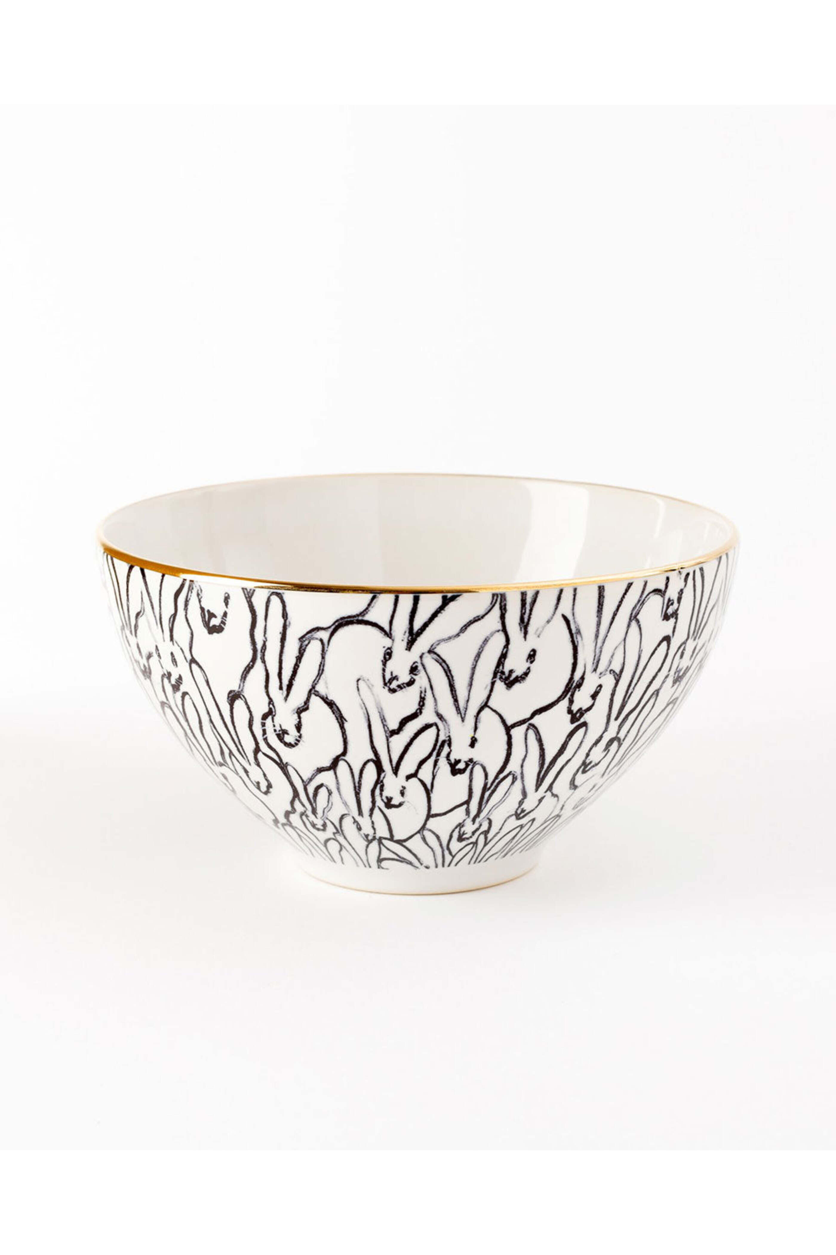 - Hunt Slonem Rabbit Run Cereal Bowl Hunts bunnies all-over motif Stoneware bowl finished with a hand painted gold rim 5.75 x 3 Handwashing is recommended
