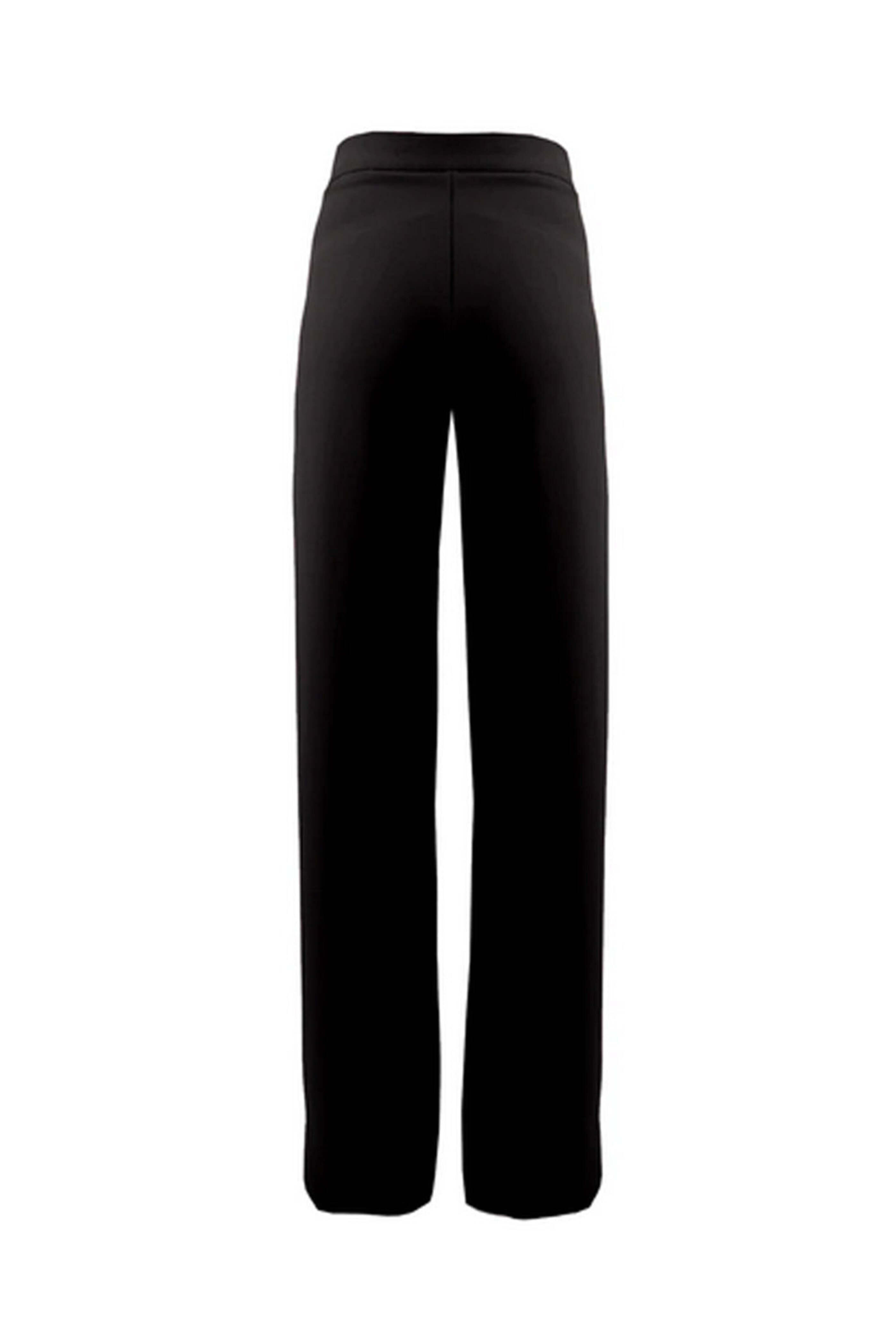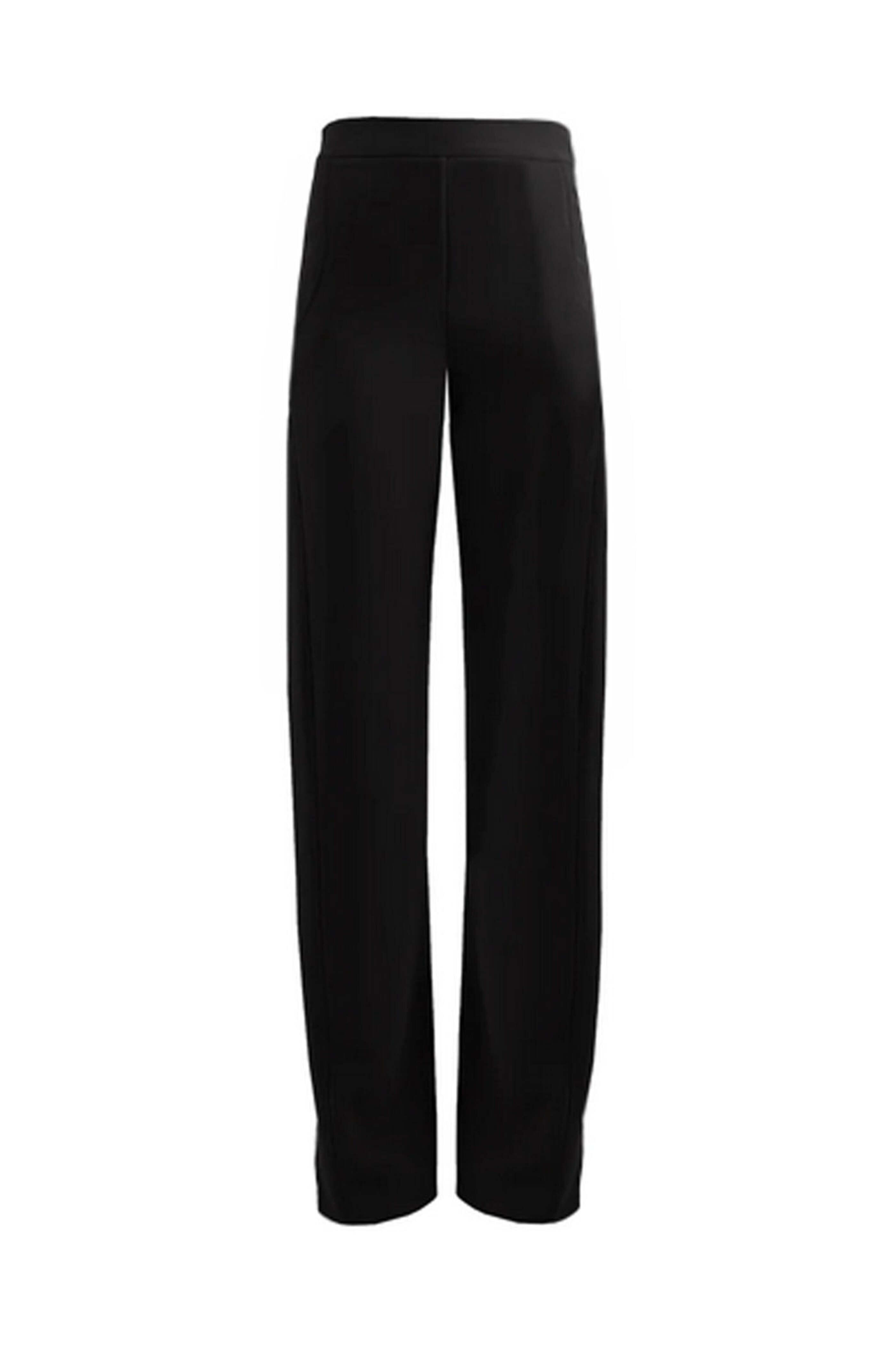 Edeline Lee Black Crepe Twist Trouser. High rise. Front slip pockets. Concealed side zip closure. Straight silhouette. Wide through leg. Full length. Crinkle georgette fabrication. Made in England. 100% polyester.