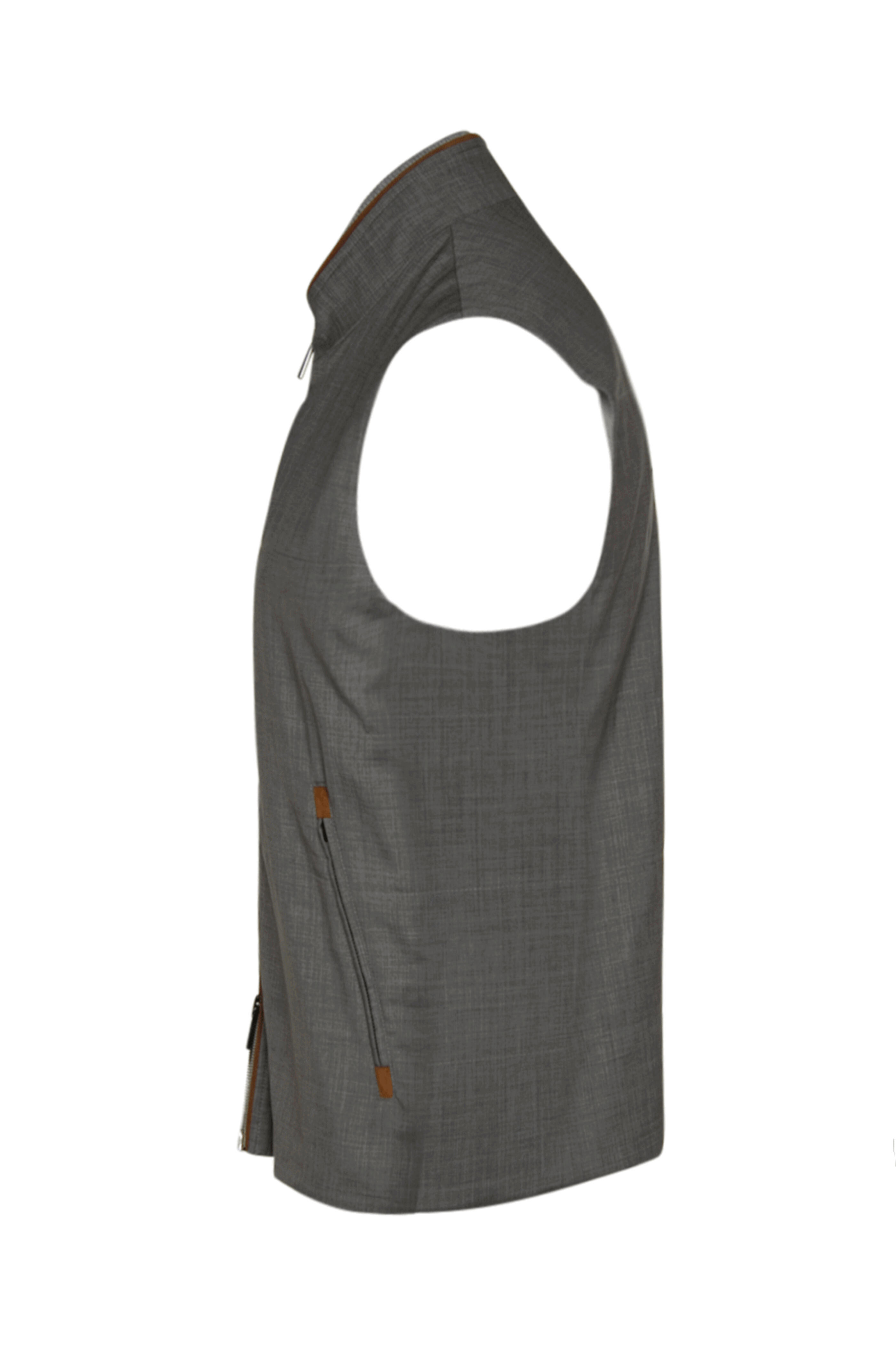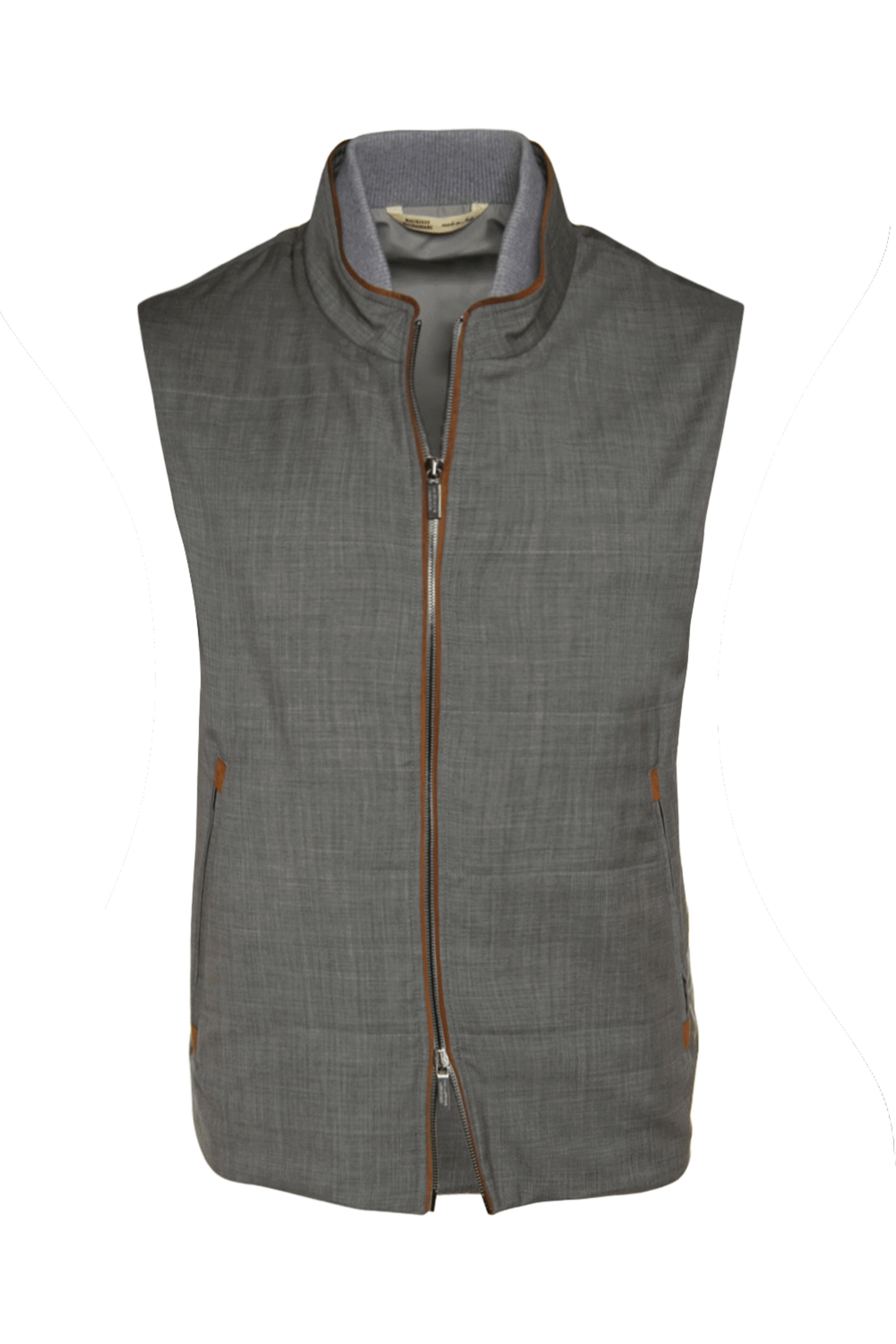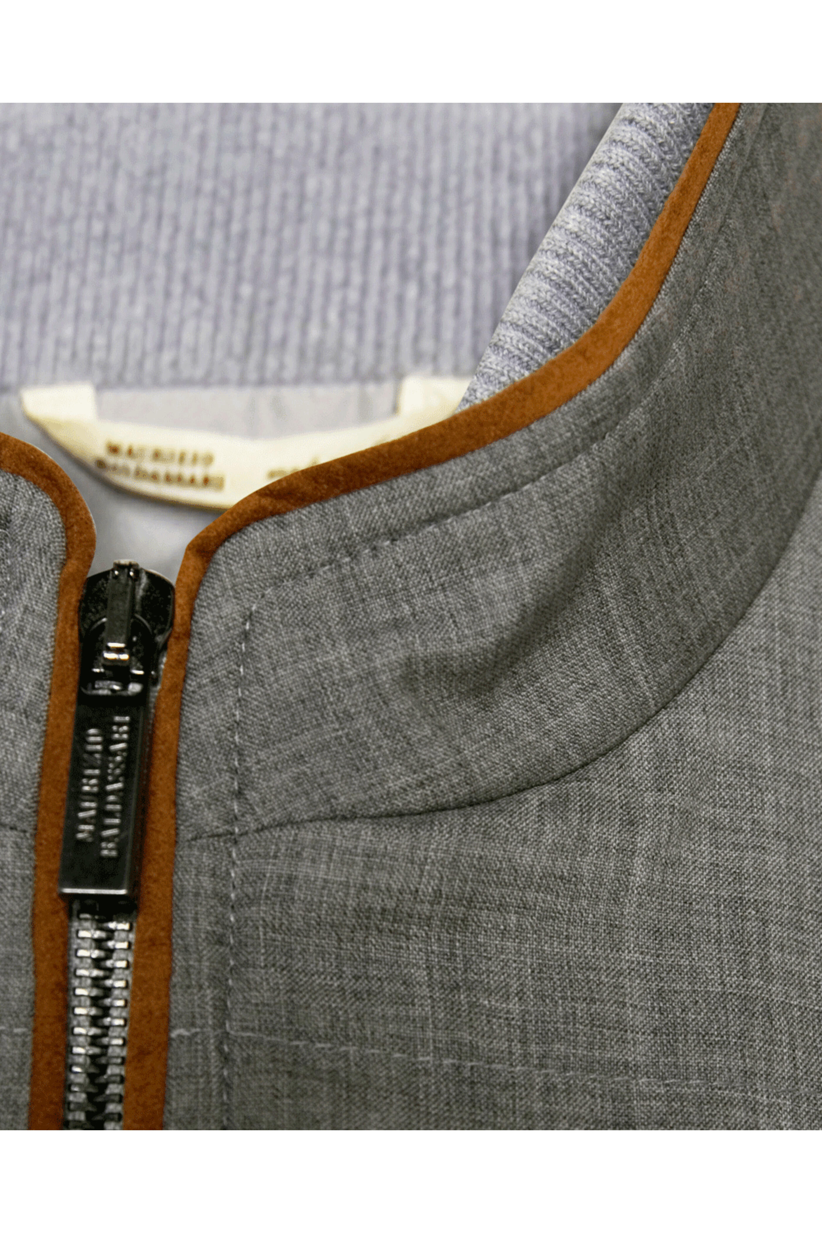 - Maurizo Baldassari Grey Double Zip Wool Vest with Suede Trim