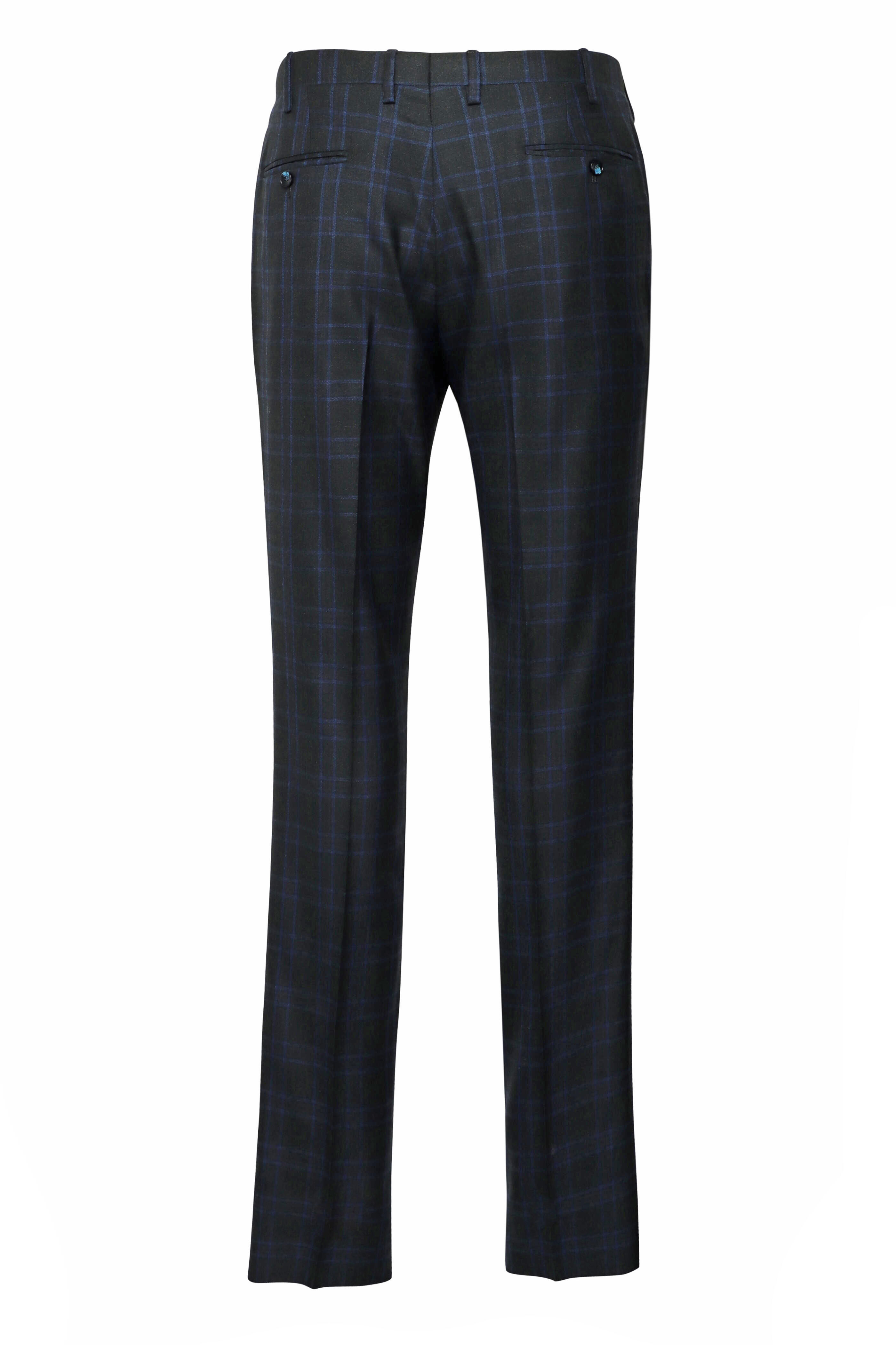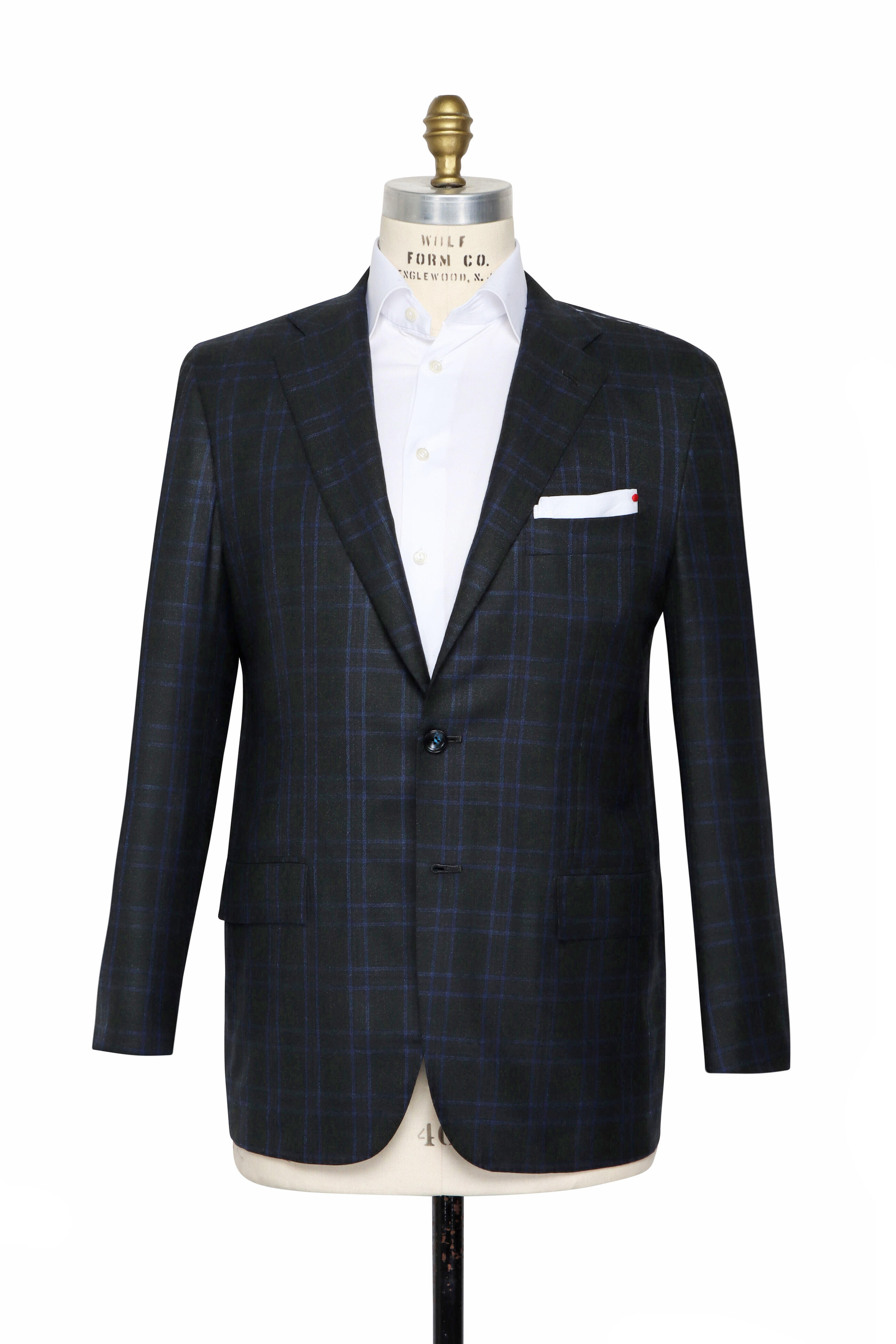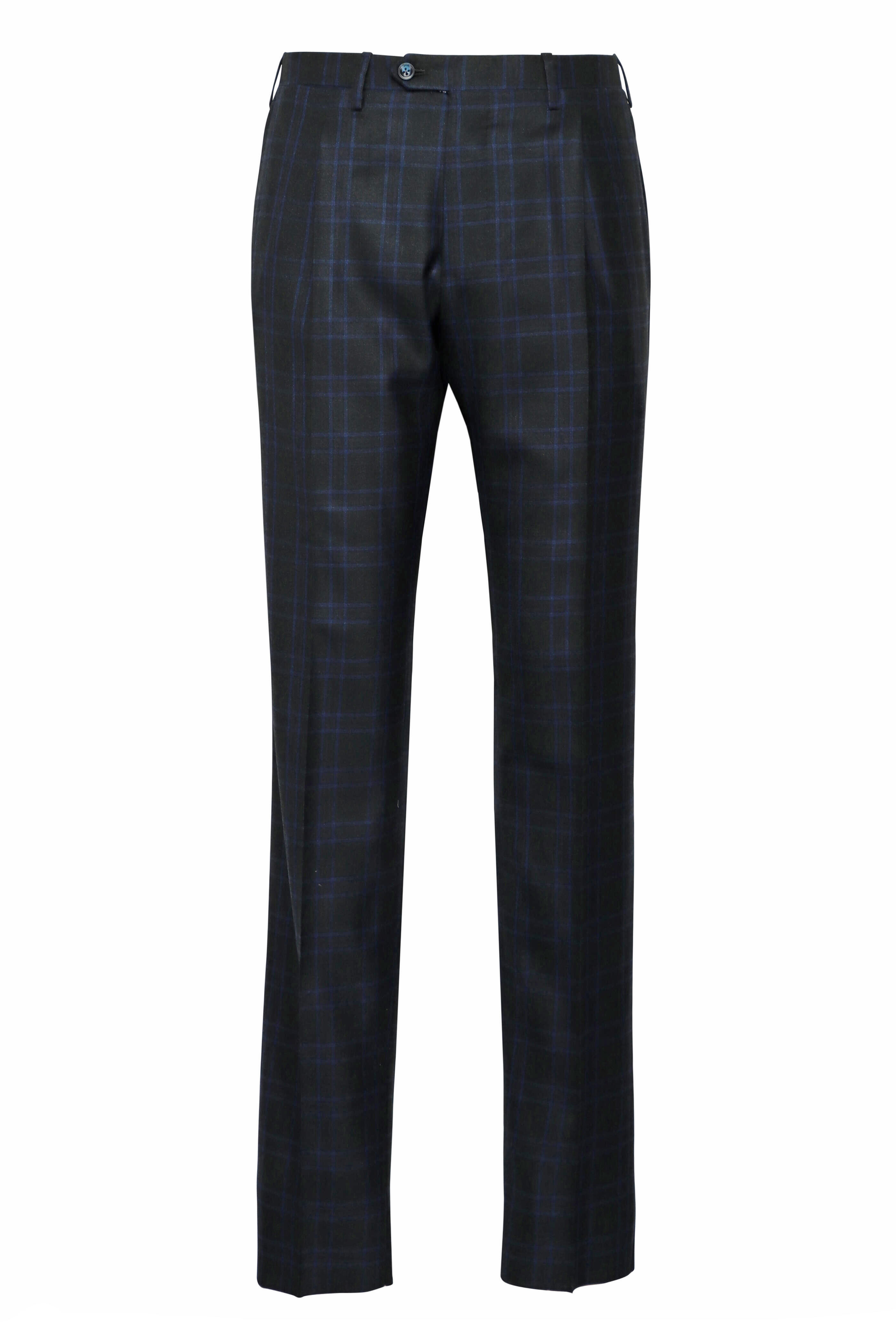 Made in Italy. Jacket: Fully lined. Notched lapels. Front two button closure. Chest welt pocket; lower flap pockets; interior slip pockets. No buttons attached. Double back vents. Pant: Banded waist; belt loops. Front slip pockets; back besom pockets. Unfinished hem. 100% Cashmere. Dry clean.