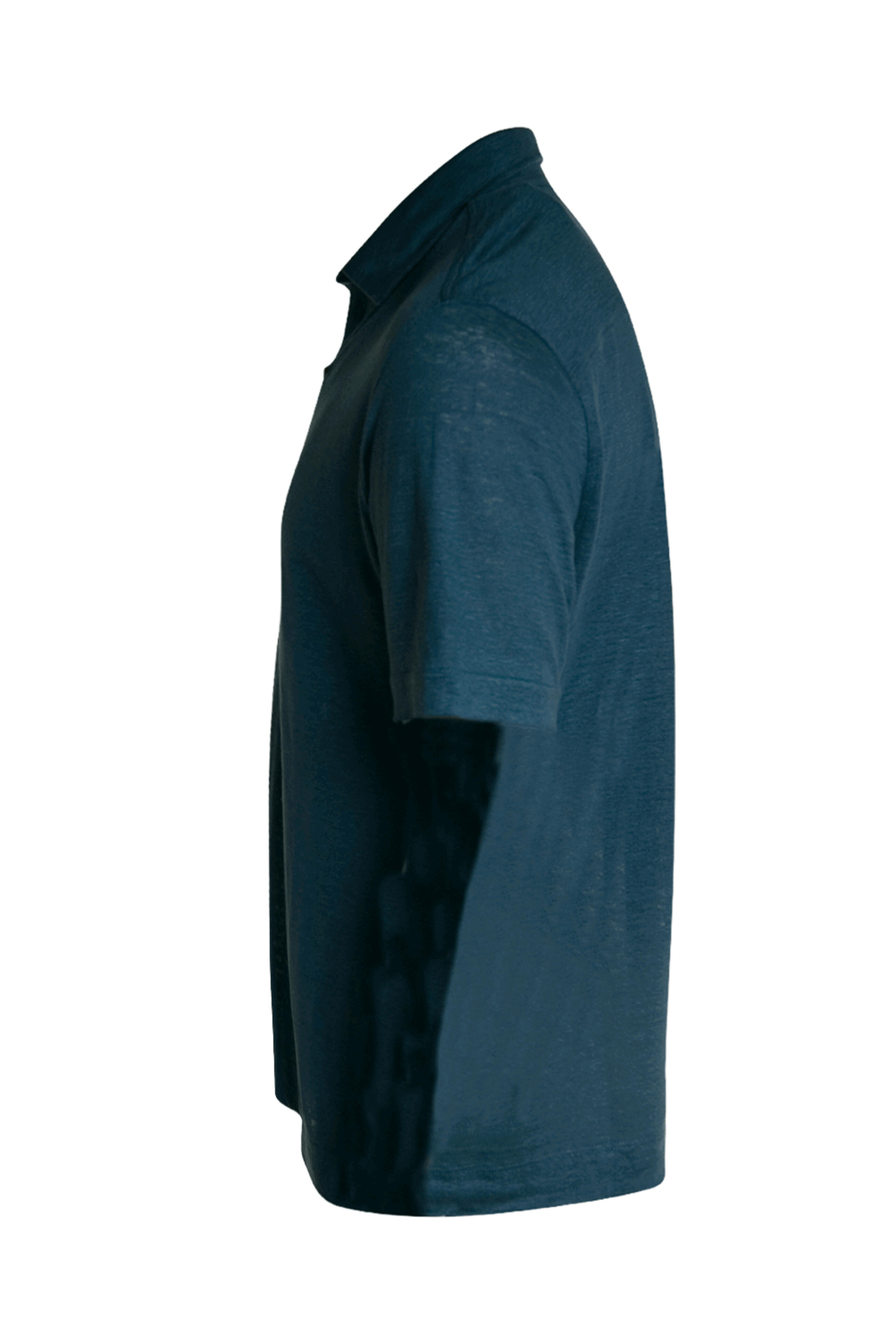 Blue Linen Short Sleeve Polo
