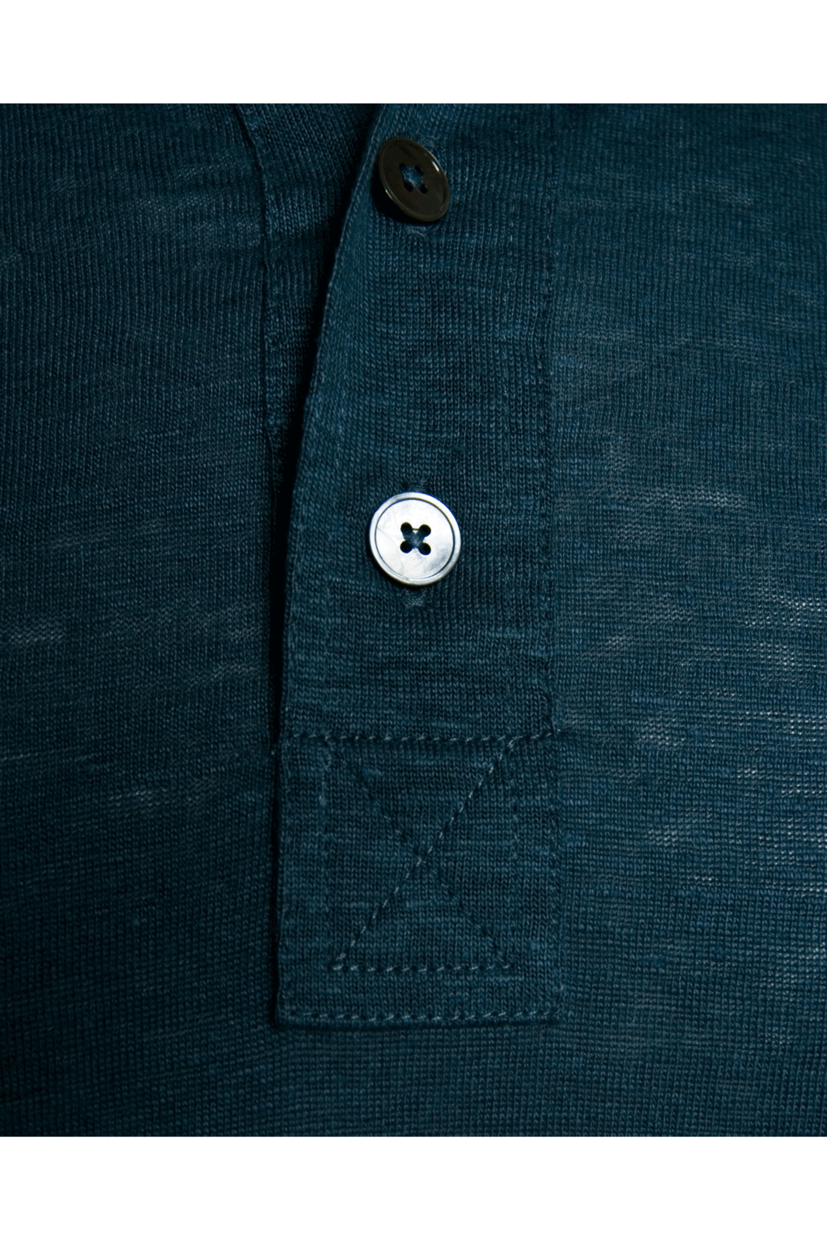 Zegna Blue Linen Short Sleeve Polo. Spread collar. Four button placket. Short sleeves. Ribbed trims. Tonal stitching. Straight hem. 100% linen.