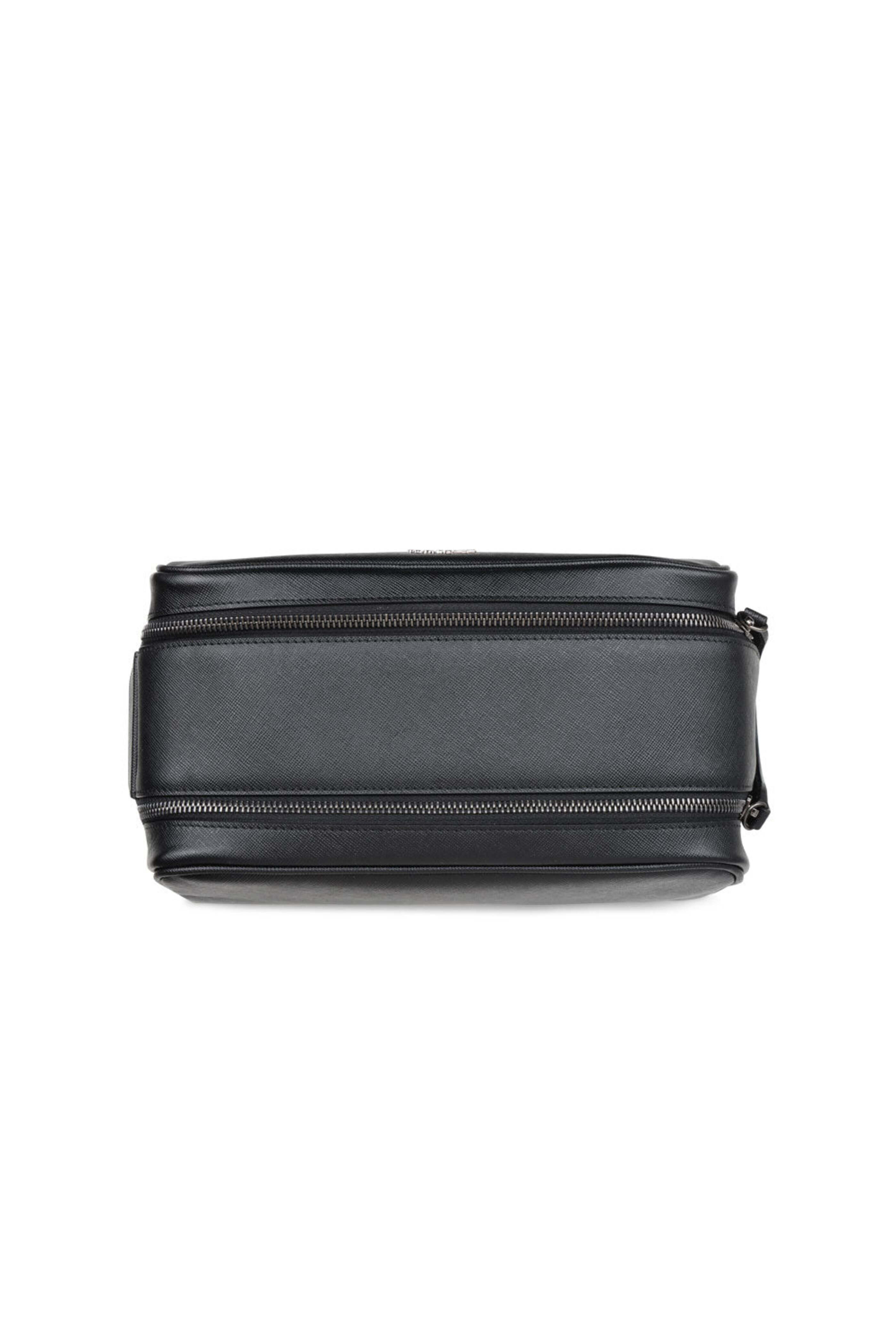 Black Double Zip Saffiano Leather Dopp Kit
