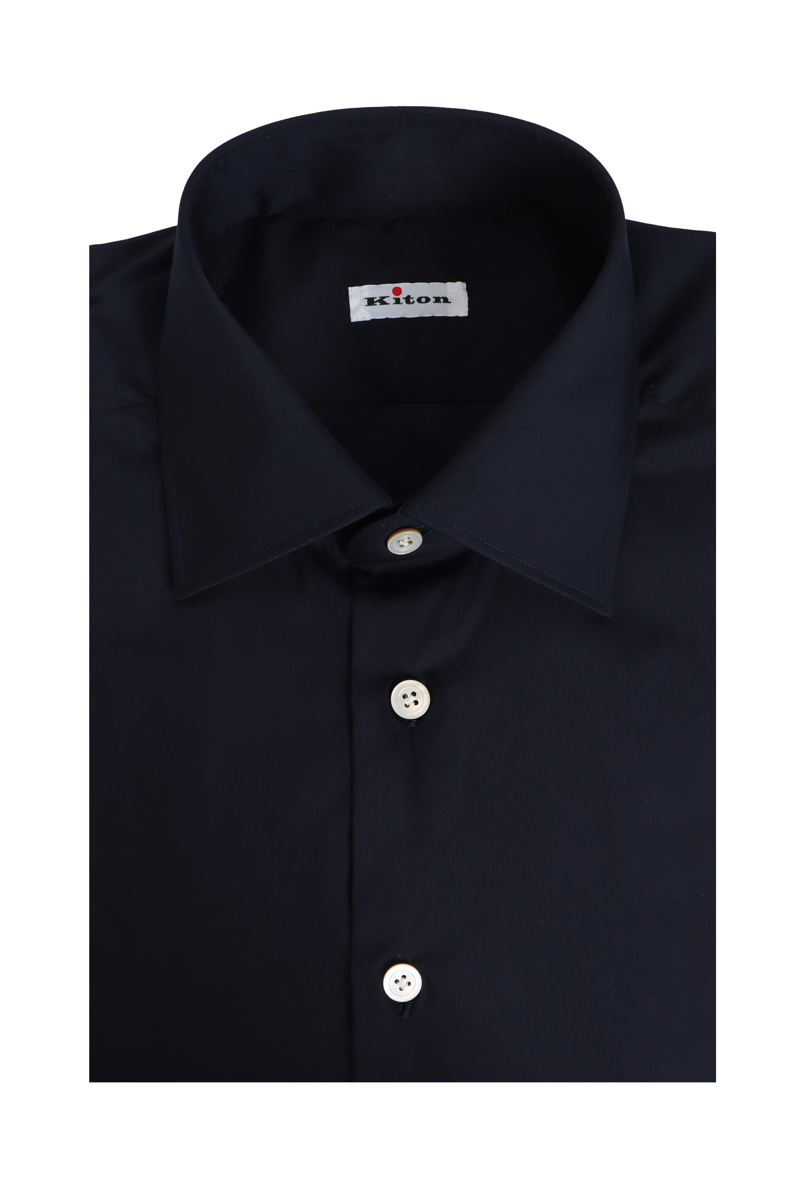 Spread collar. Button down front closure. Barrel mitered cuffs. Made in Italy. 100% cotton. Dry clean.