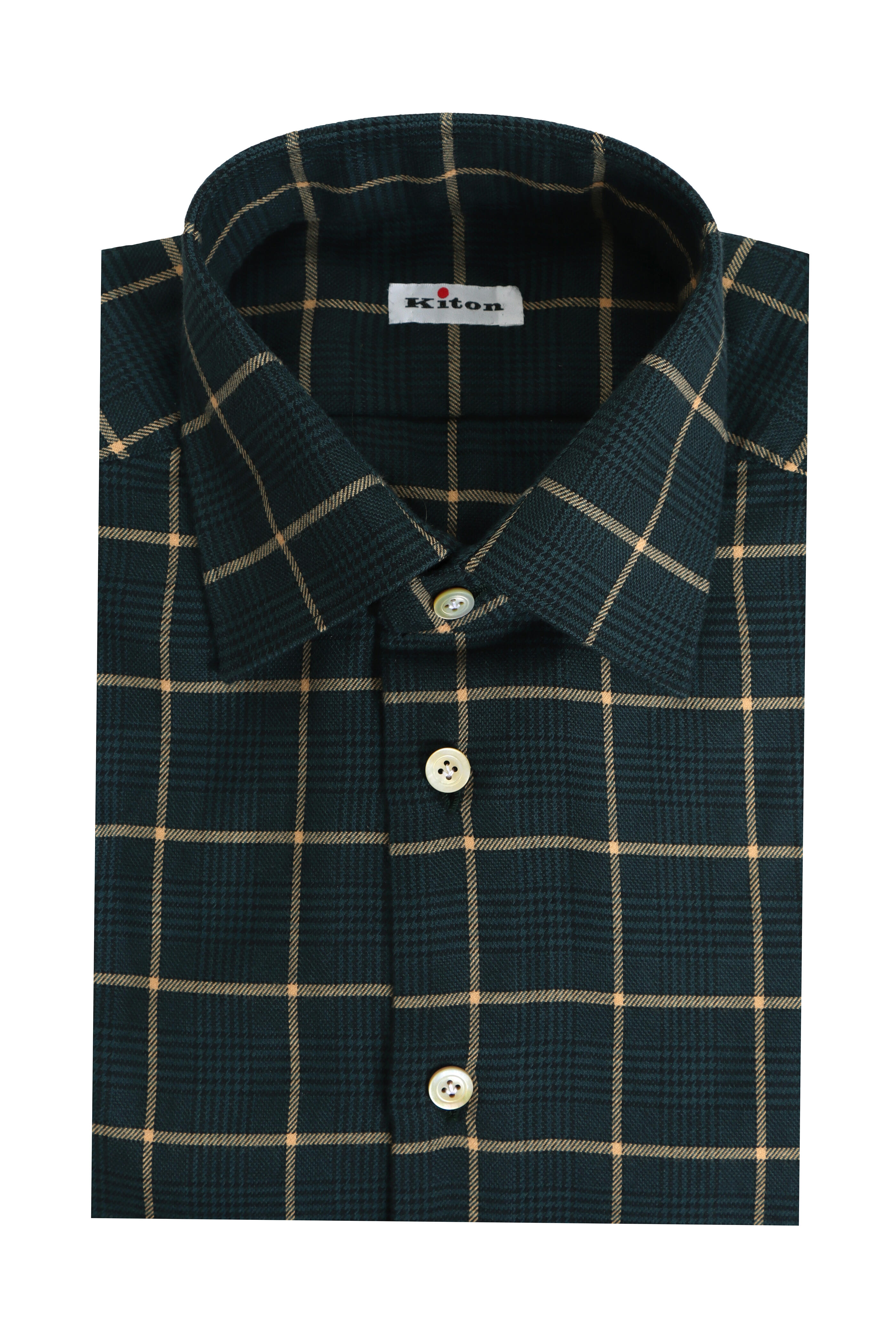 Spread collar. Button down front closure. Long sleeves. Barrel mitered cuffs. Made in Italy. 100% cotton. Dry clean.