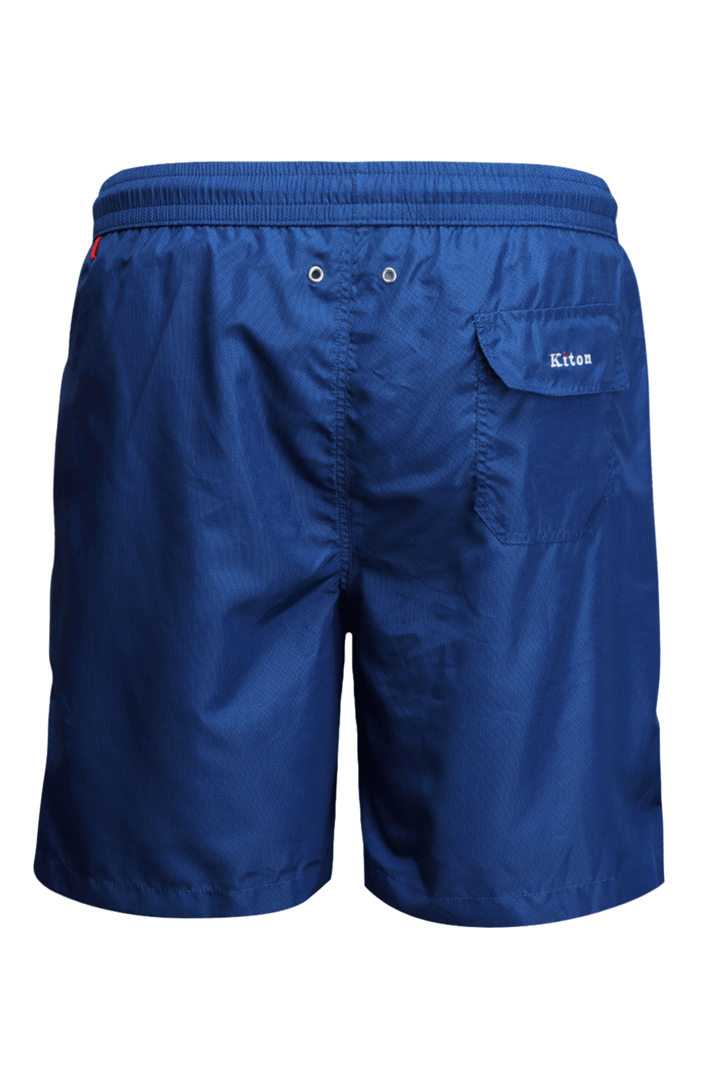 Kiton Marine Blue Swim Short. Flat front . Elasticized waistband with drawstring closure. Side slip pockets. Single back flap pocket with logo. Made in Italy . 100% polyester.