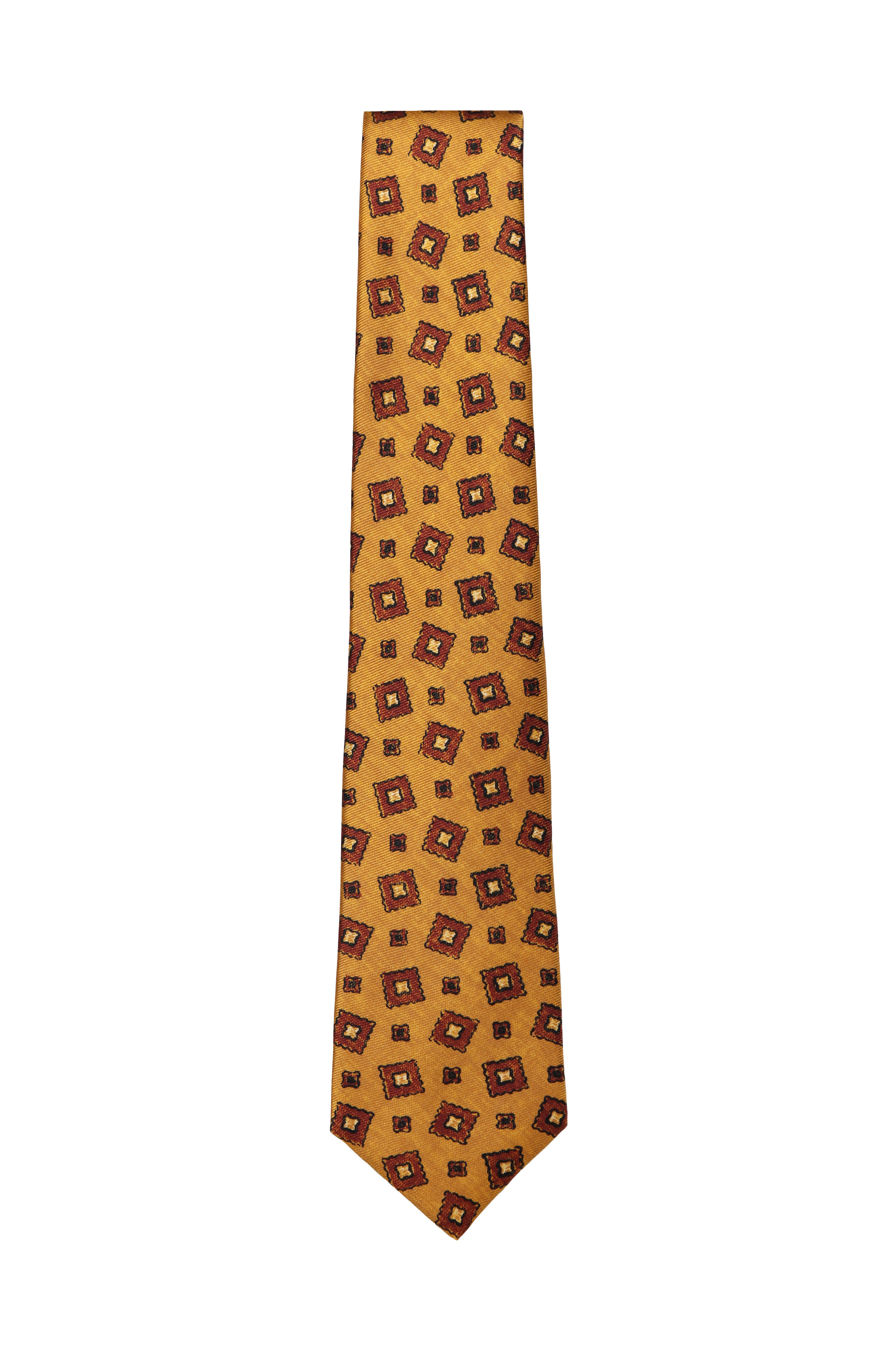 Mustard & Rust Geometric Print Silk Necktie