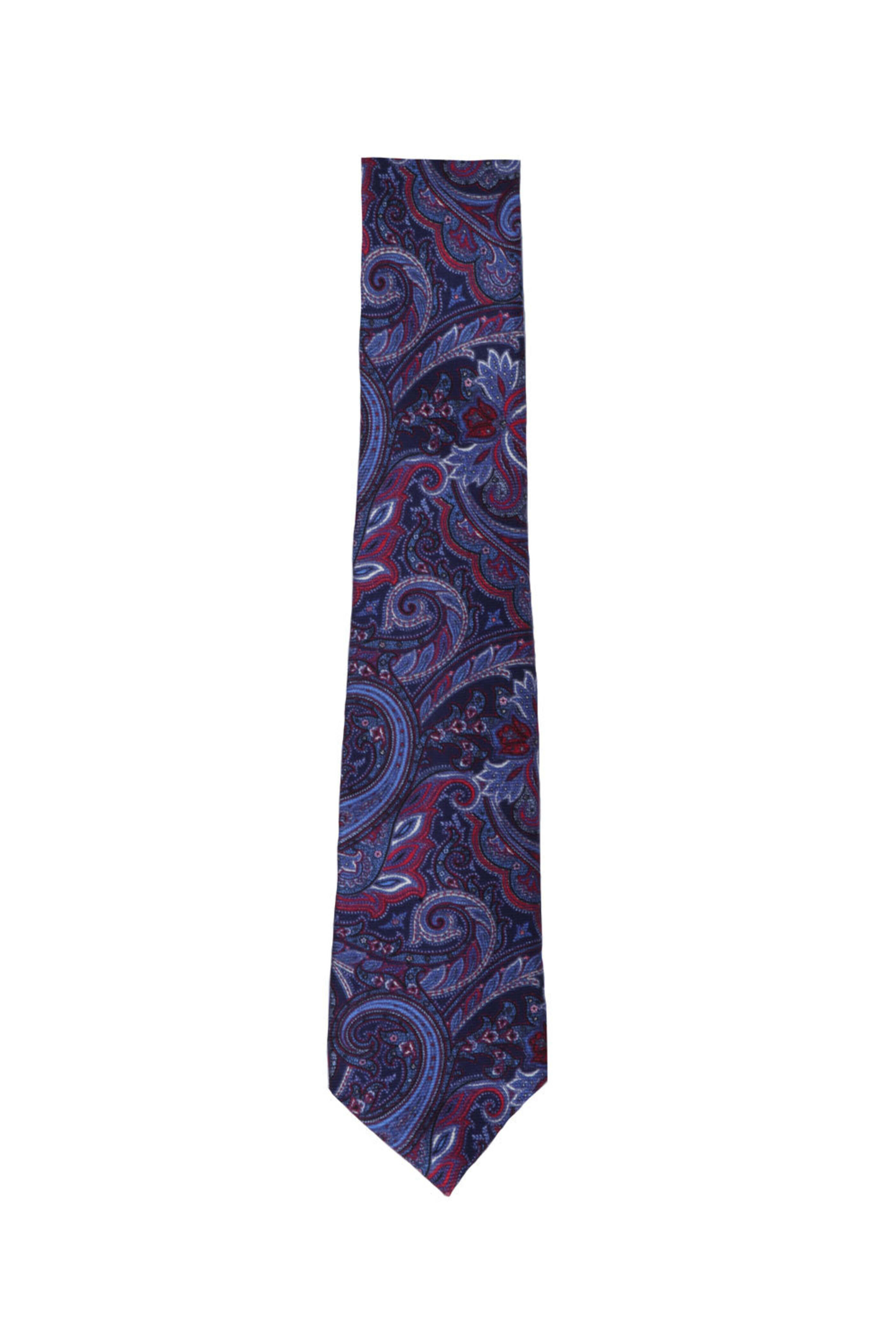 Kiton Navy Blue Paisley Tie. Seven-fold tie. 59€ L x 3.5€ W. Made in Italy. Dry clean only. 100% Silk.