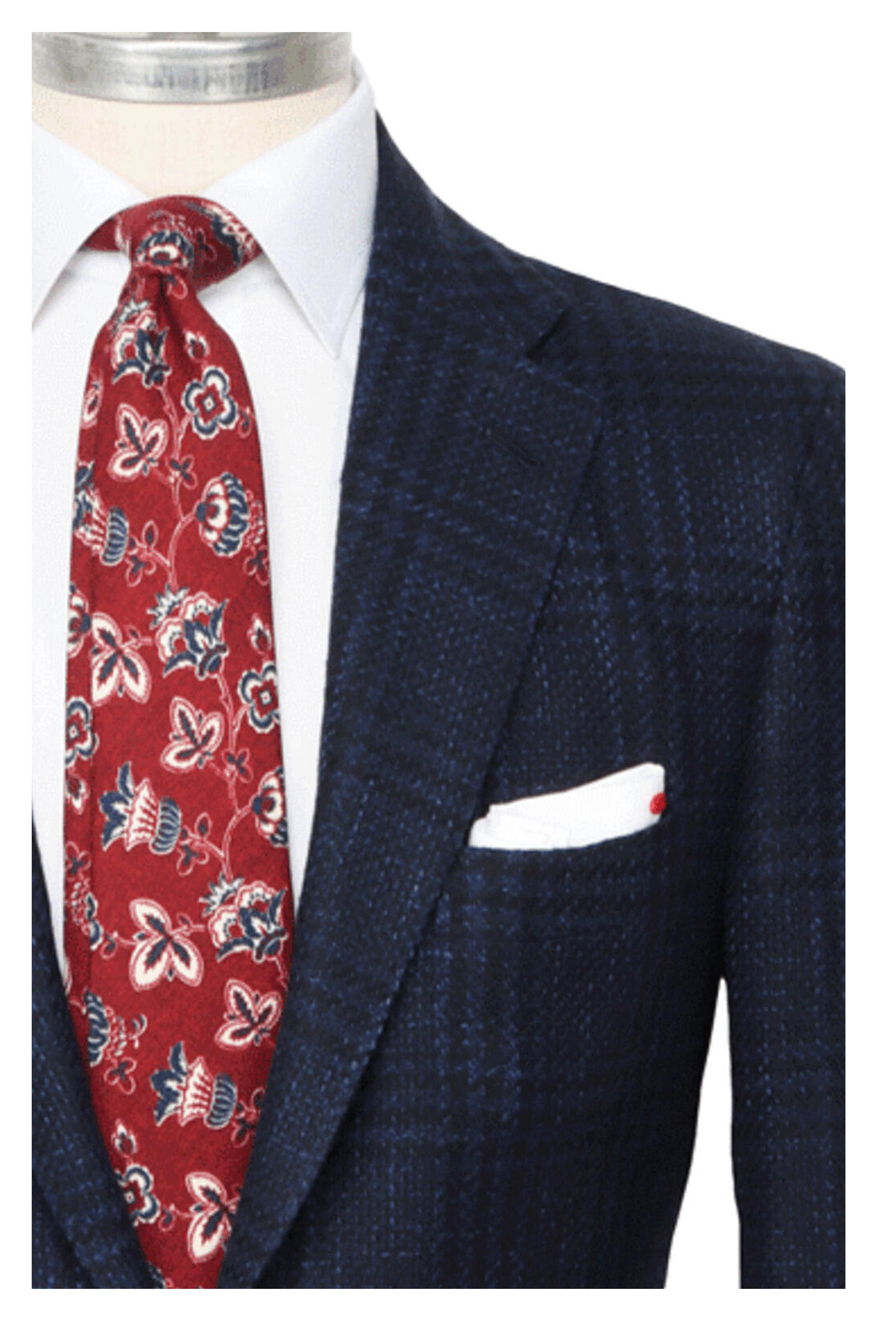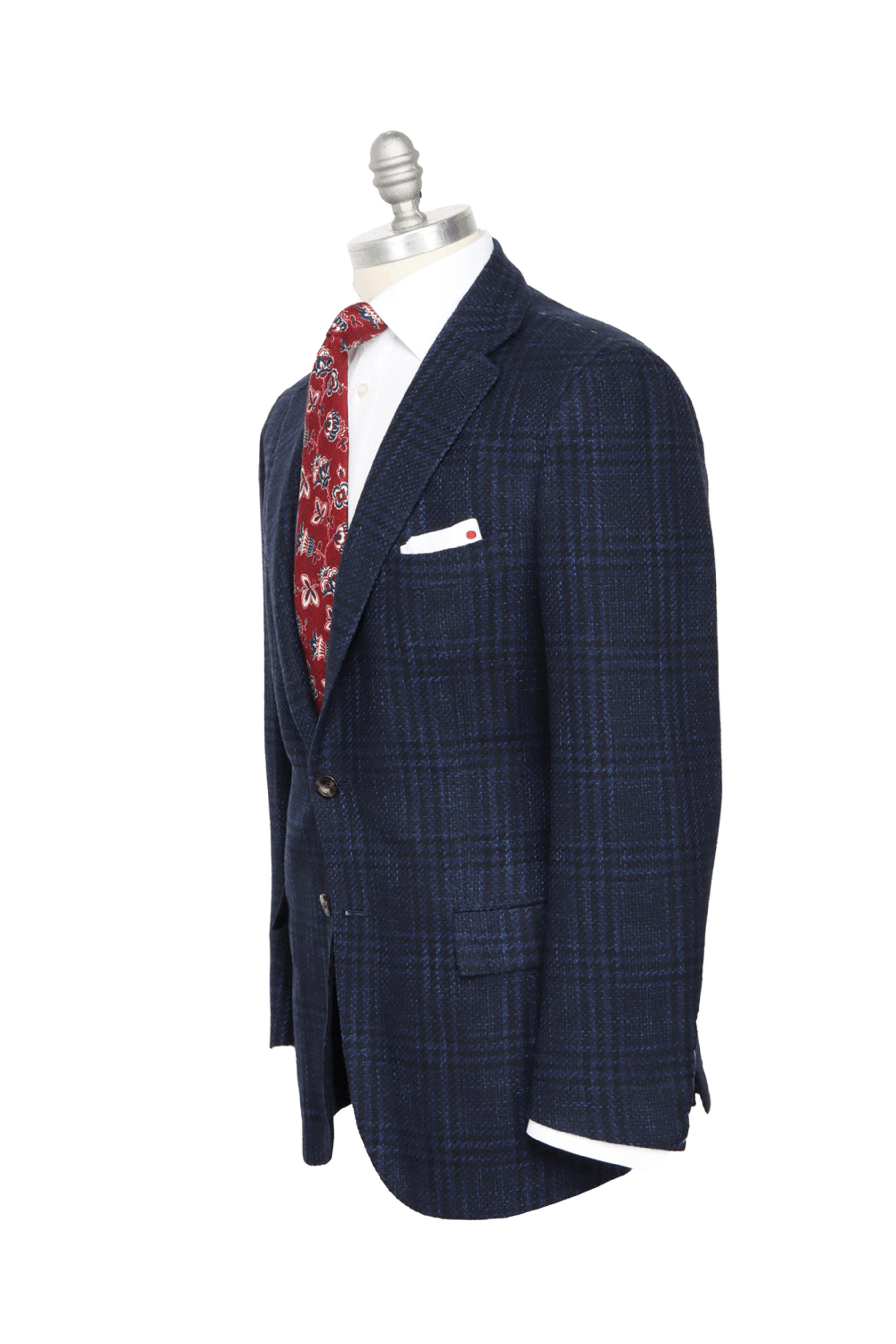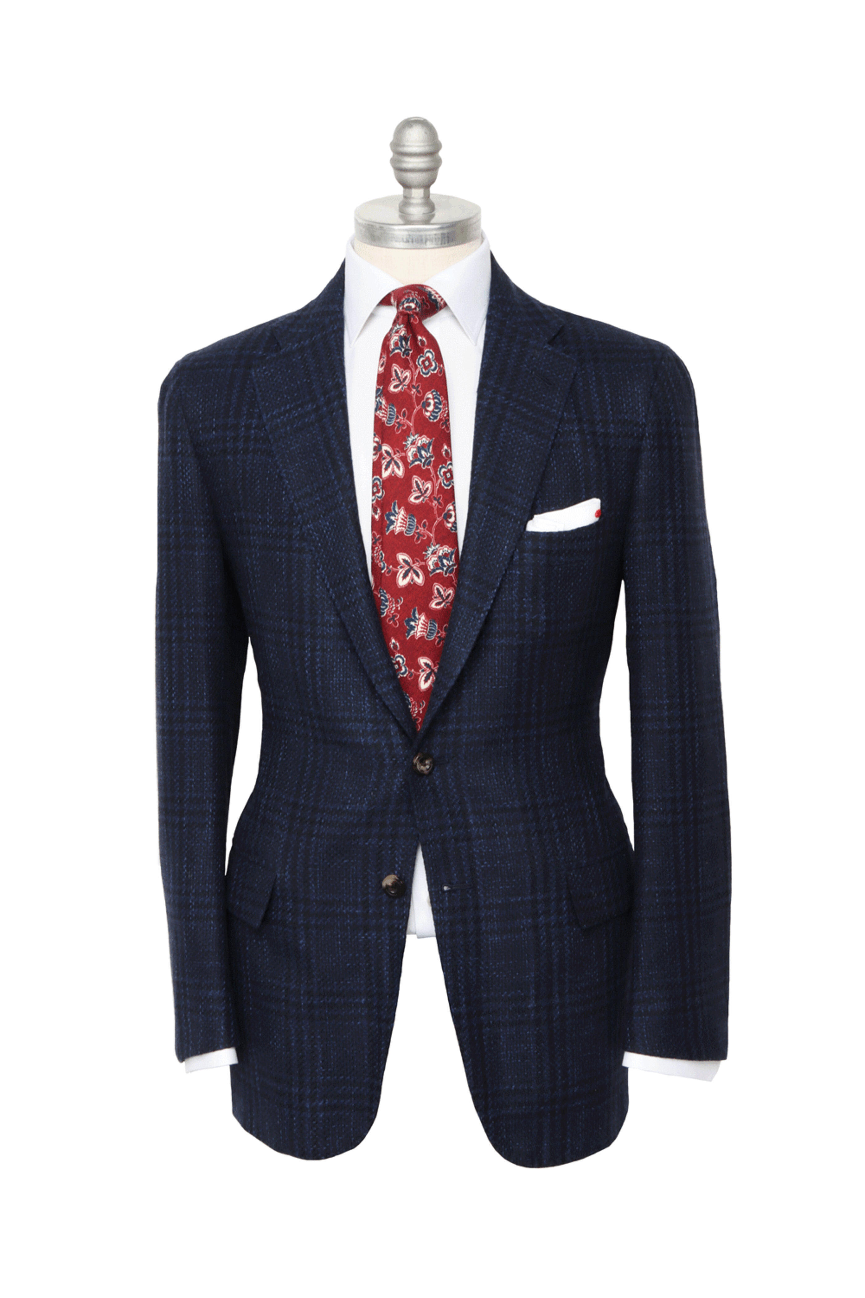 Notch lapels. Left lapel buttonhole. Front left welt chest pocket . Button front closure. Waist flap pockets . Unfinished buttonholes . Double back vents . Cupro lining. Made in Italy . Drop 7 . 65% virgin wool, 15% silk, 10% nylon, 10% cotton; quarter-lined.