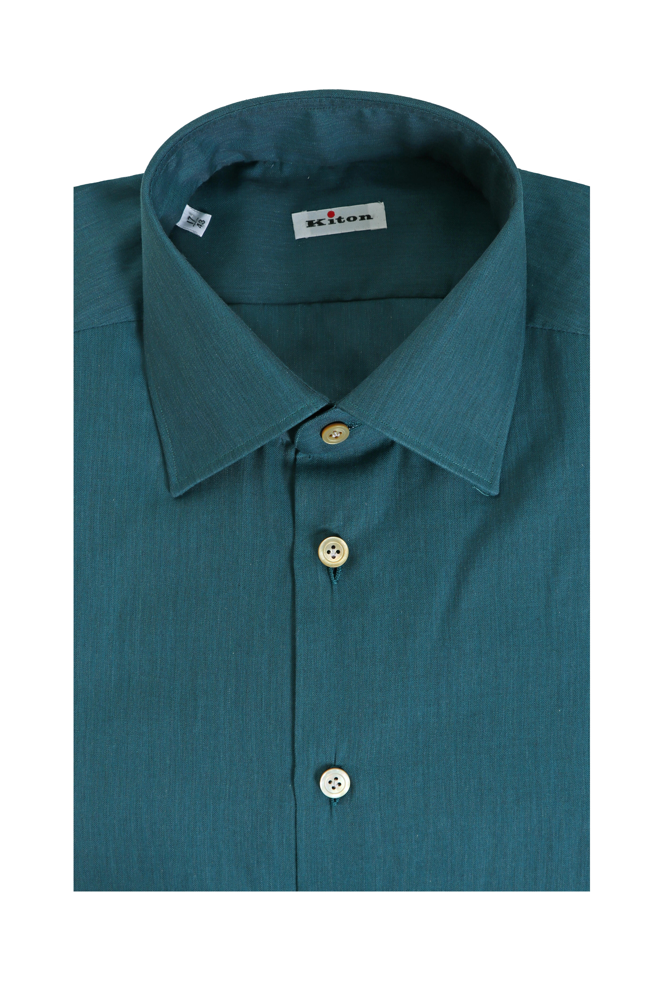 Spread collar. Front button placket. Single button barrel cuffs. Made in Italy. 100% cotton. Dry clean.