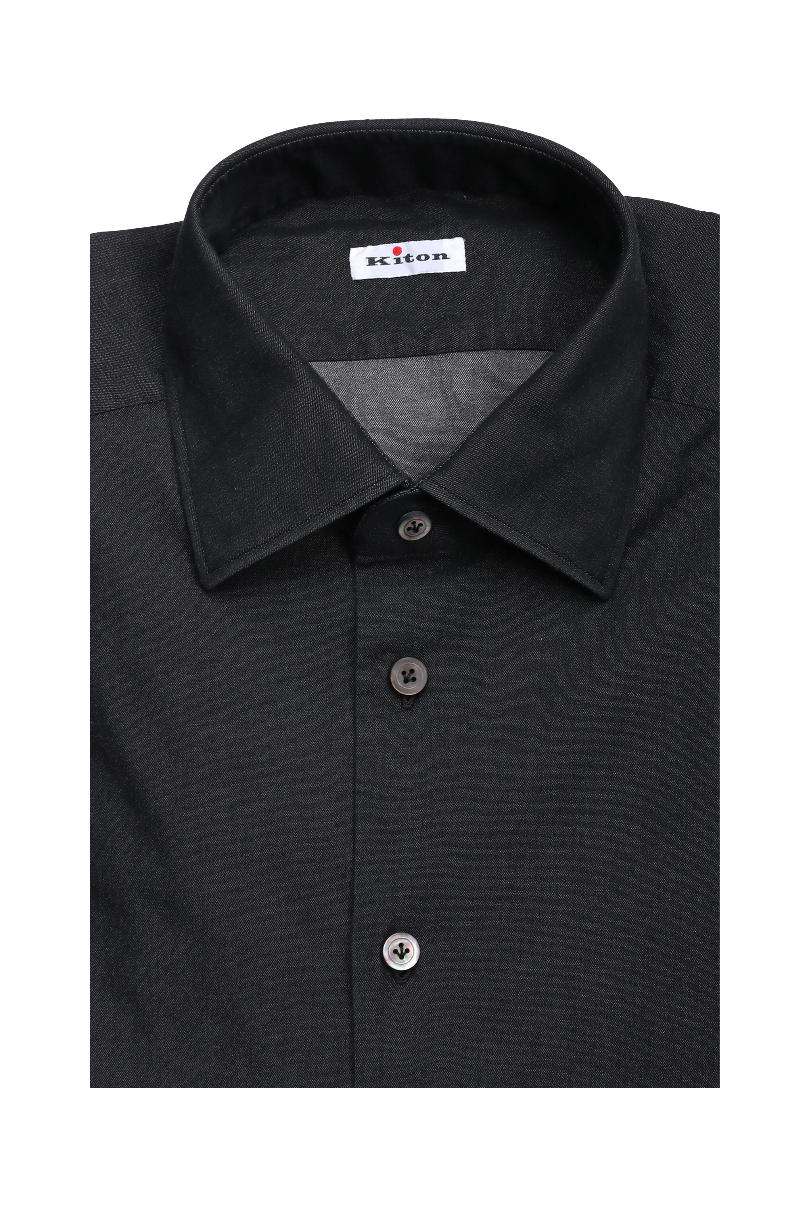 Spread collar. French front button placket. Single button barrel cuffs. Made in Italy. 98% cotton, 2% elastane. Dry clean.