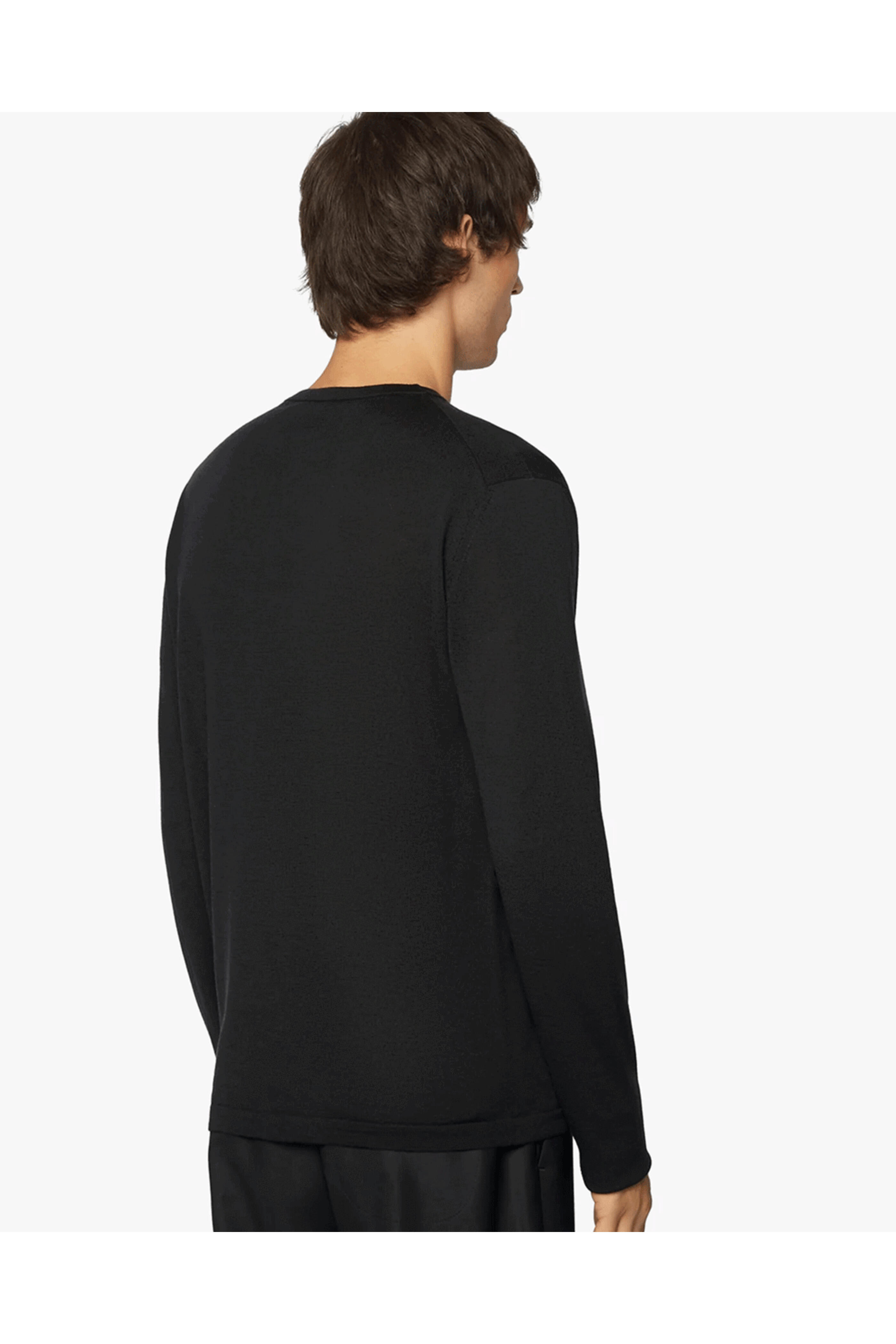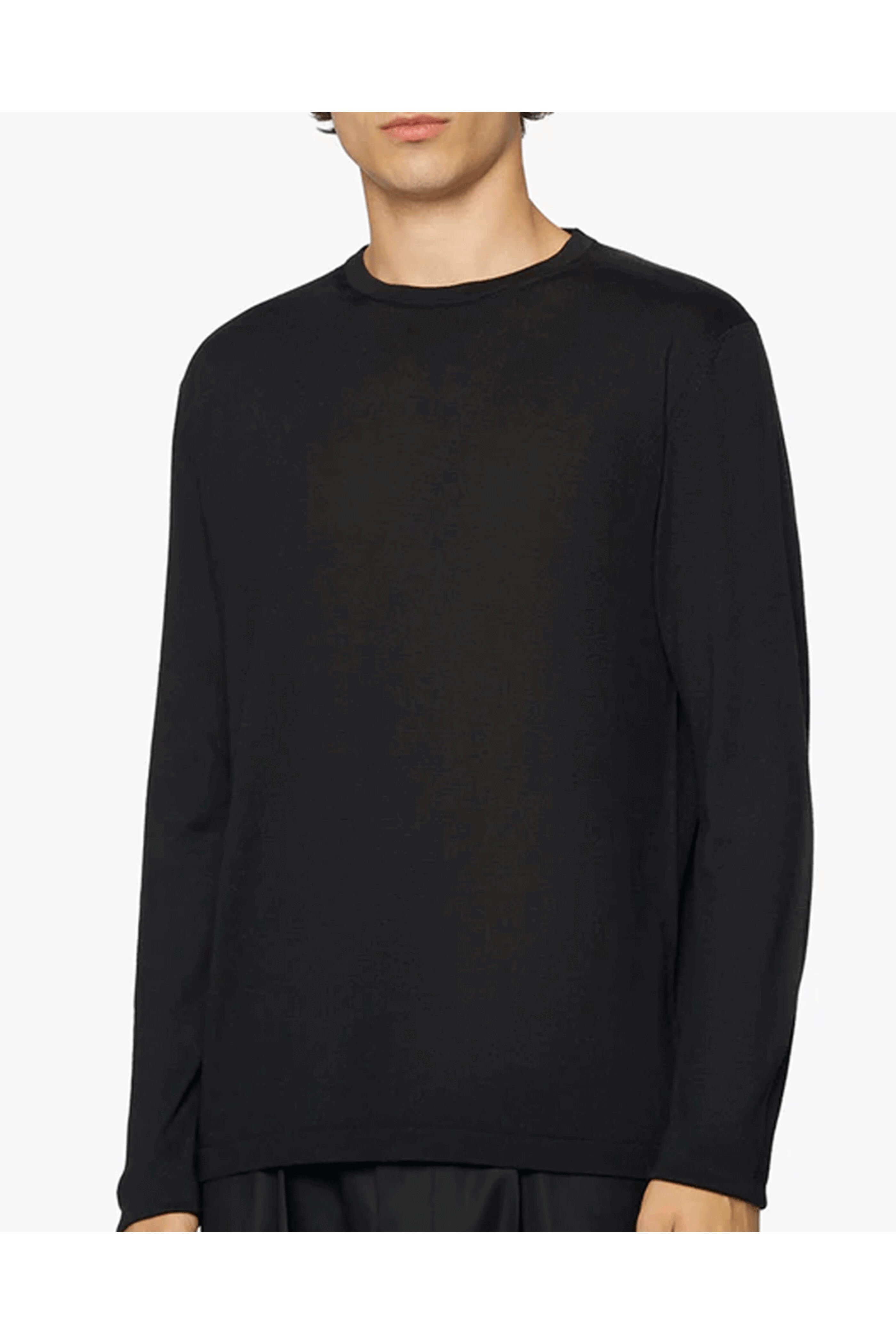KNT Black Crewneck Knit Sweater. Crewneck collar. Long sleeves. Pullover style. Regular fit . Made in Italy . 68% Virgin wool, 28% silk, 3% poliamyde, 1% elastane.