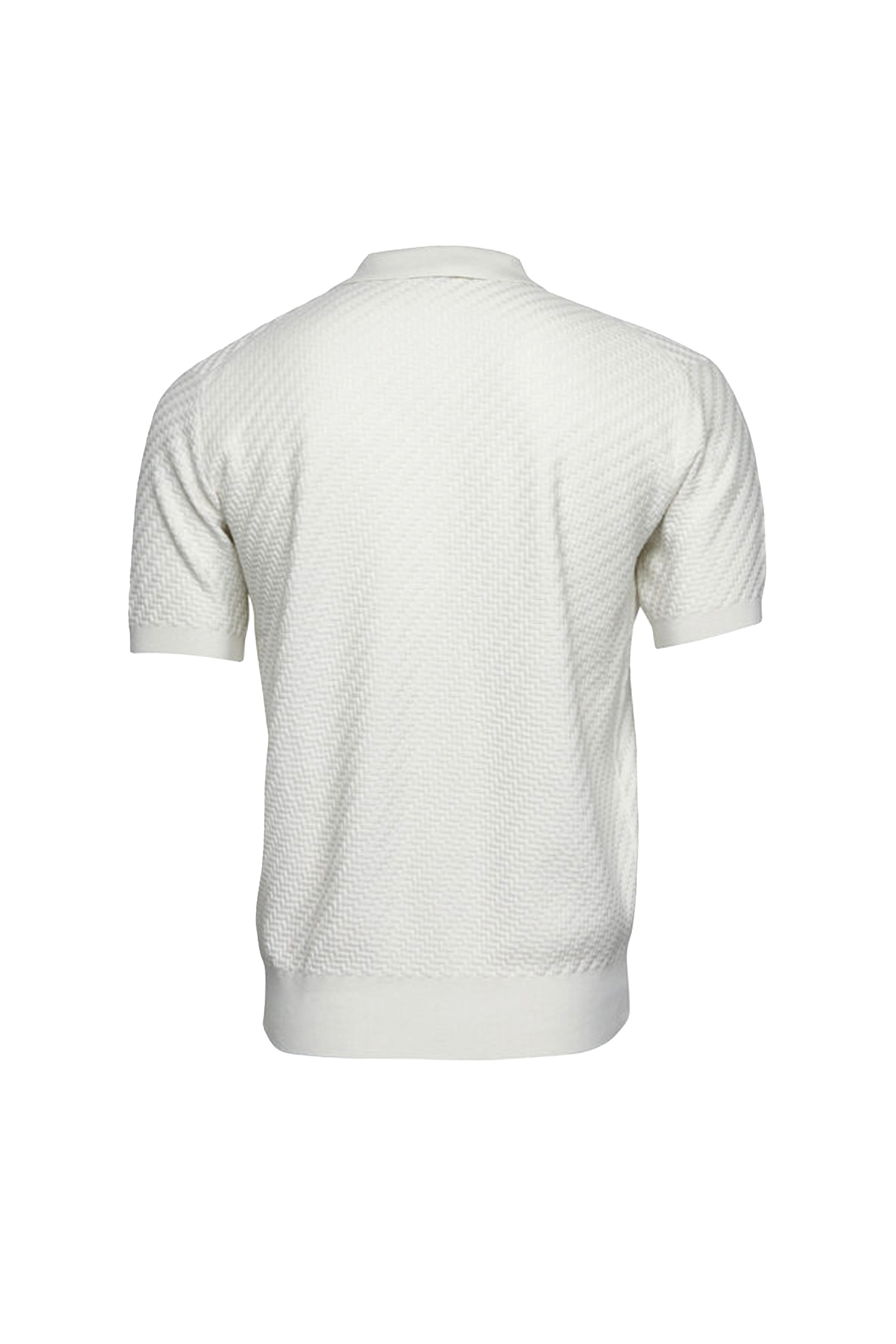 Spread collar. Quarter button placket. Rib-knit trims. Made in Italy. 57% cotton, 34% silk, 9% cashmere. Dry clean.