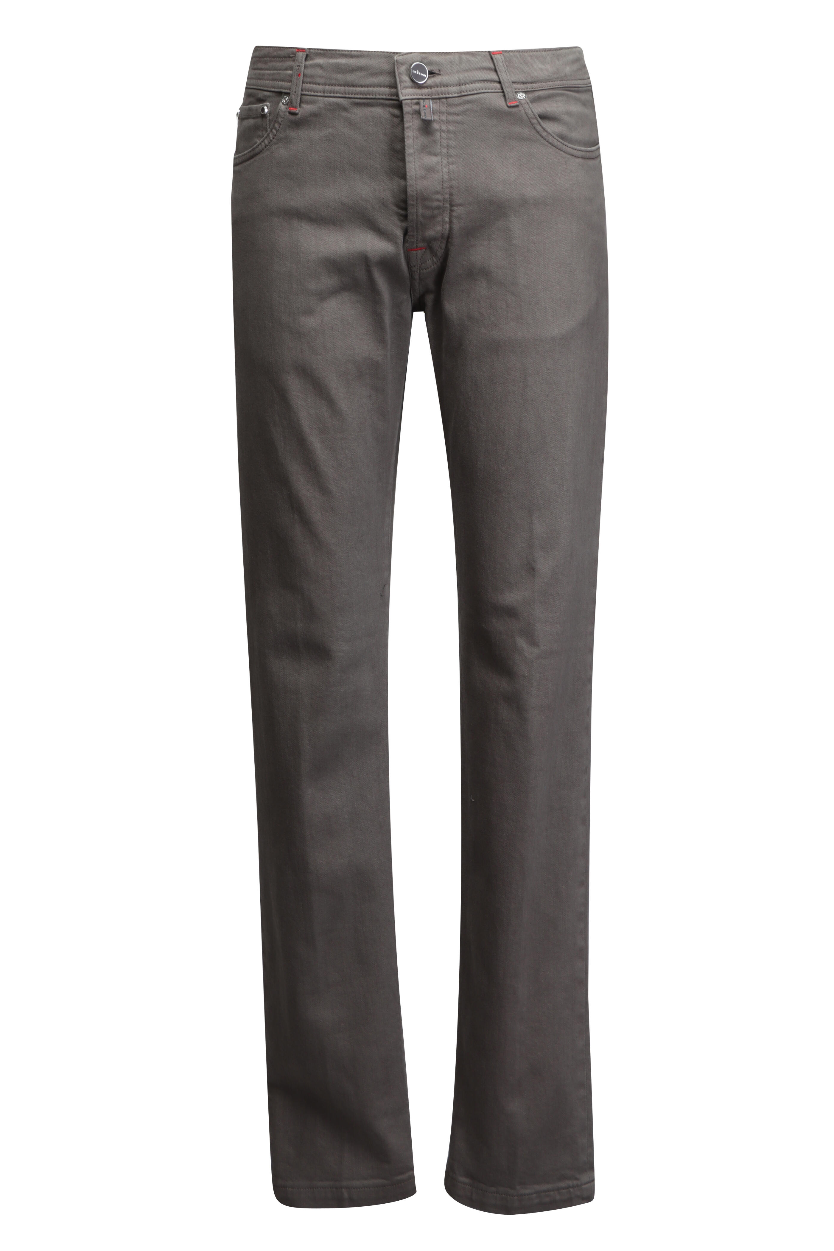 Banded waist; belt loops. Zip fly; button closure. Five pocket styling. Made in Italy. Inseam: 35". 98% cotton, 2% elastane. Dry clean.