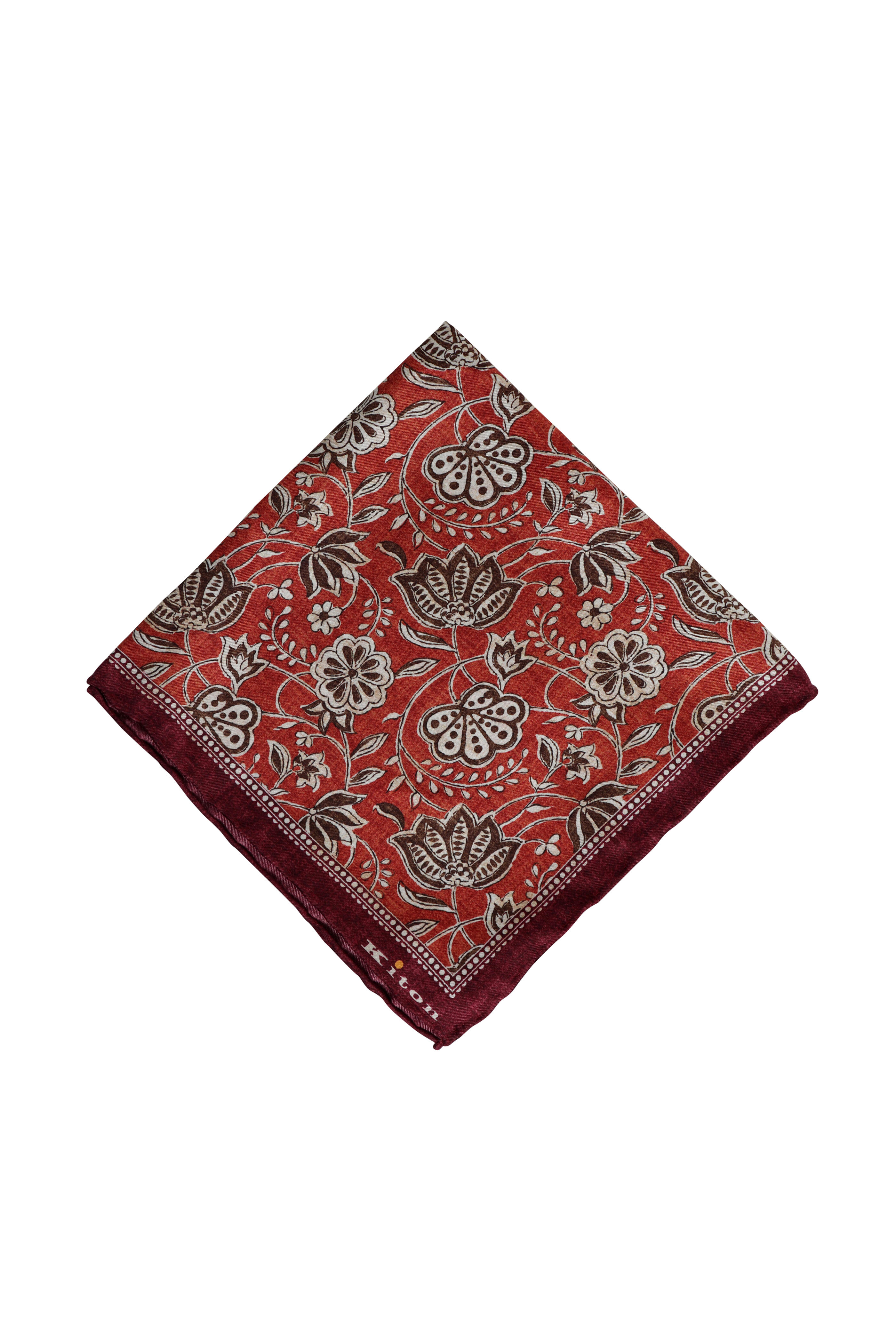 Burnt Orange Floral Silk Pocket Square