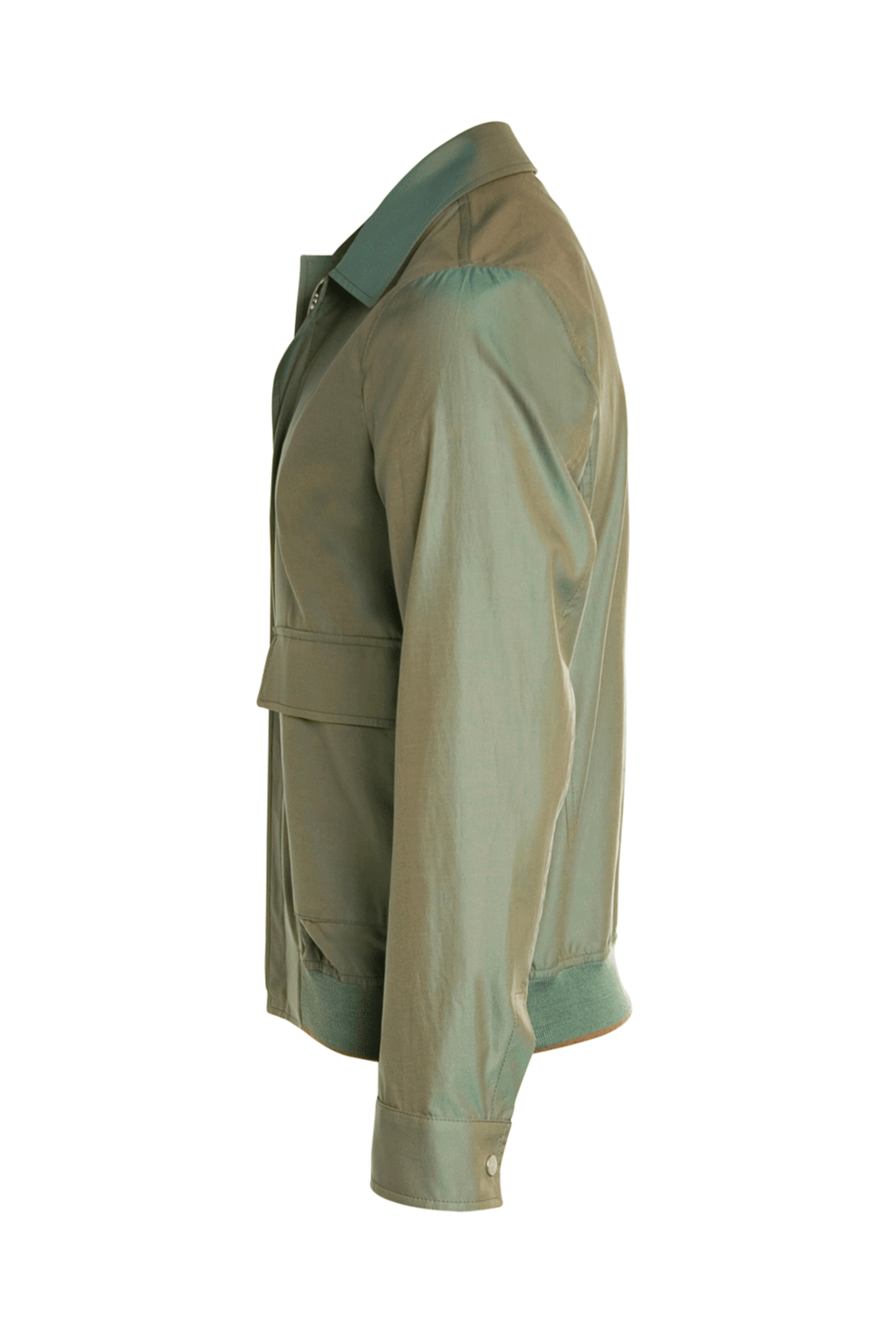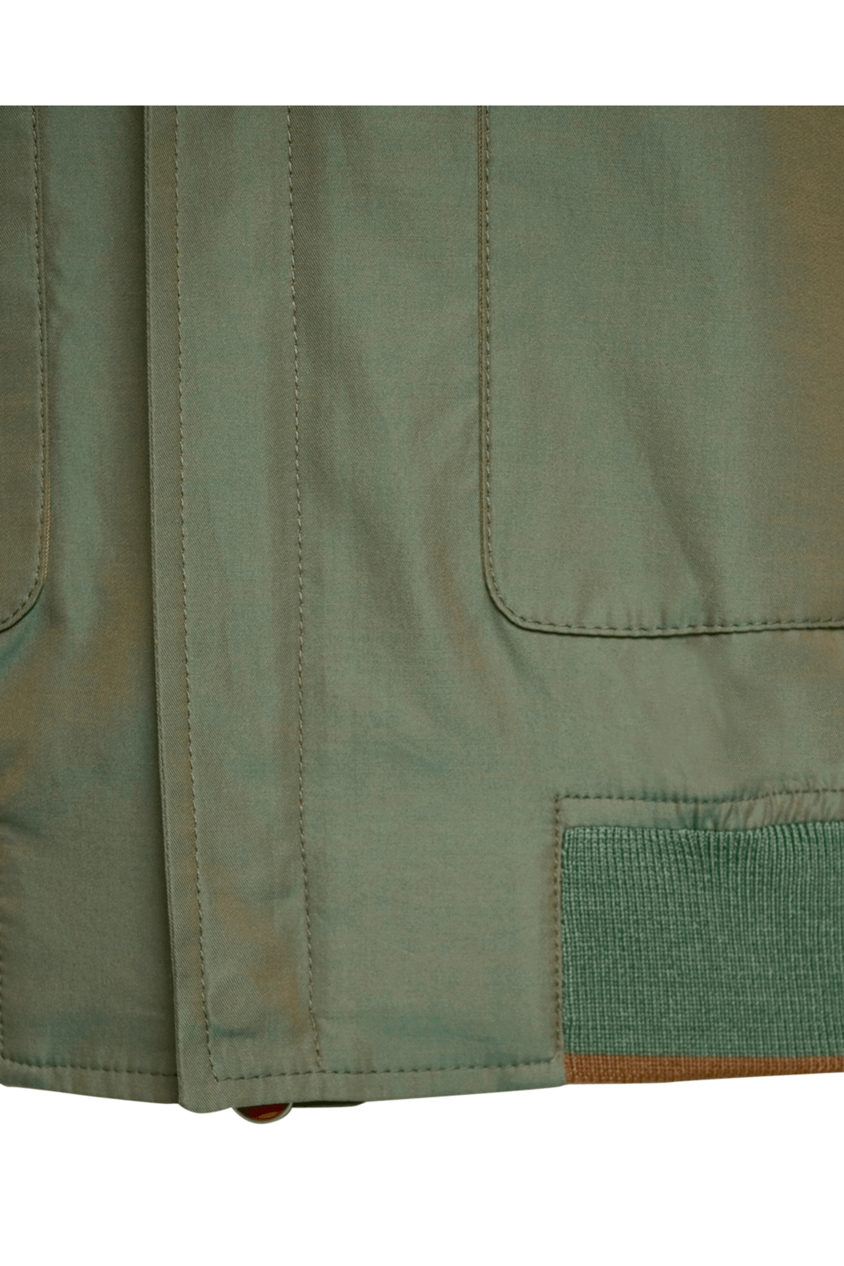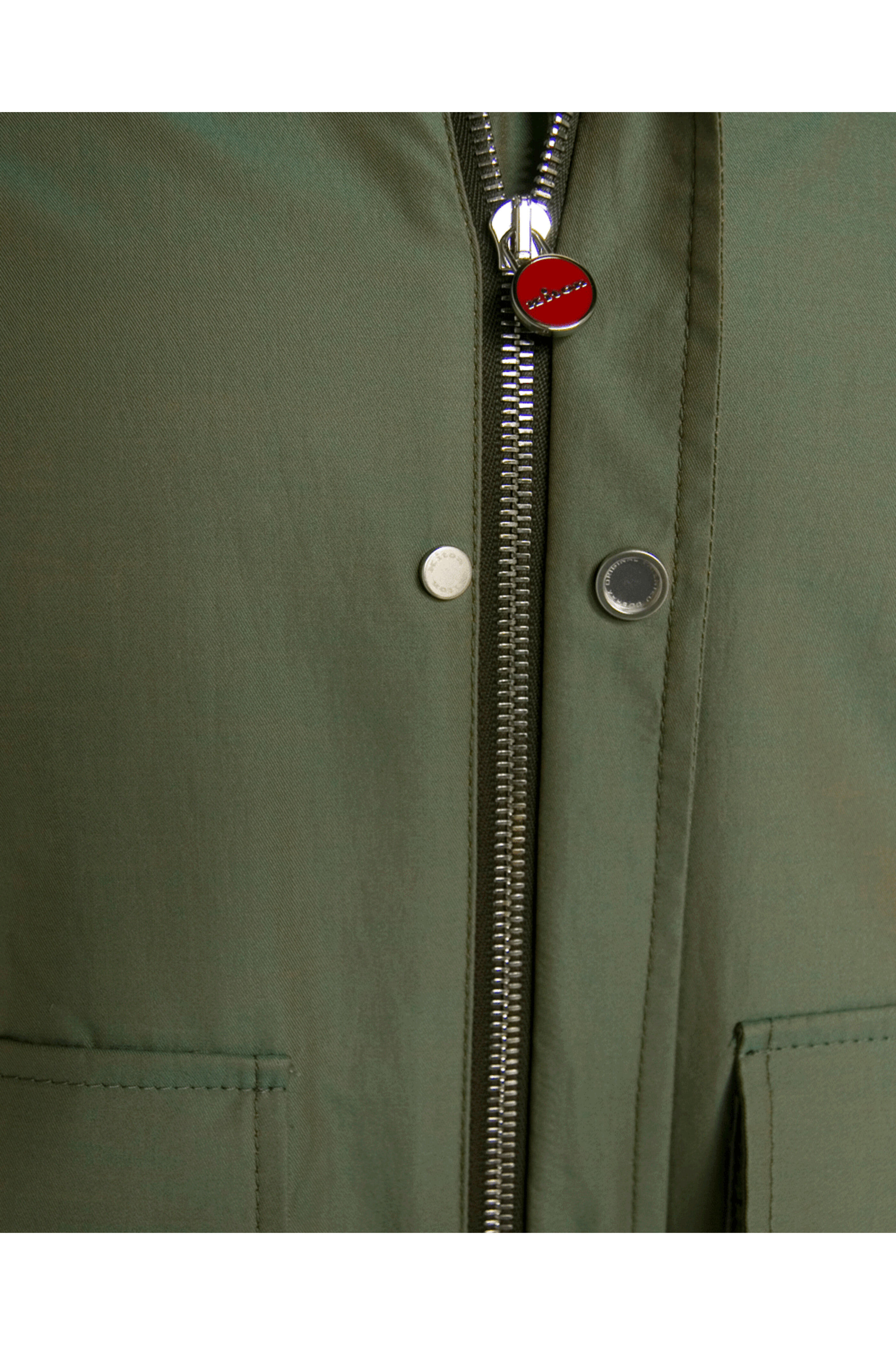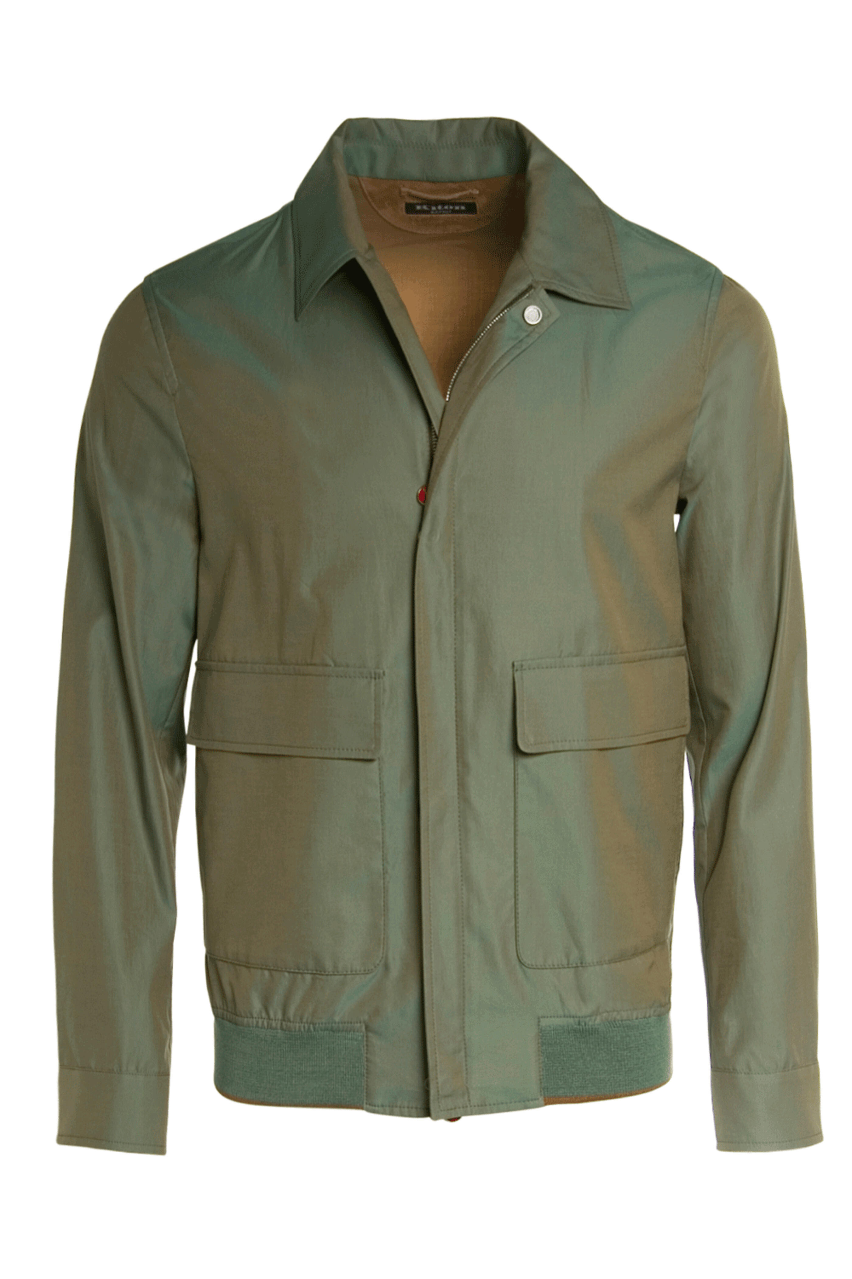 Kiton Olive Salaro Bomber Jacket. Spread collar. Concealed two-way zip front closure. Snap button front closure. Two oversized waist flap pockets. Single snap button straight cuffs. Long sleeves. Ribbed trims. Tonal stitching. Straight hem. Relaxed fit. Lined with cotton. Made in Italy. 100% cotton.