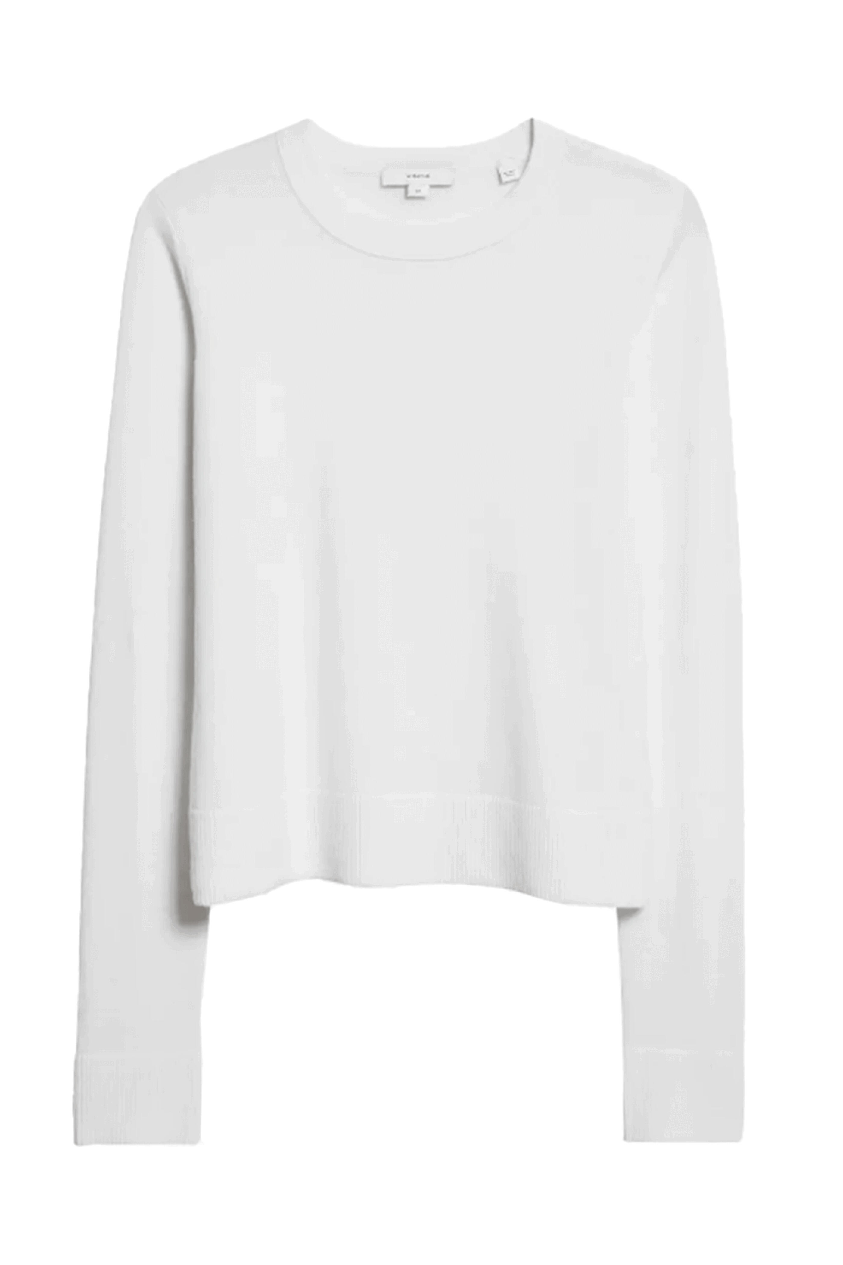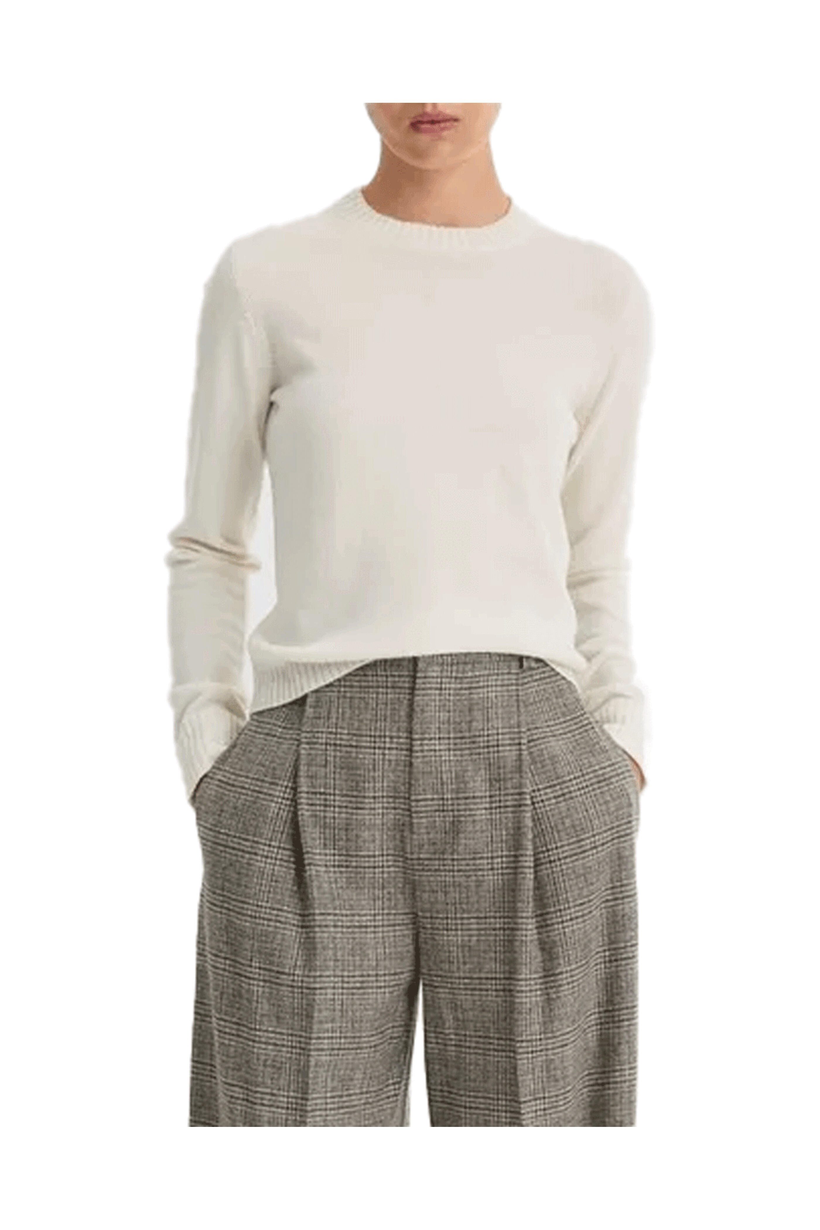 Vince Off White Classic Crew Neck. Crewneck. Long sleeves. Ribbed trim at neck, cuffs and hem. 100% cashmere.