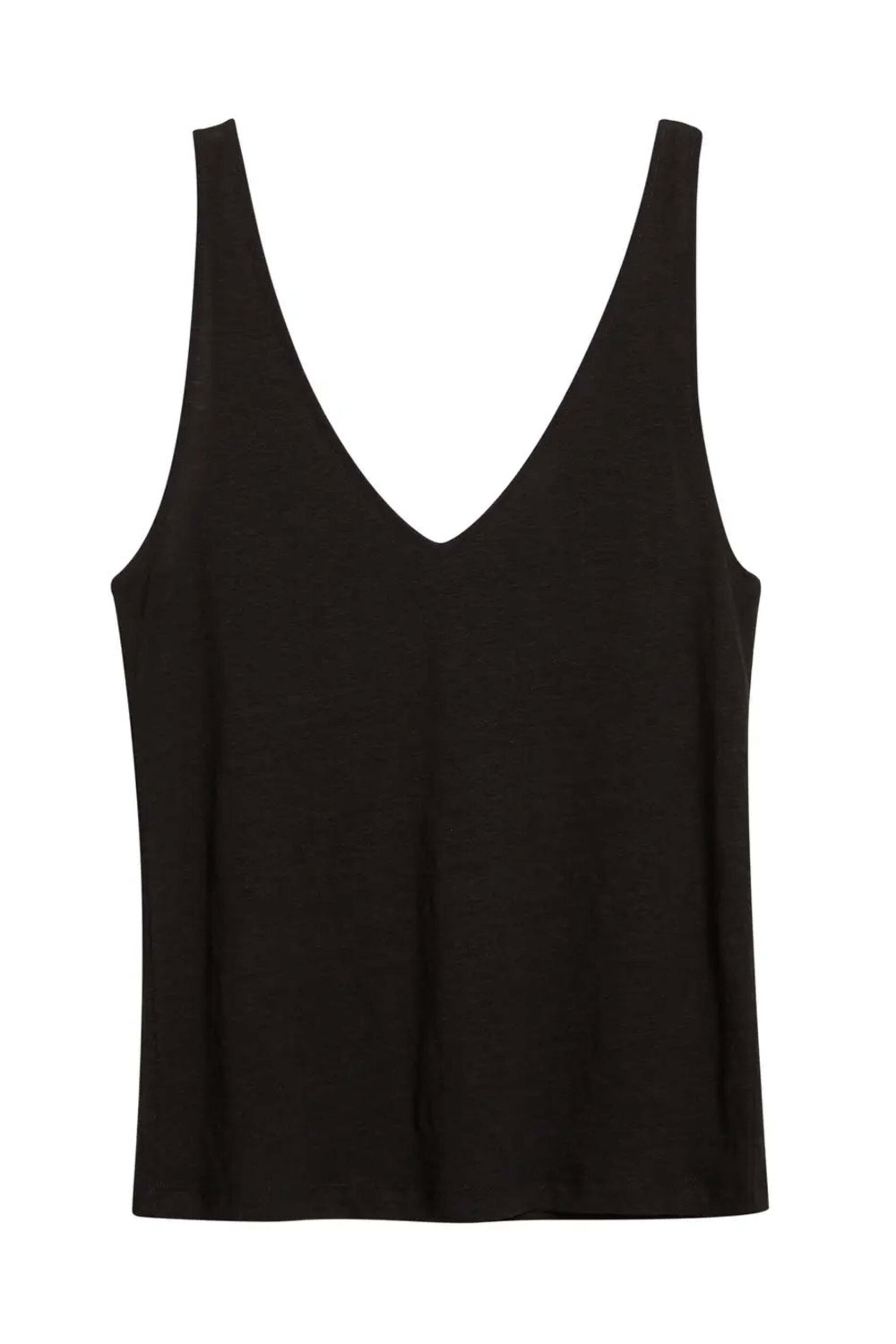 Black Linen Double V Neck Tank