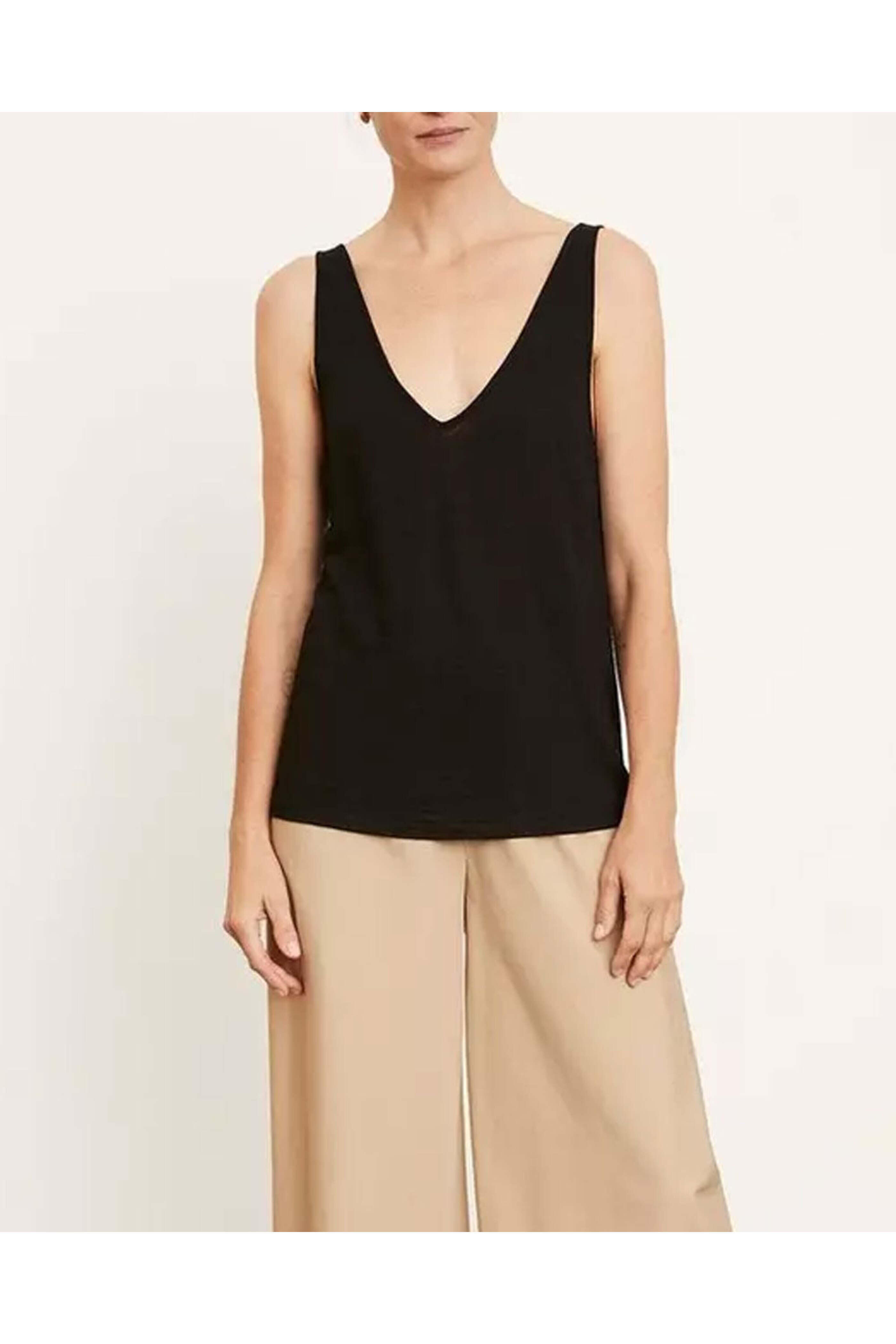• Vince - Black Linen Double V Neck Tank